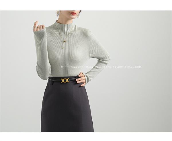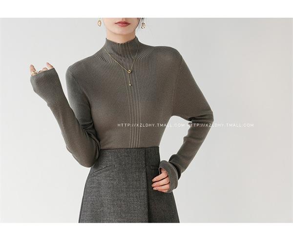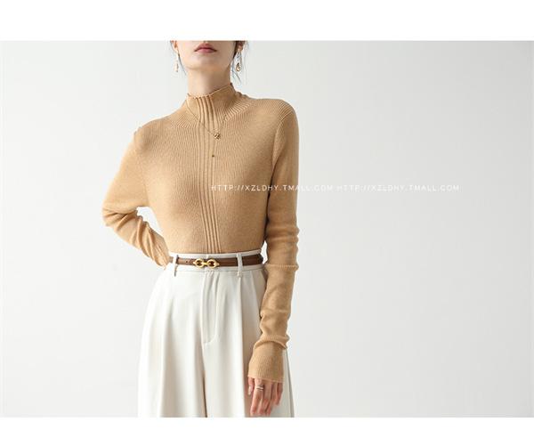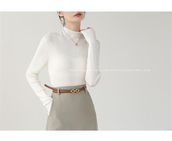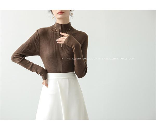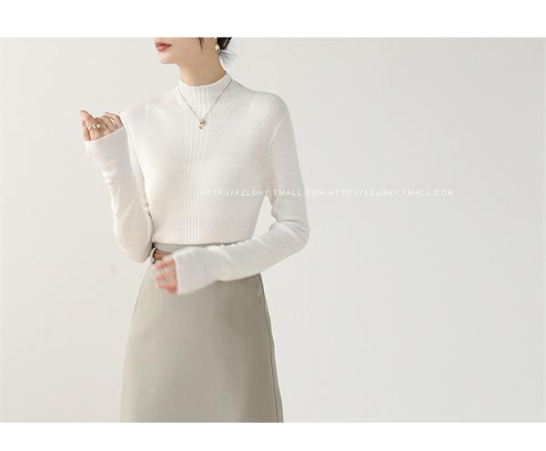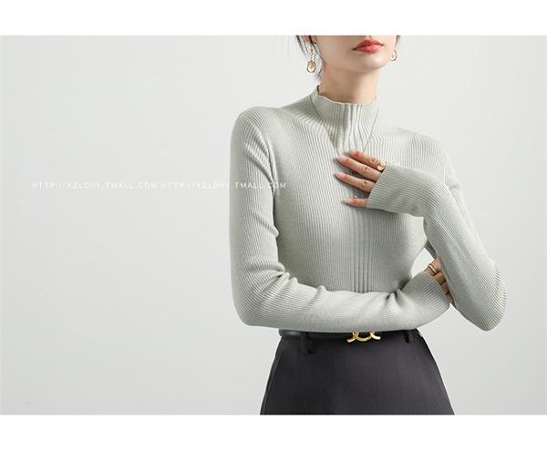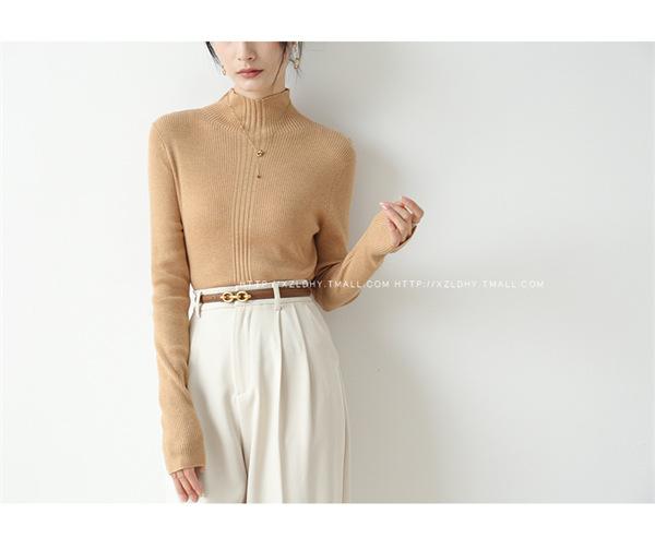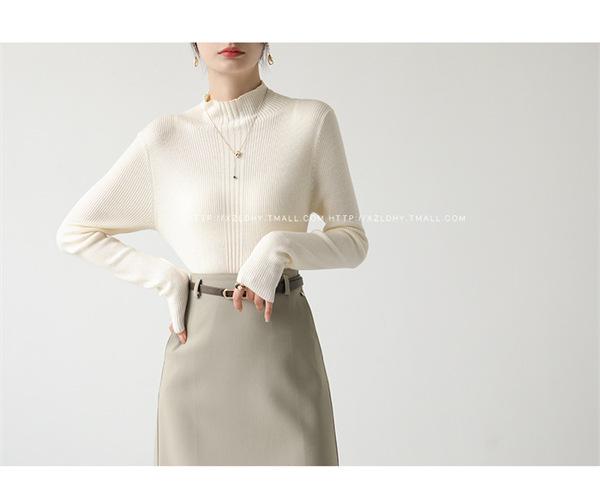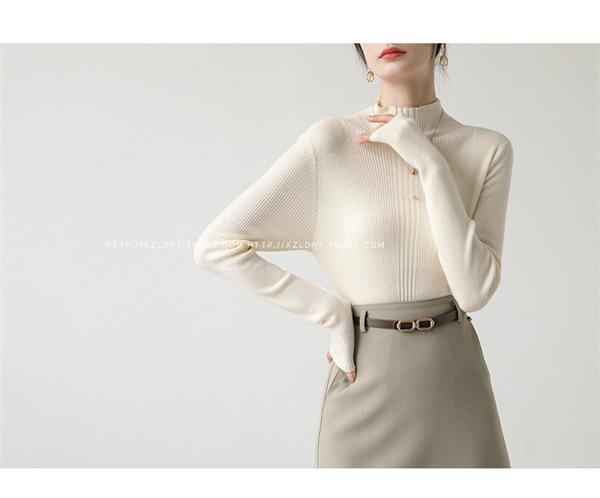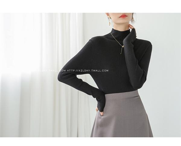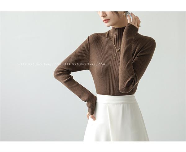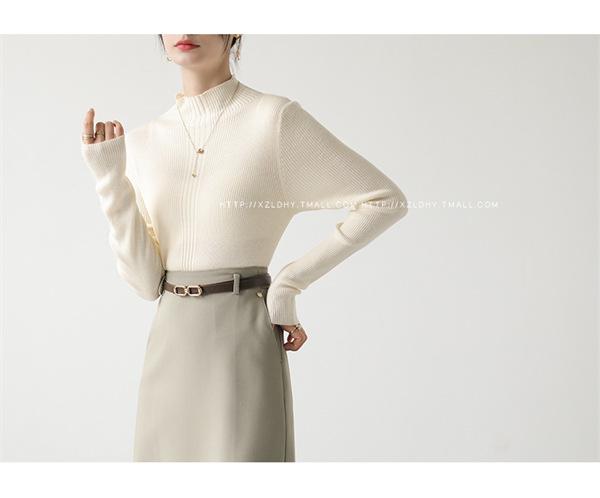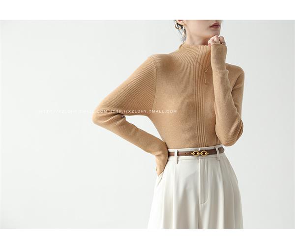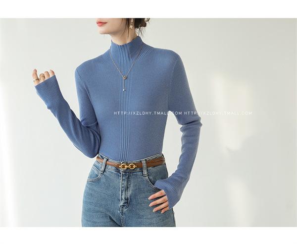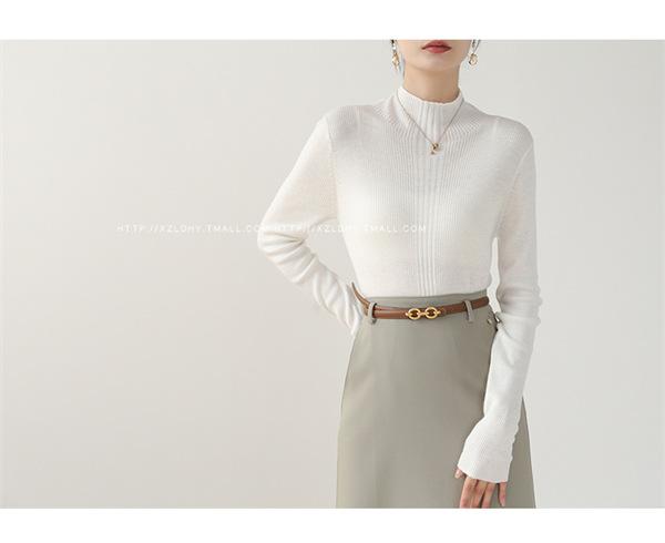 Otoño 2025 suéter francés suéter de mujer otoño e invierno nuevo albaricoque manga larga jersey cuello medio alto camisa base