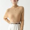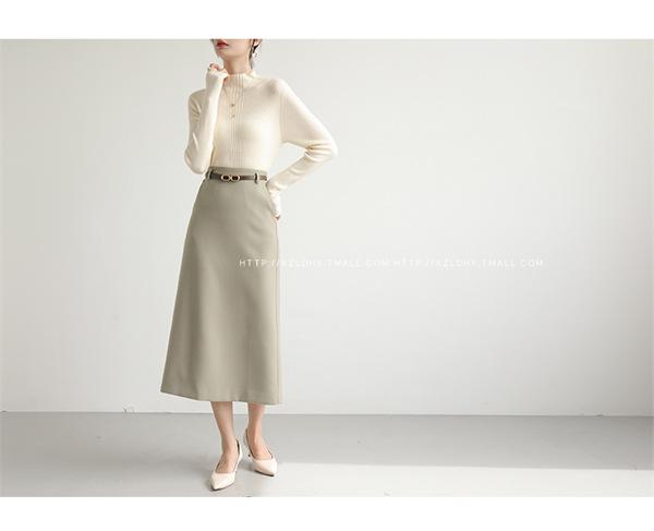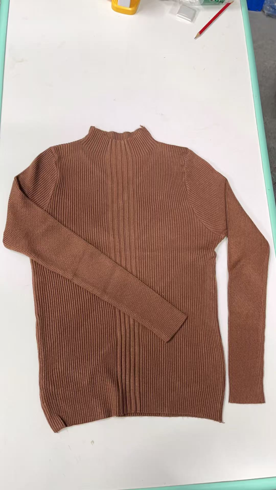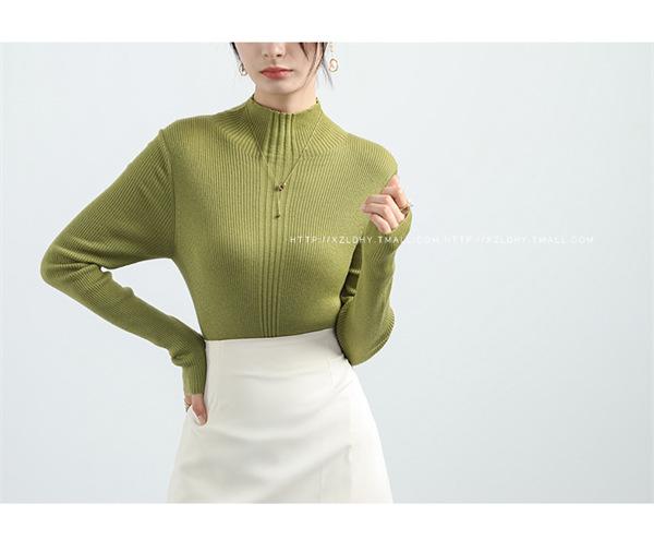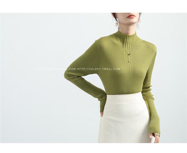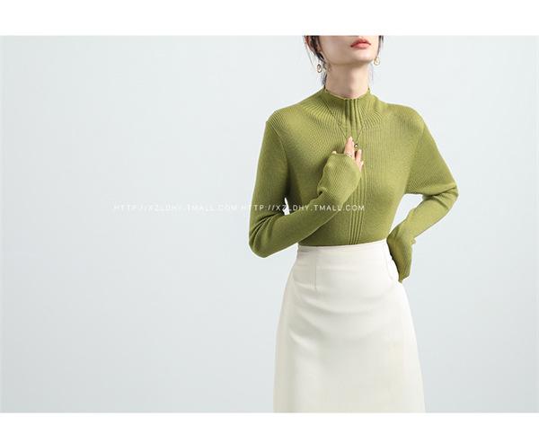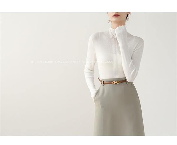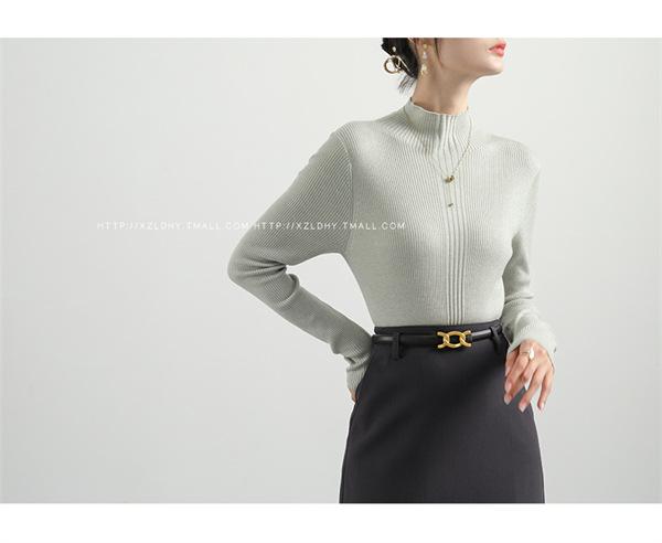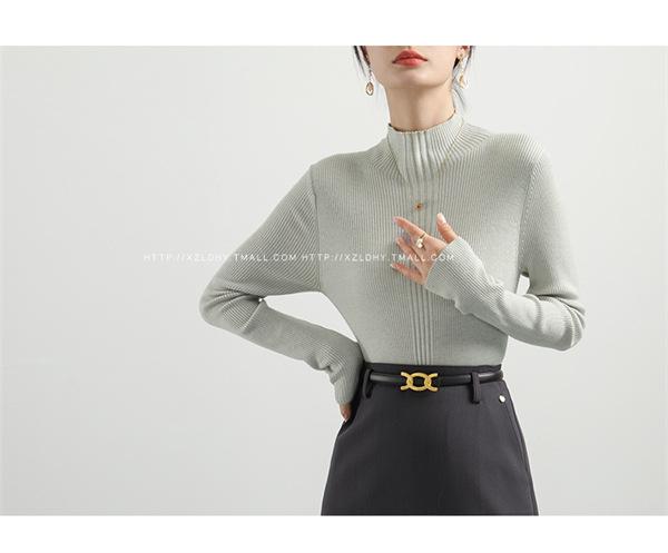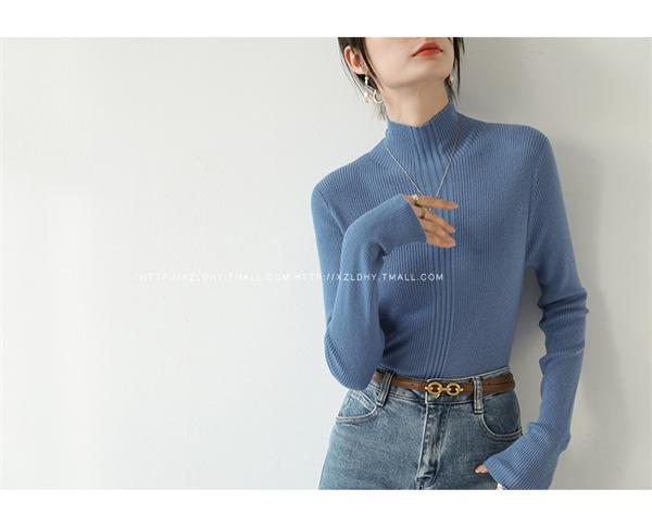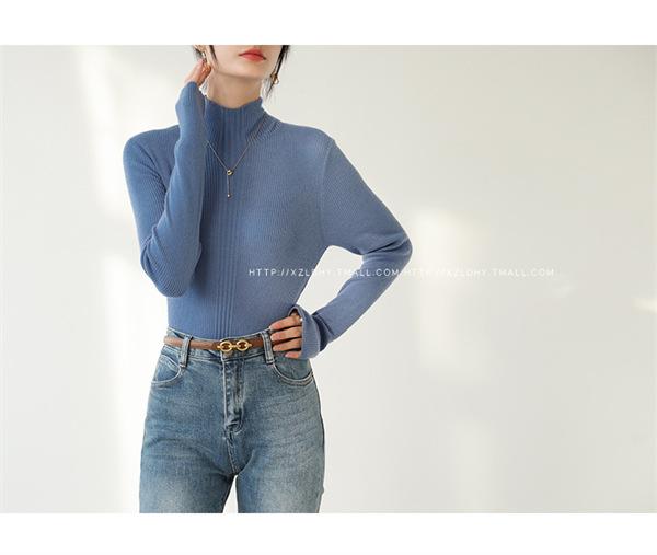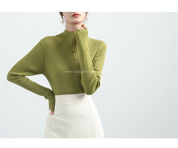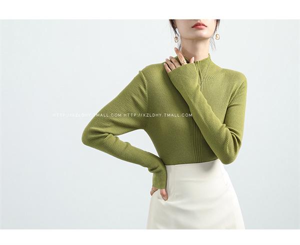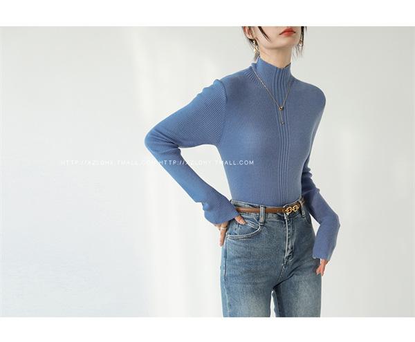 Otoño 2025 suéter francés suéter de mujer otoño e invierno nuevo albaricoque manga larga jersey cuello medio alto camisa base