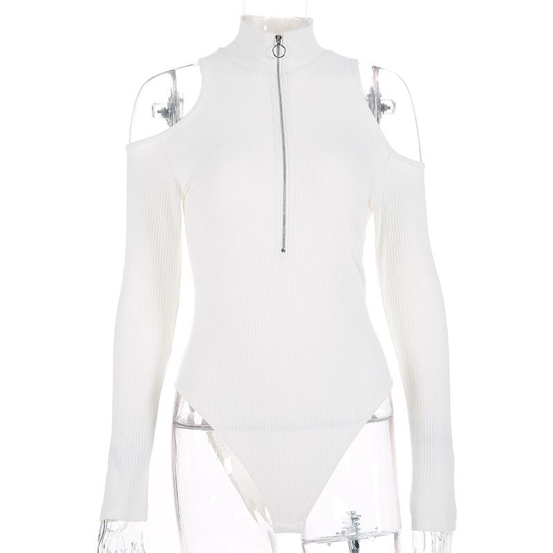 Mono de verano de manga larga con hombros descubiertos y cremallera, estilo europeo y americano, a la moda para mujer