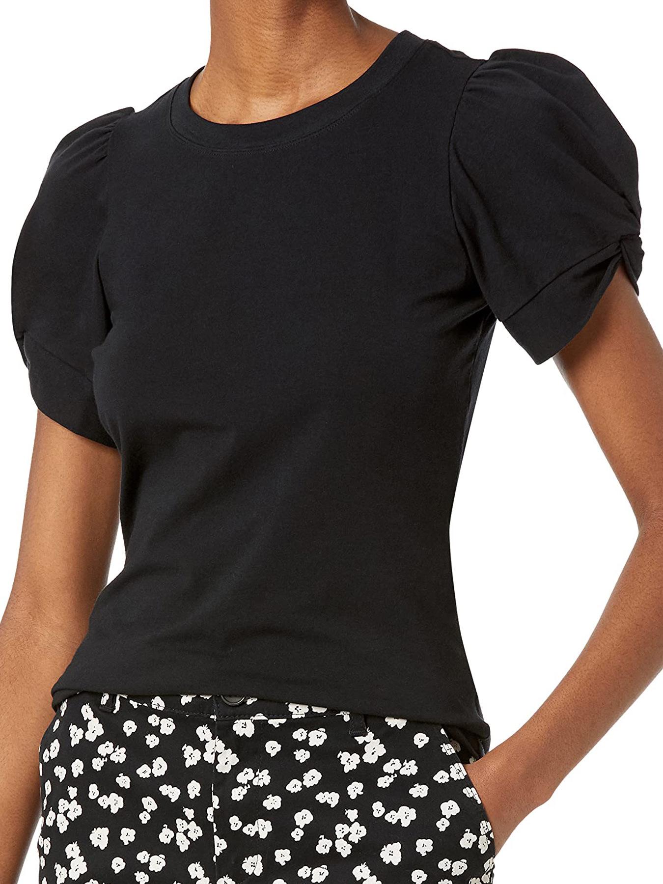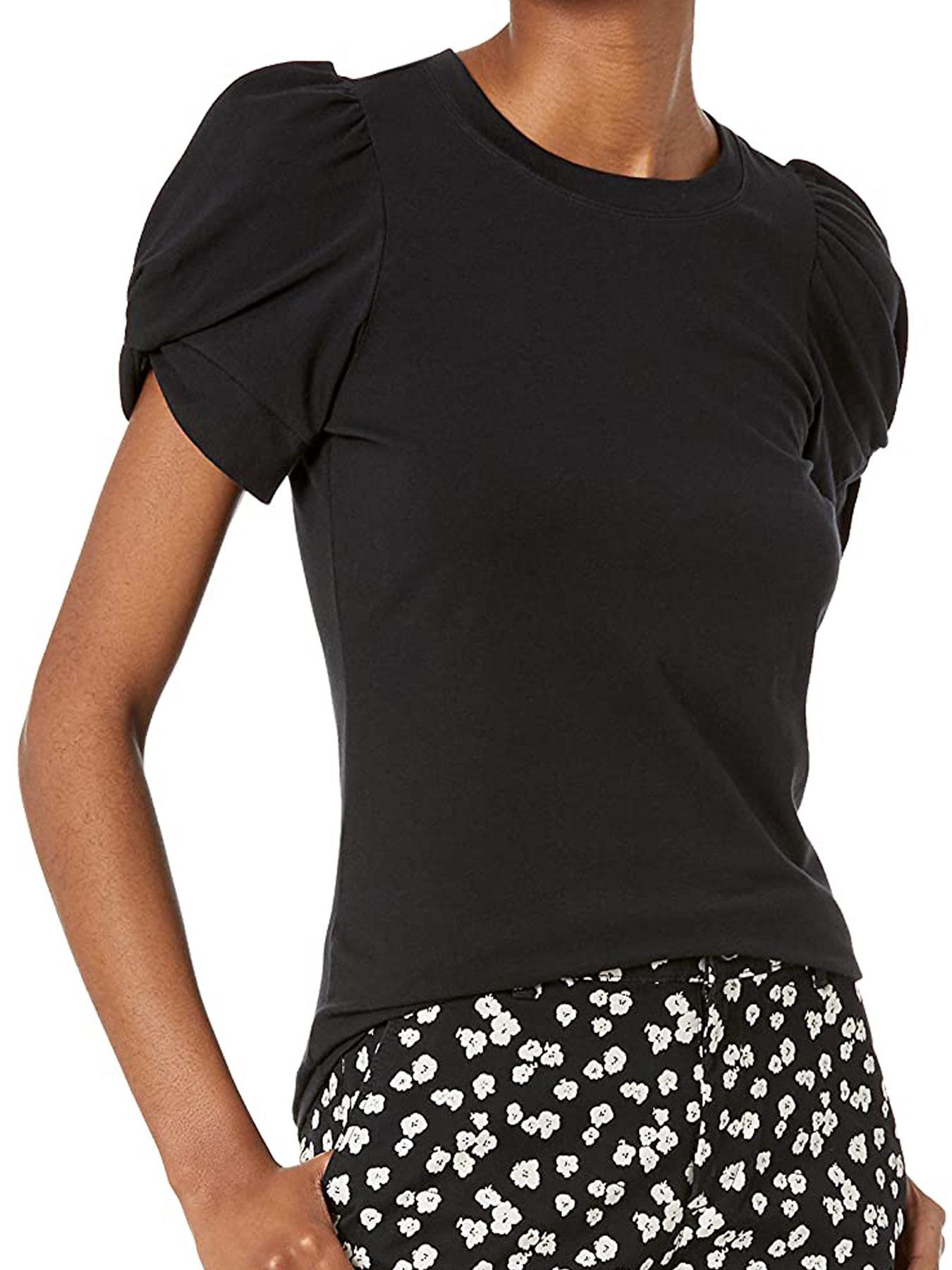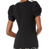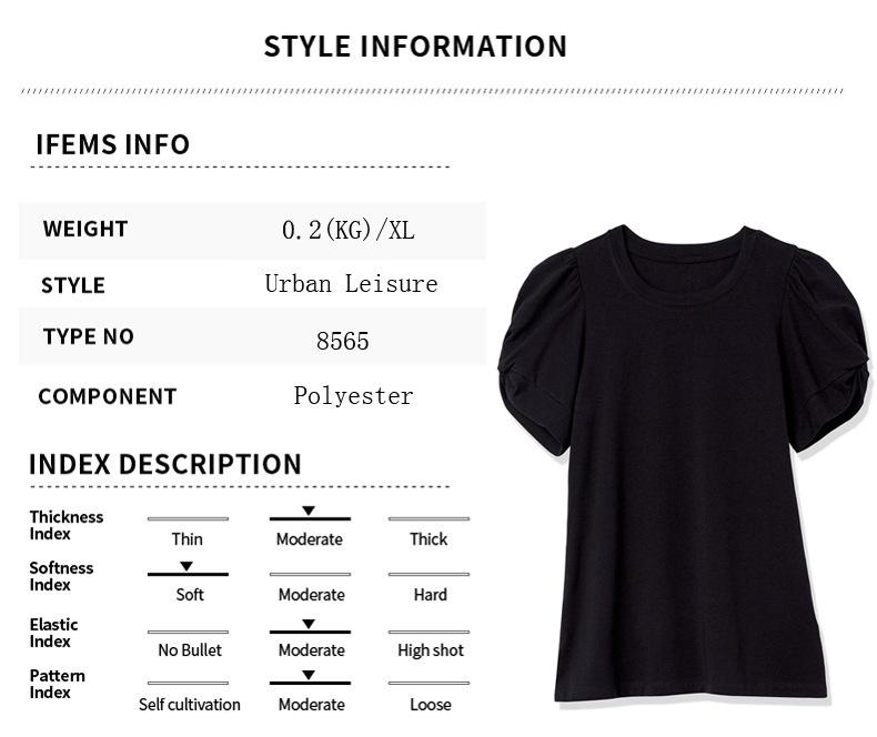 Camiseta de manga corta de color liso para mujer, cuello redondo, manga farol, informal, de comercio exterior europeo y americano, Amazon 2025