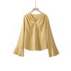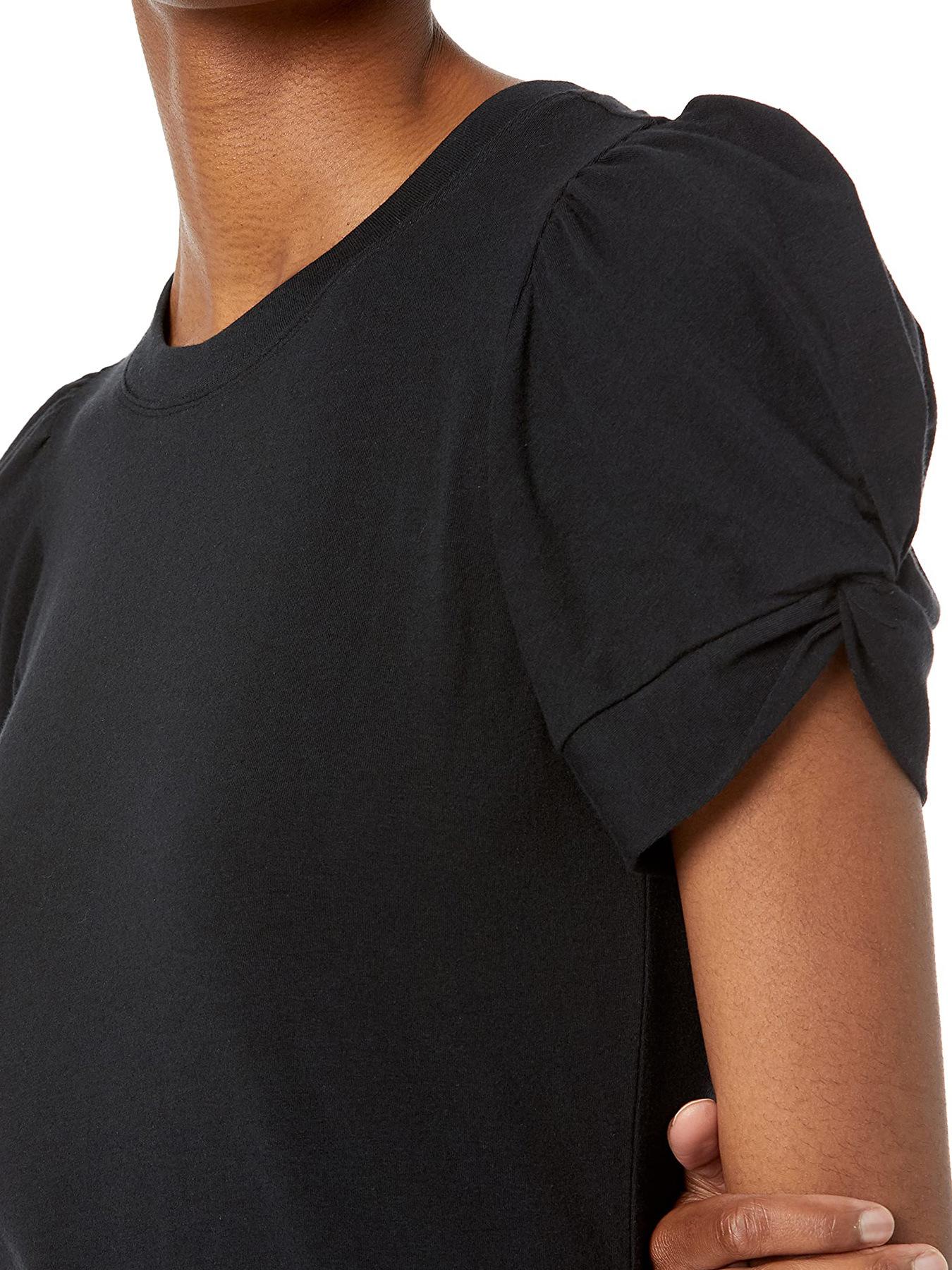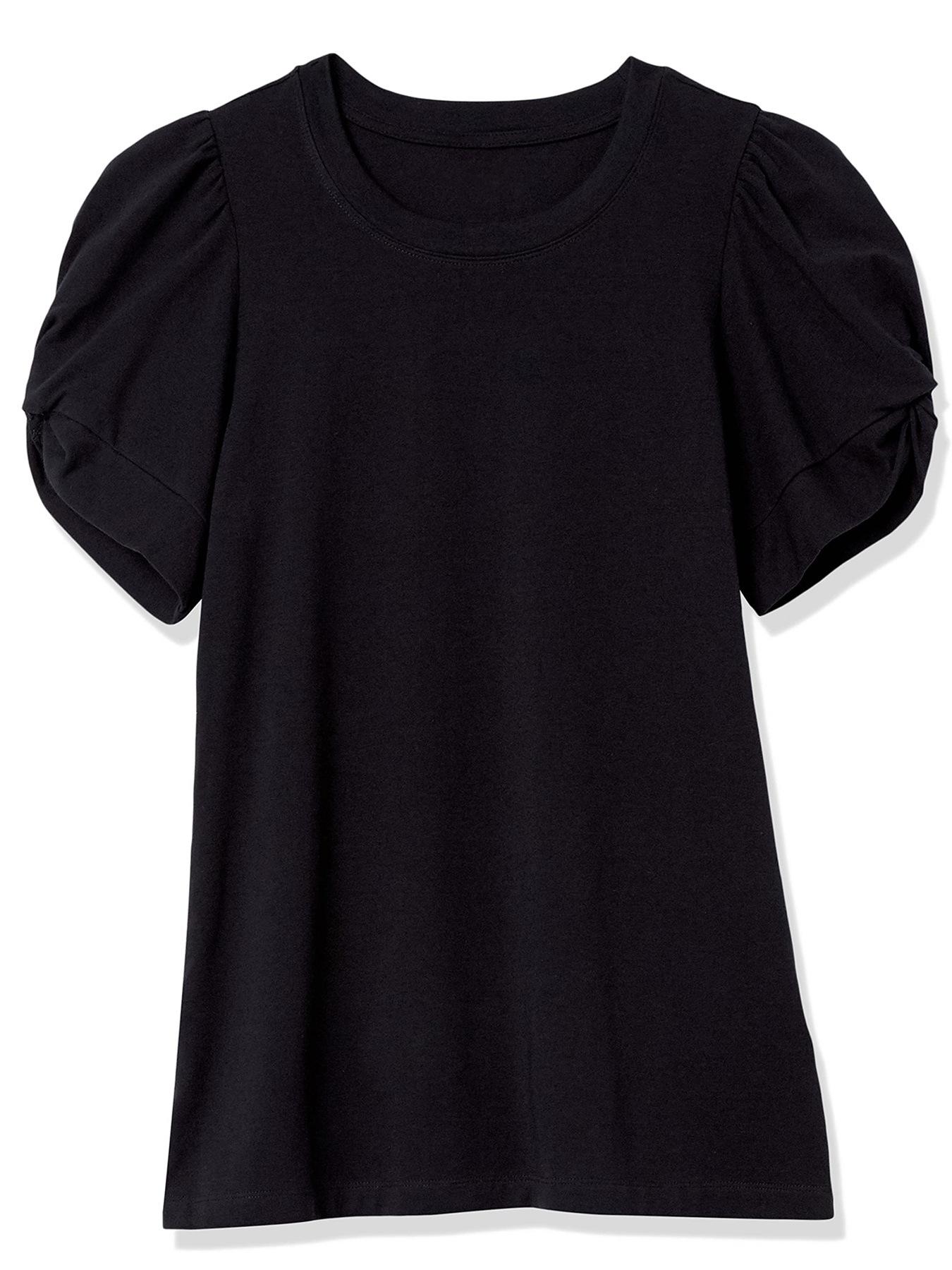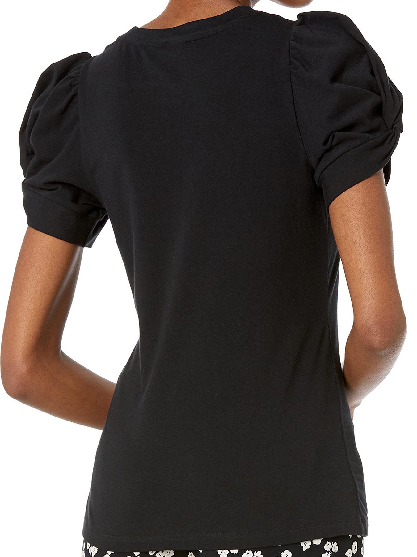 Camiseta de manga corta de color liso para mujer, cuello redondo, manga farol, informal, de comercio exterior europeo y americano, Amazon 2025