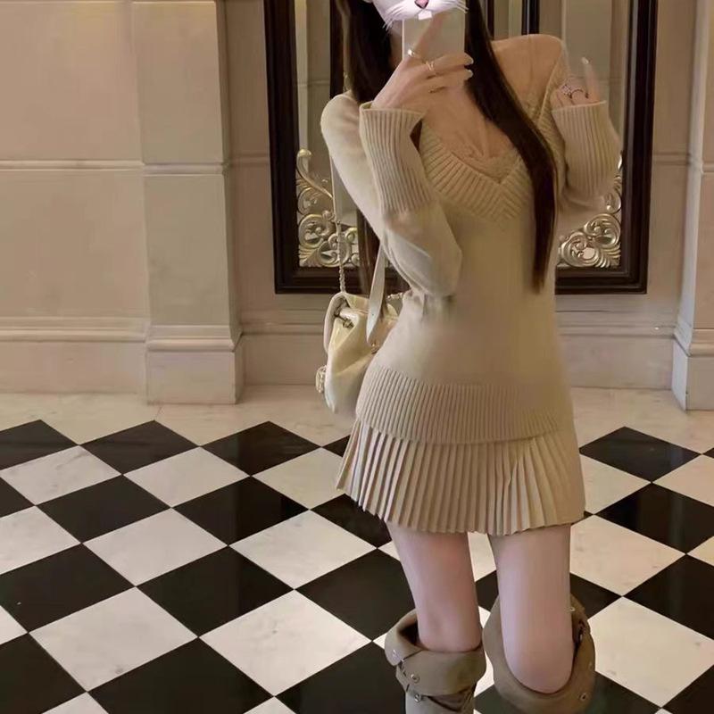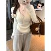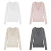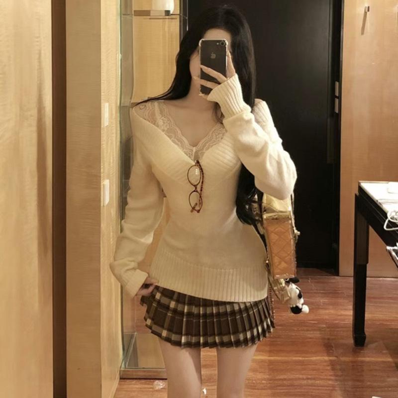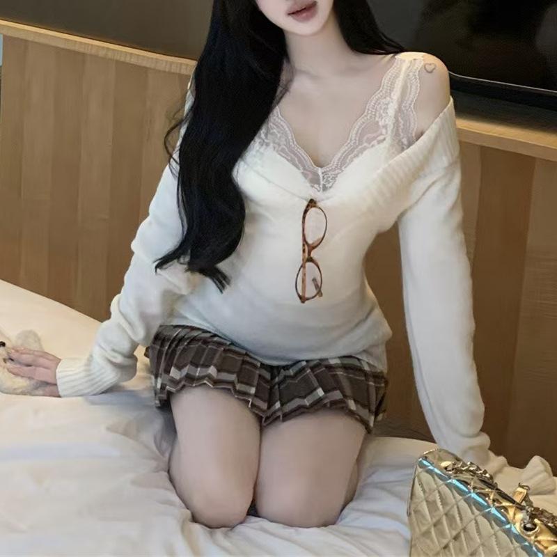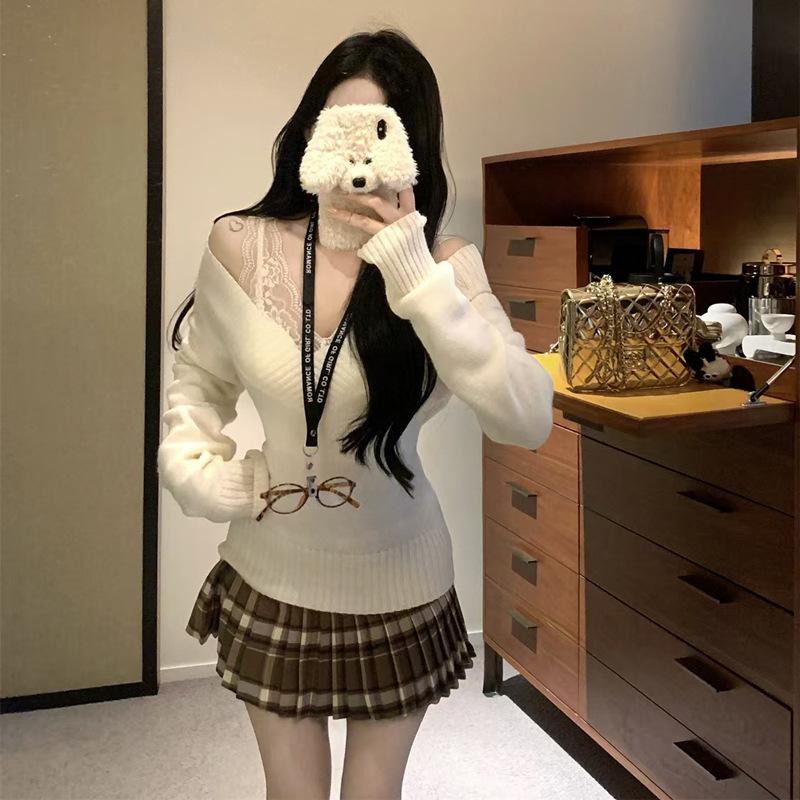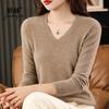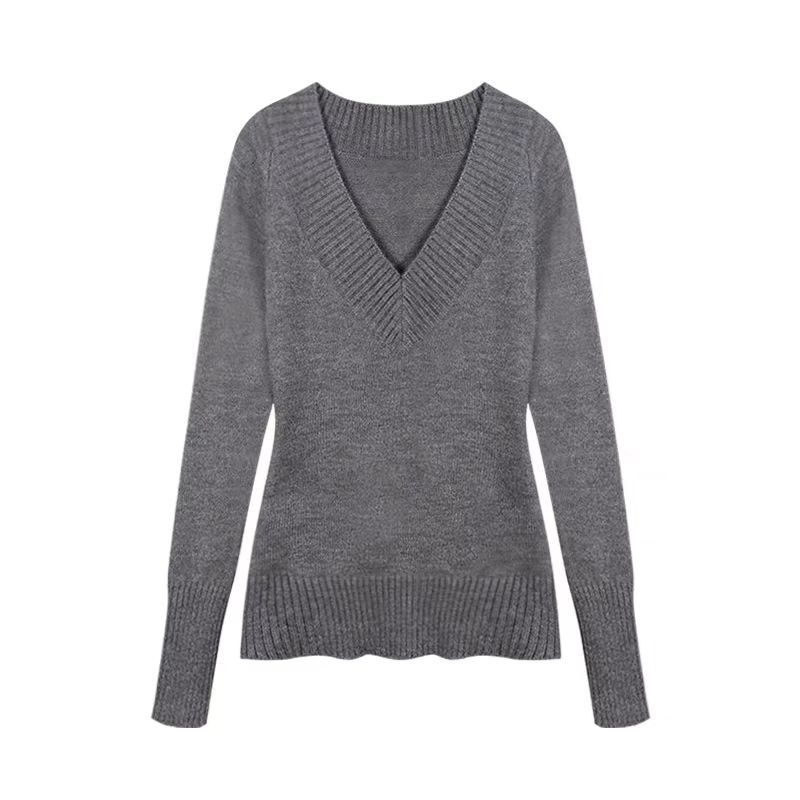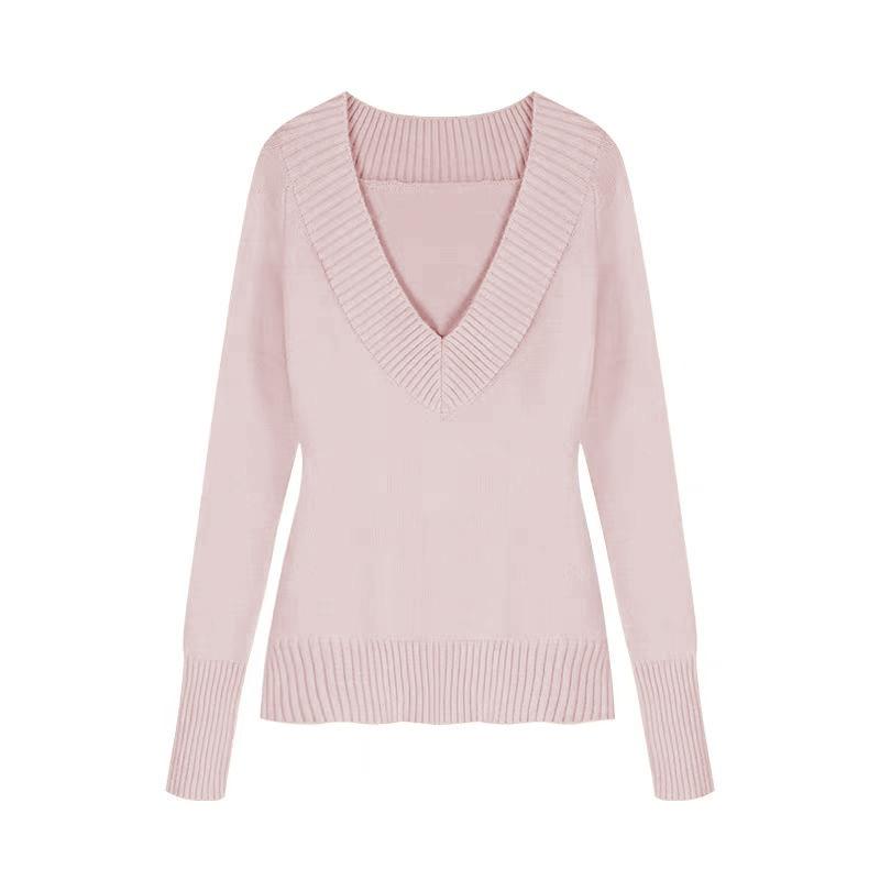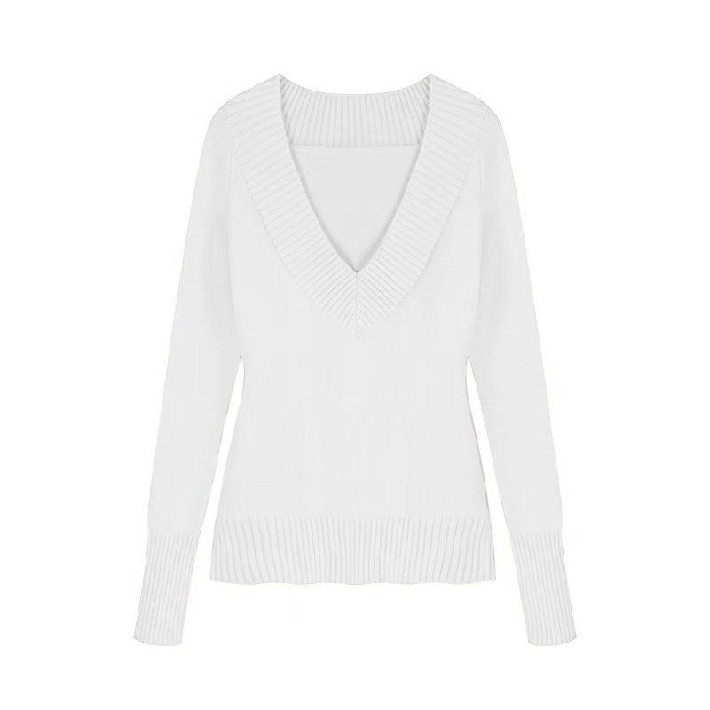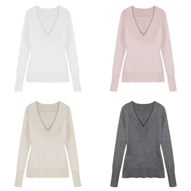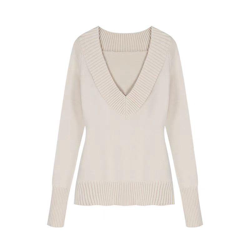 Suéter de punto con cuello en V y hombros descubiertos para mujer, estilo holgado, de manga larga, para otoño e invierno.