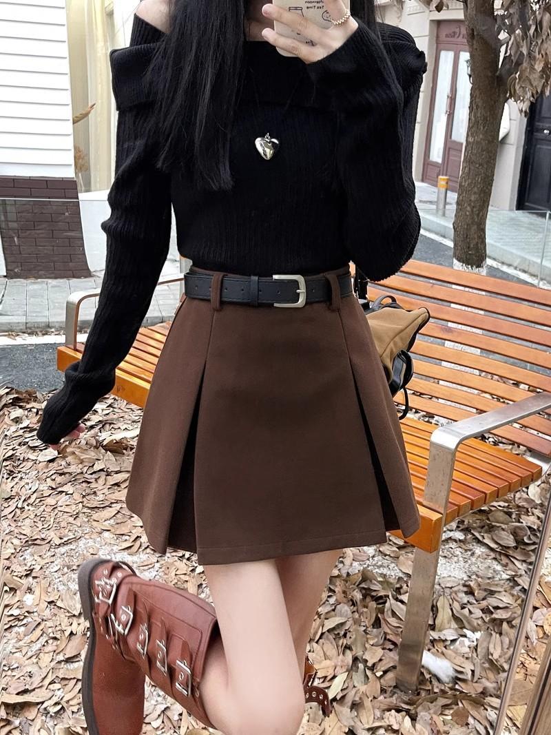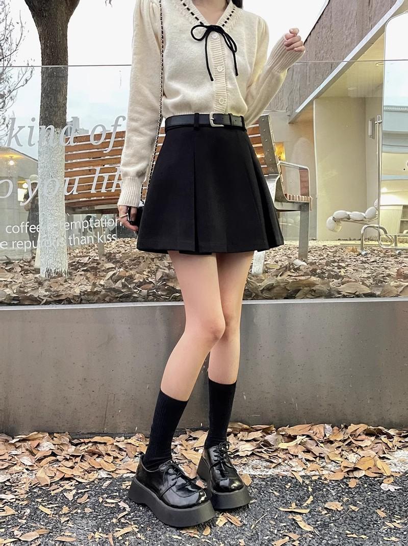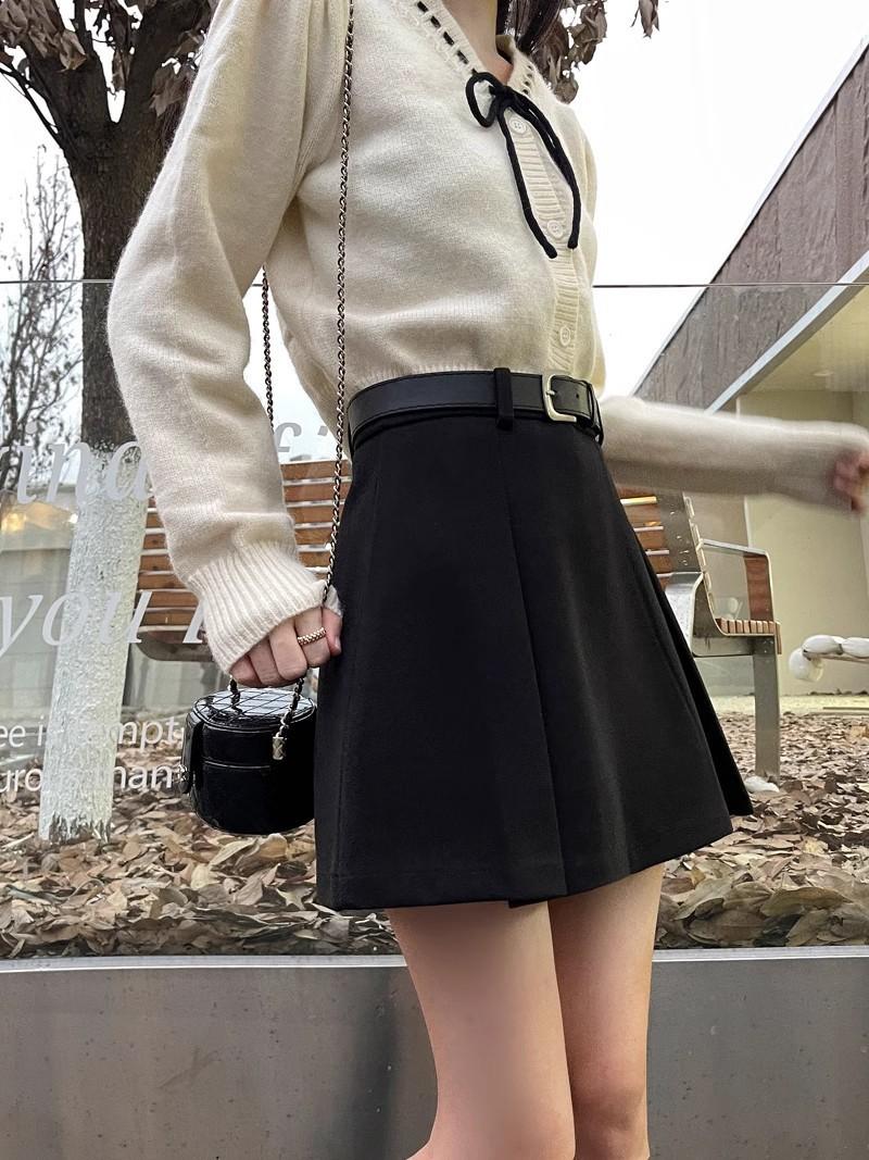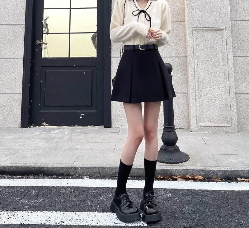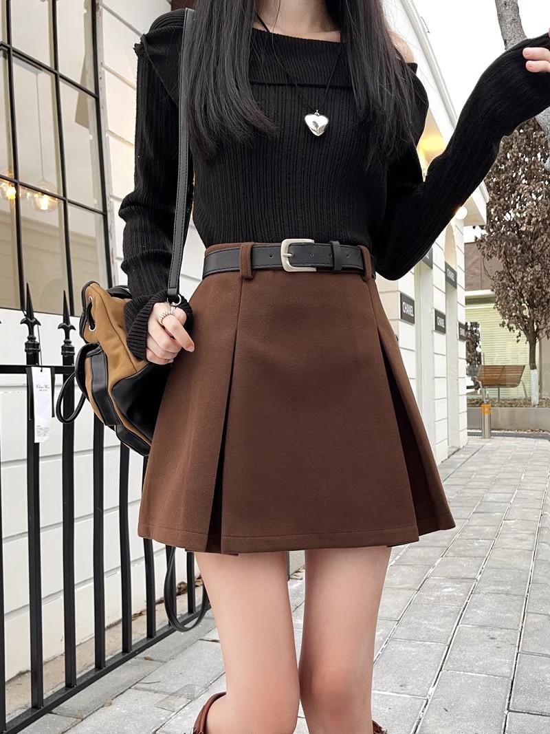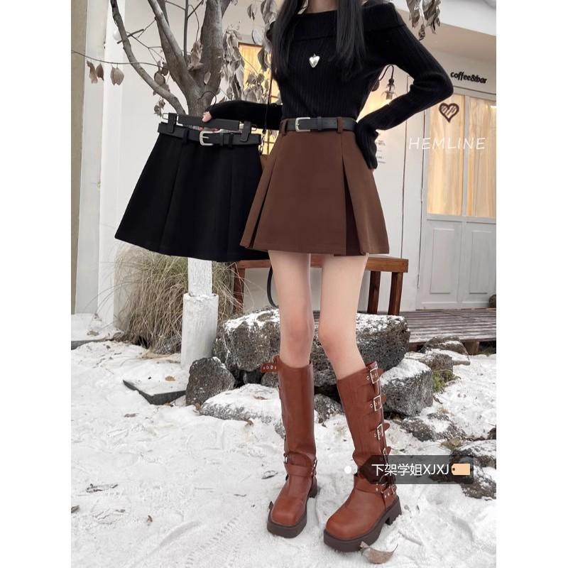 Falda Corta Falda de Lana Falda de Mujer Otoño e Invierno Nuevo Estilo Académico Falda Plisada Cintura Alta Adelgazante Pequeña A- Forma Cadera