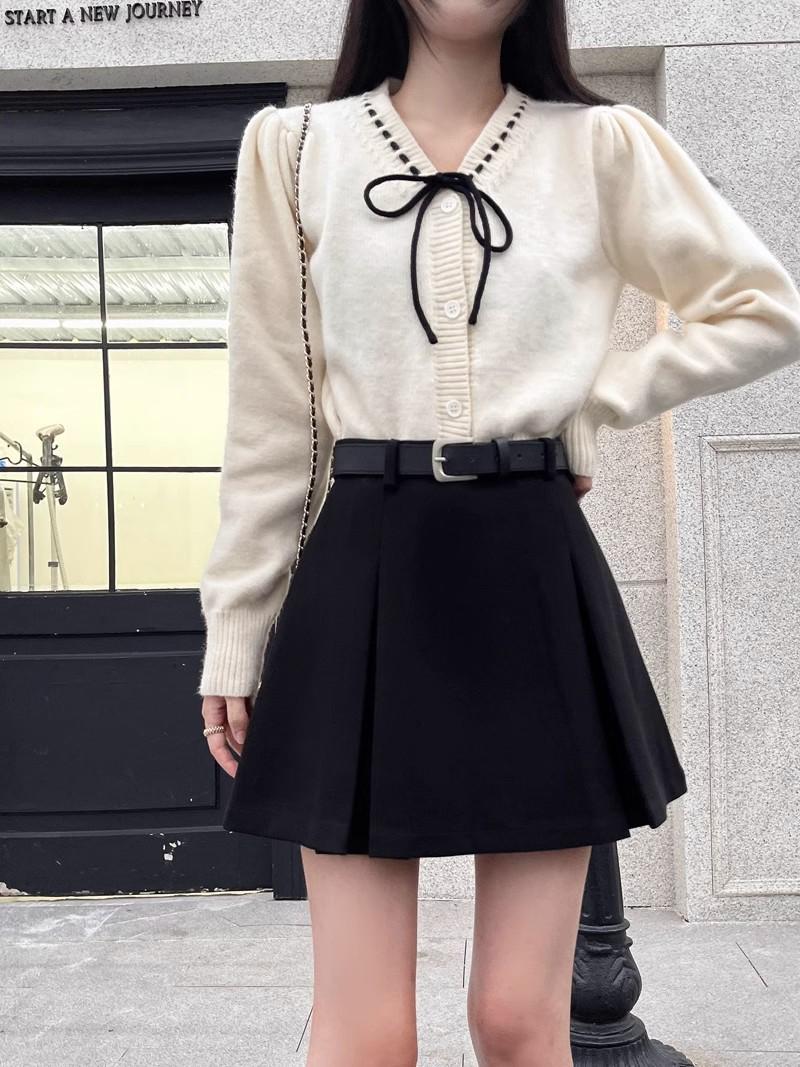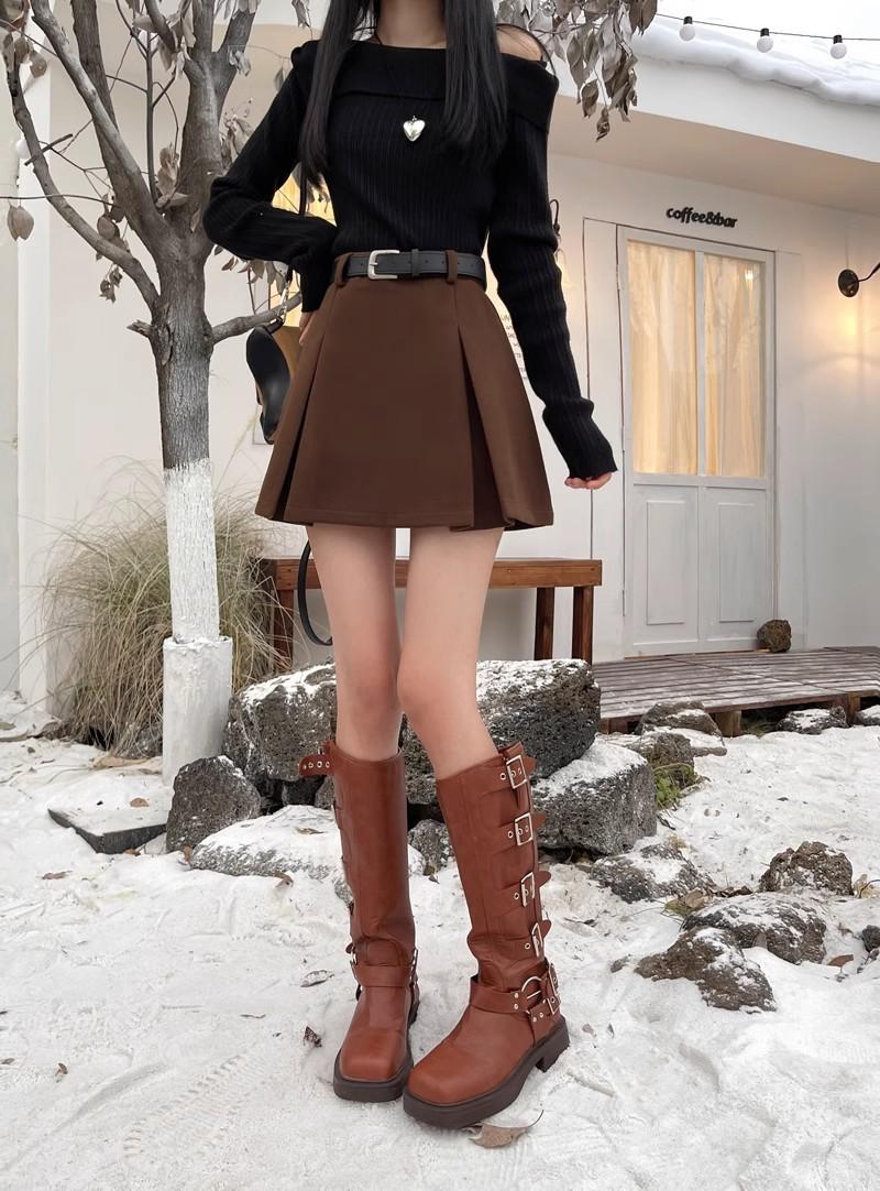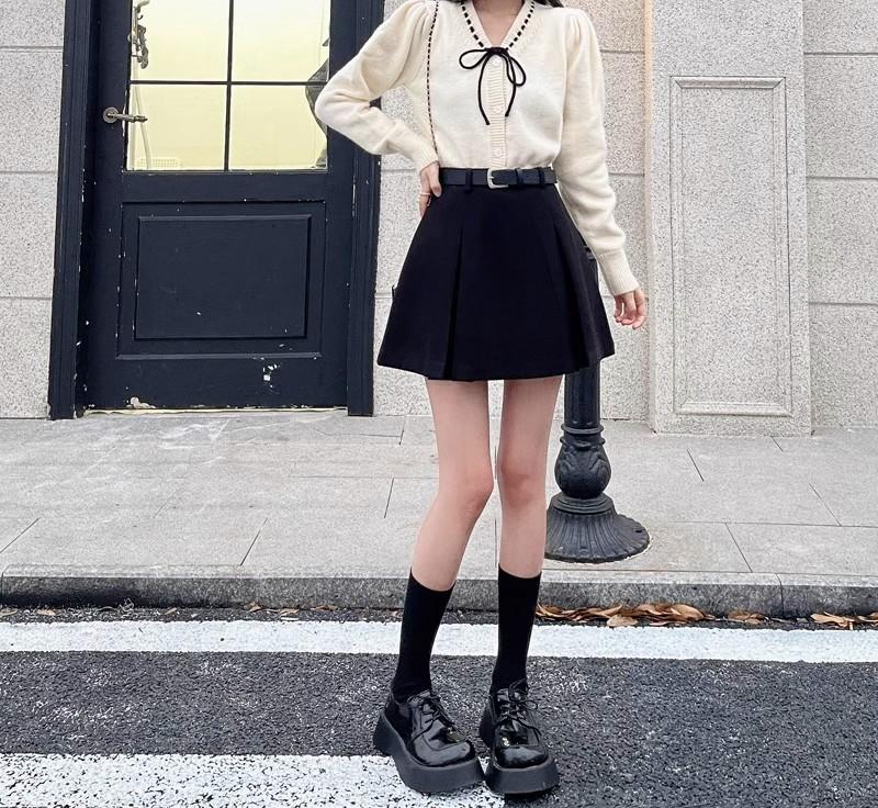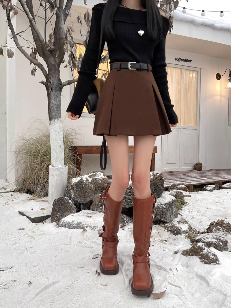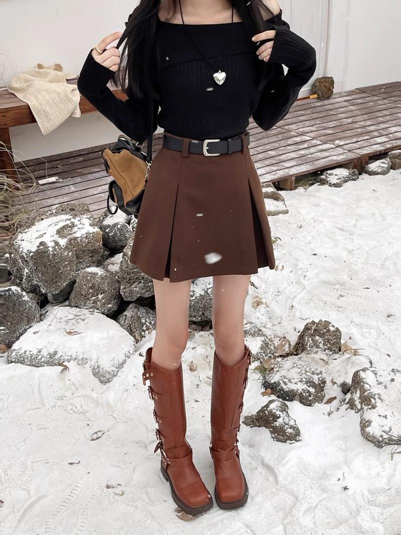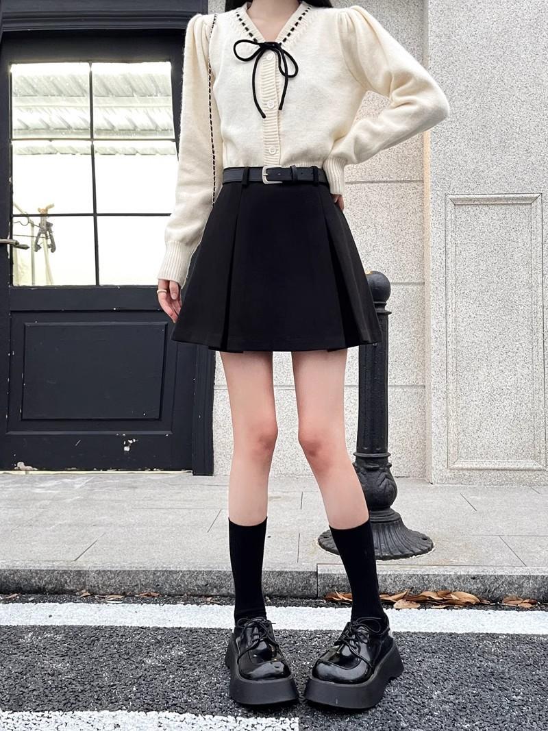 Falda Corta Falda de Lana Falda de Mujer Otoño e Invierno Nuevo Estilo Académico Falda Plisada Cintura Alta Adelgazante Pequeña A- Forma Cadera