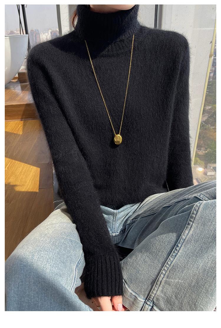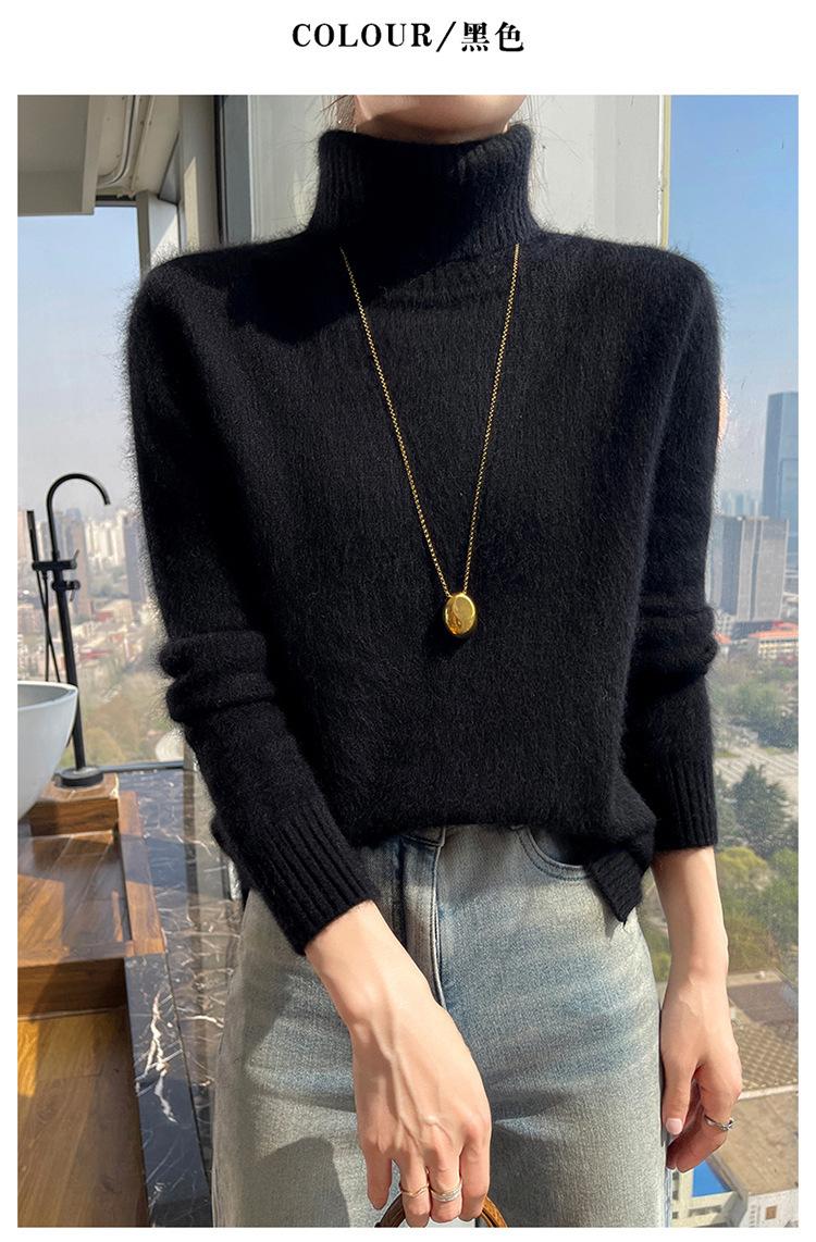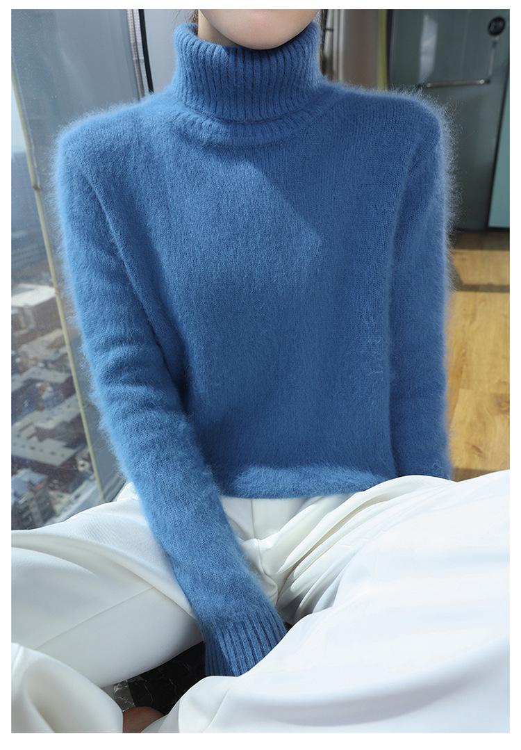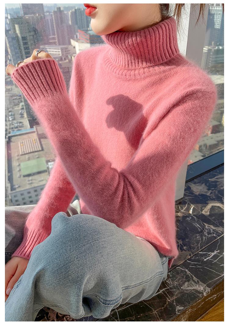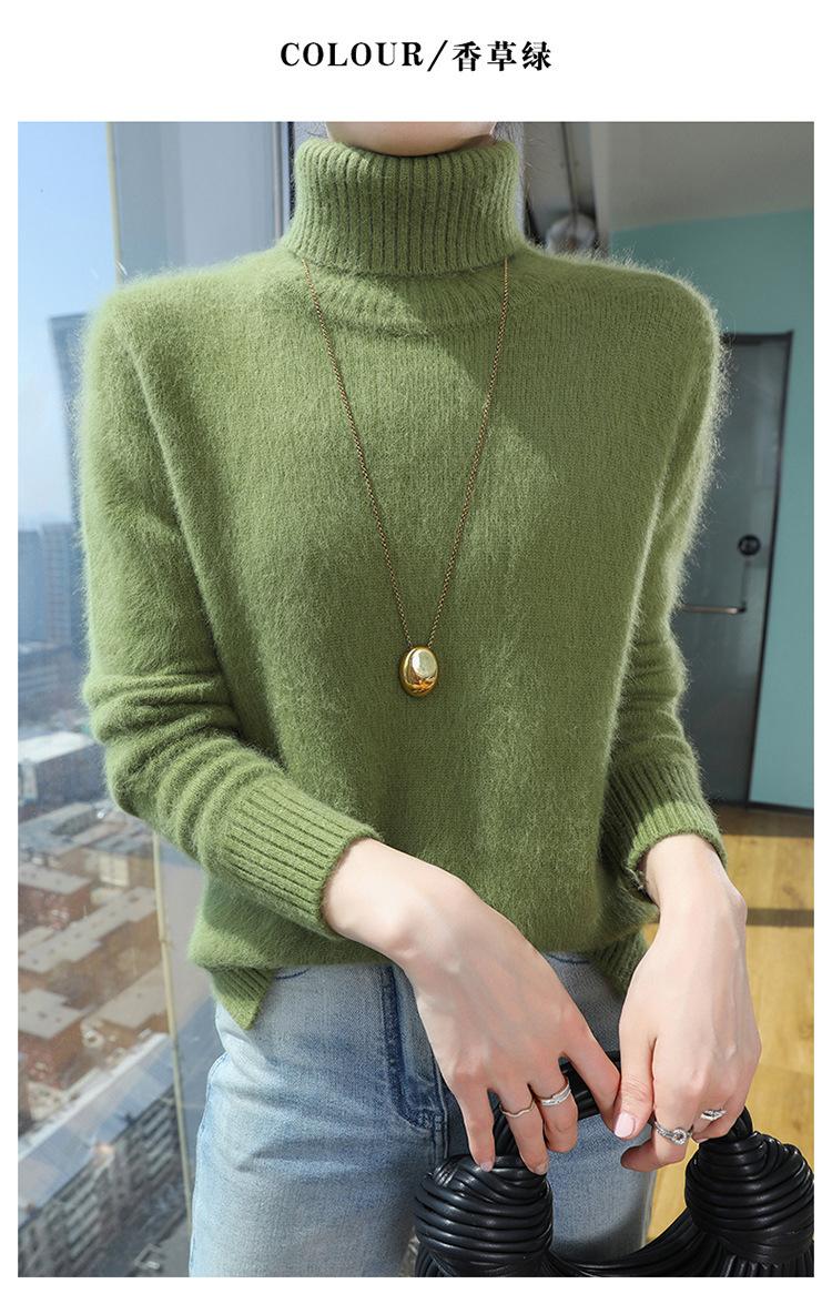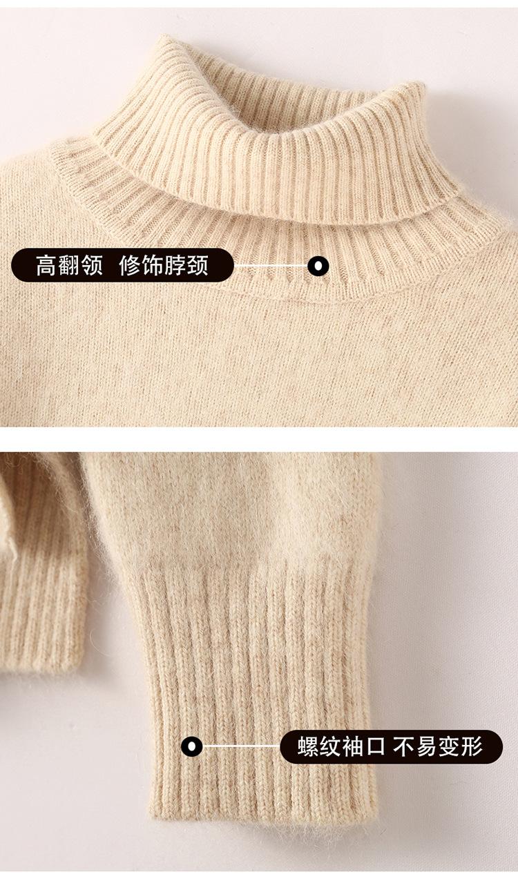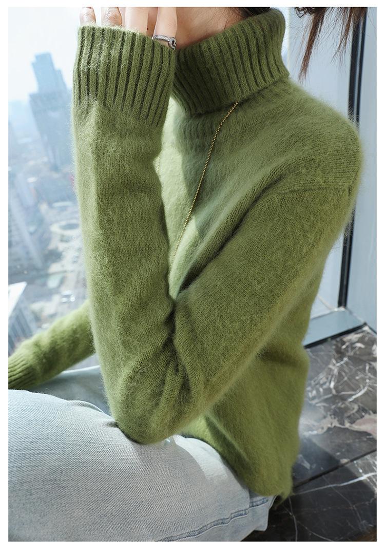 Suéter de Punto de Invierno para Mujer de Visón Suelto de Cuello Alto Grueso Corto de Color Sólido Simple de Lana Cálido