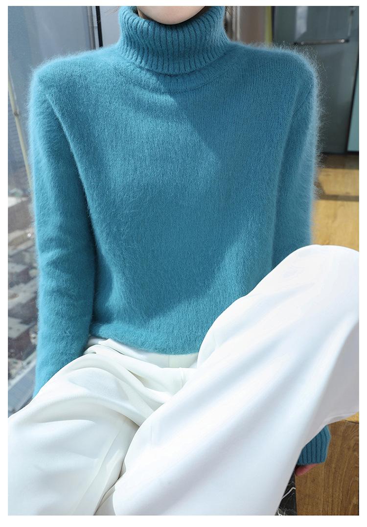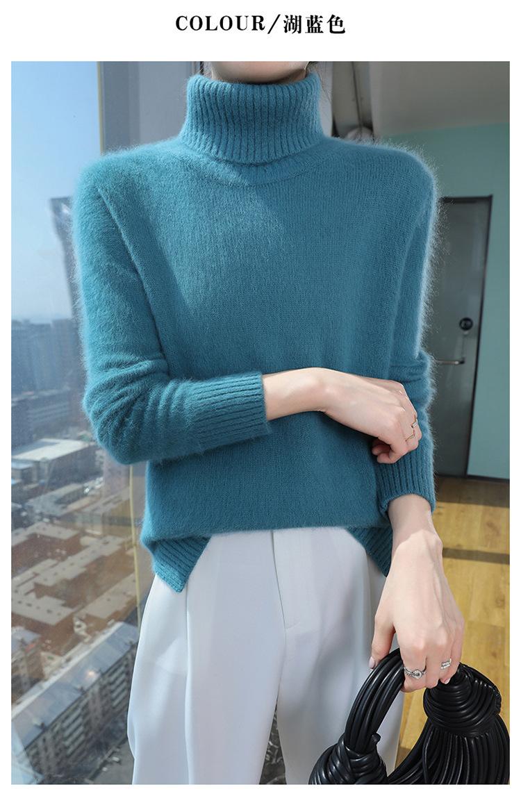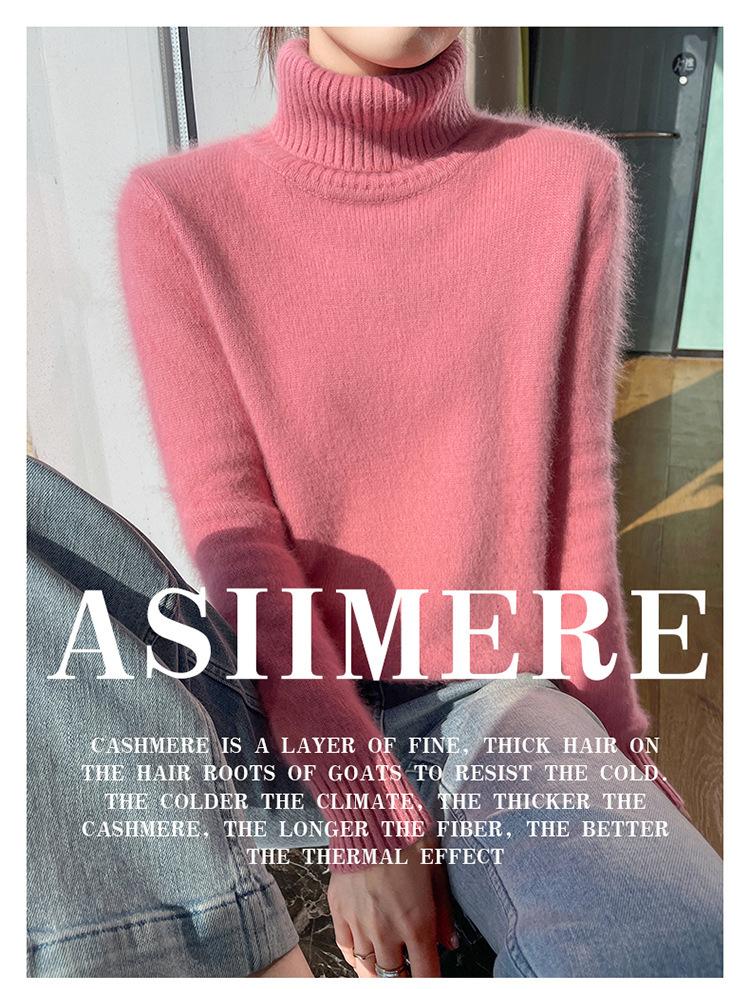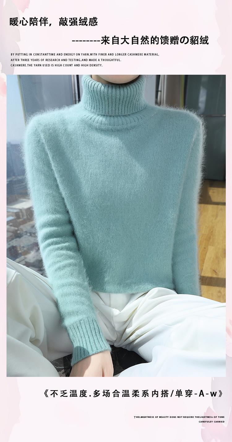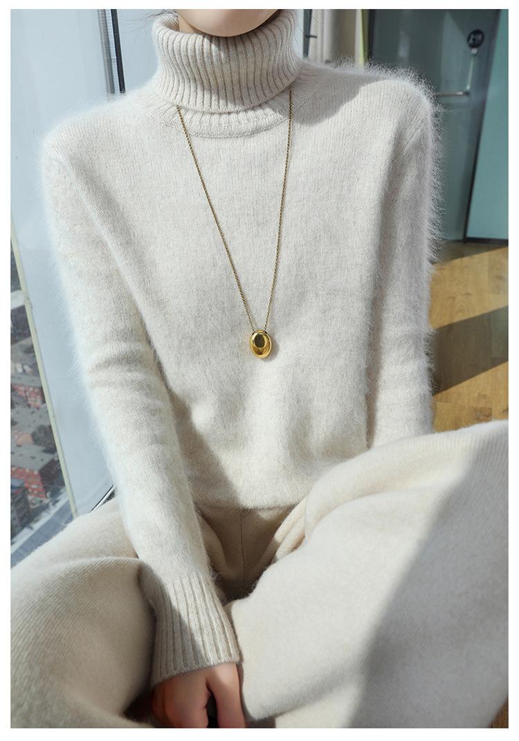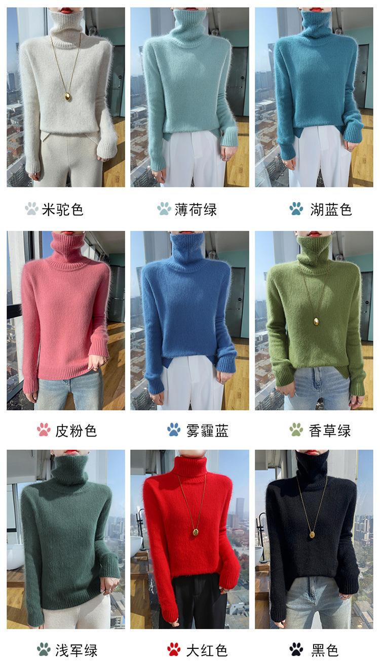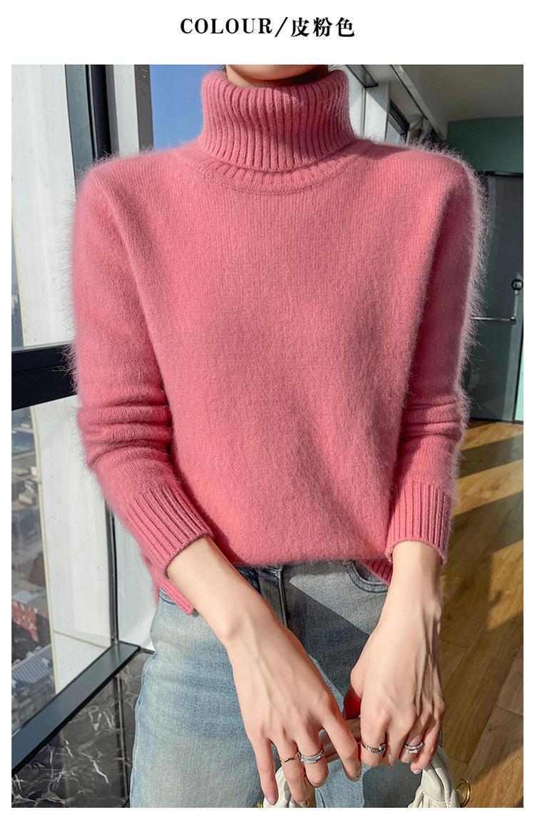 Suéter de Punto de Invierno para Mujer de Visón Suelto de Cuello Alto Grueso Corto de Color Sólido Simple de Lana Cálido