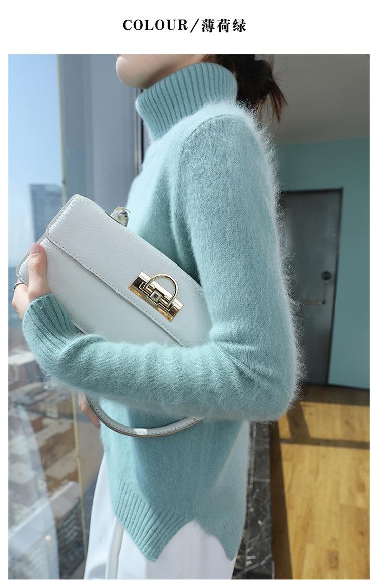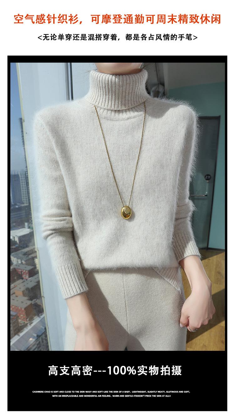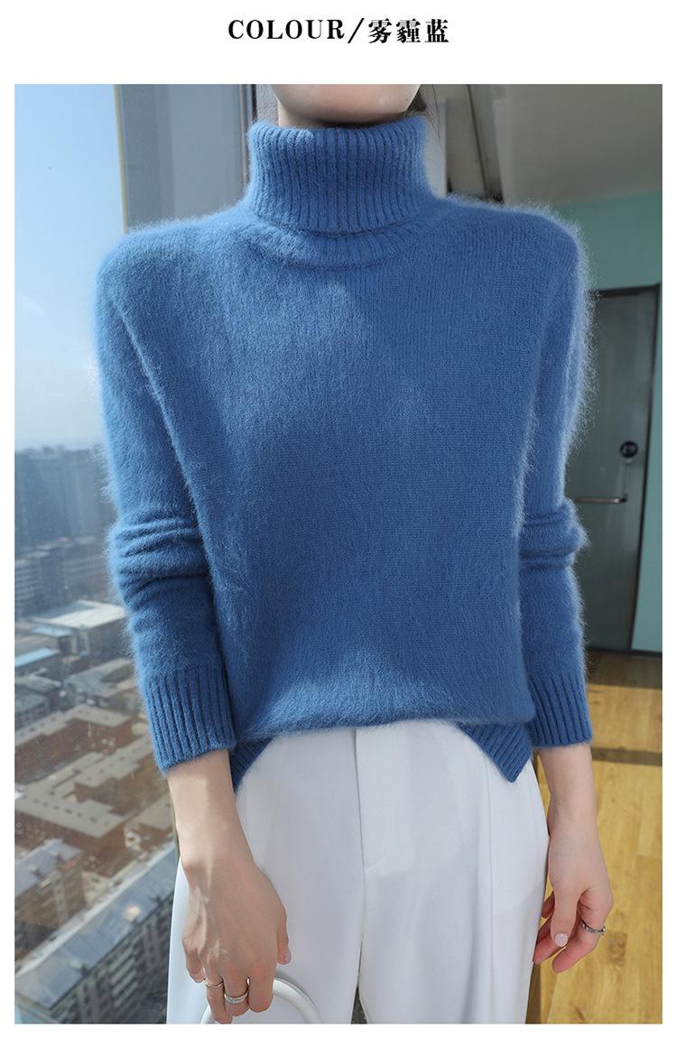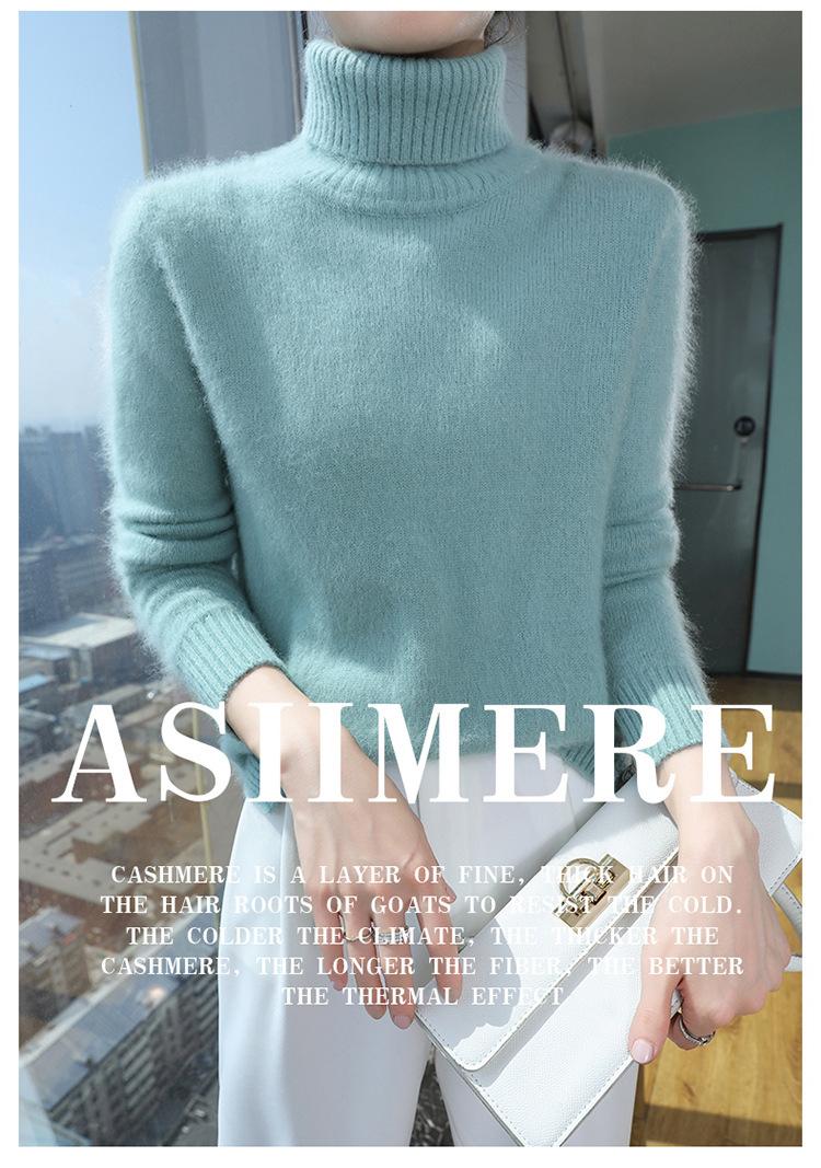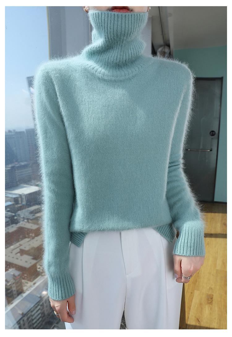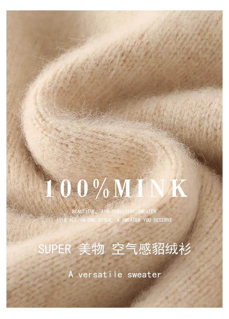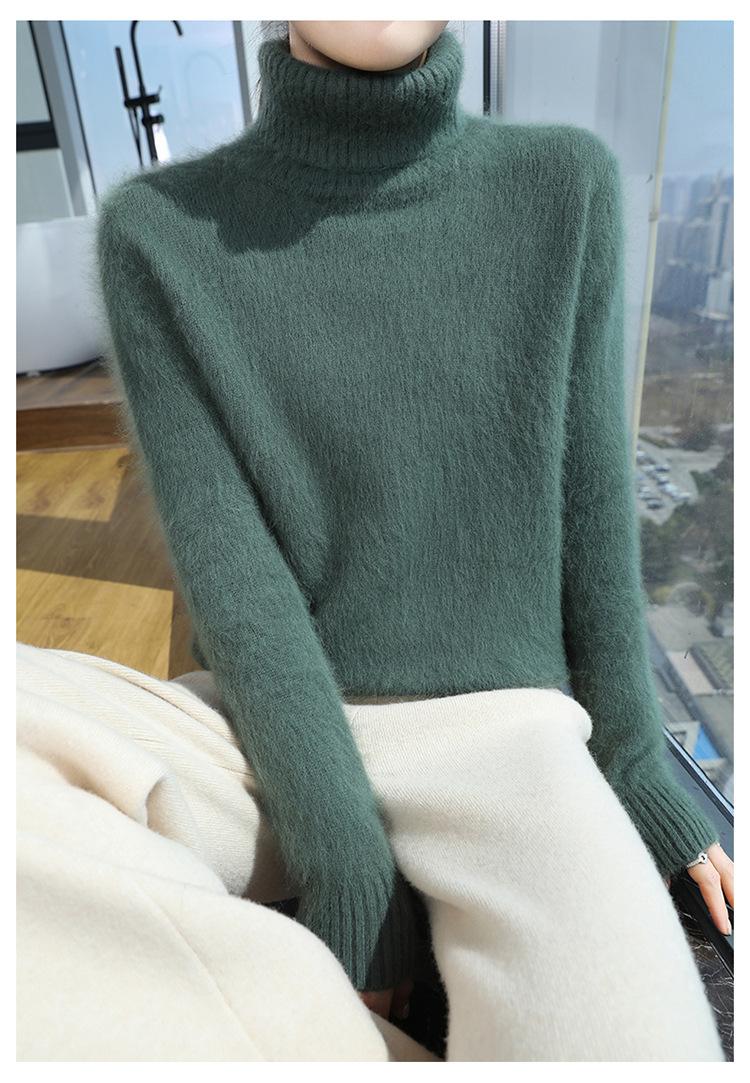 Suéter de Punto de Invierno para Mujer de Visón Suelto de Cuello Alto Grueso Corto de Color Sólido Simple de Lana Cálido