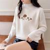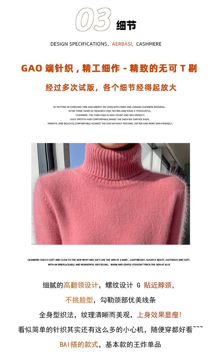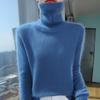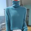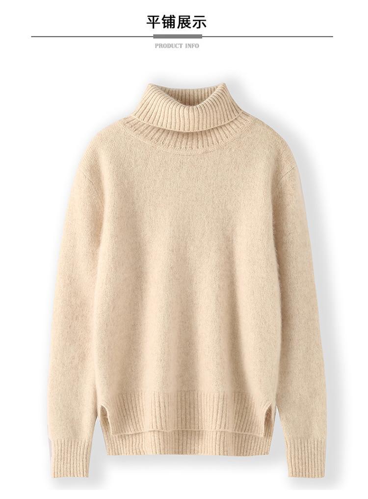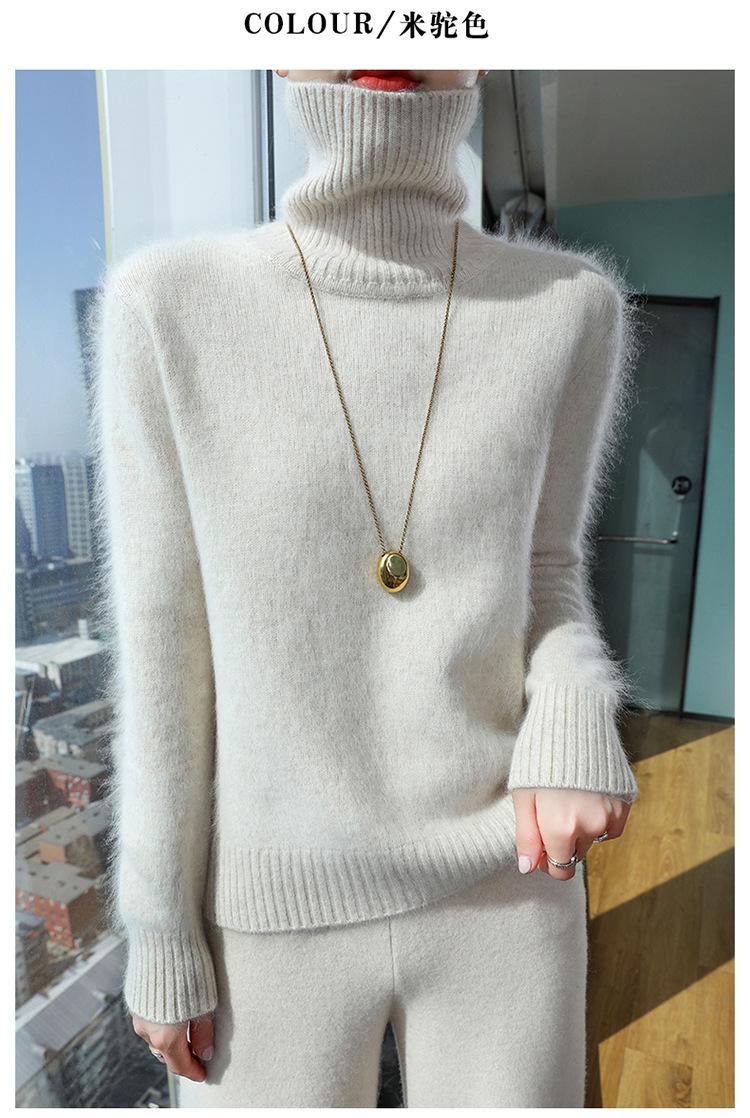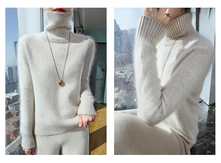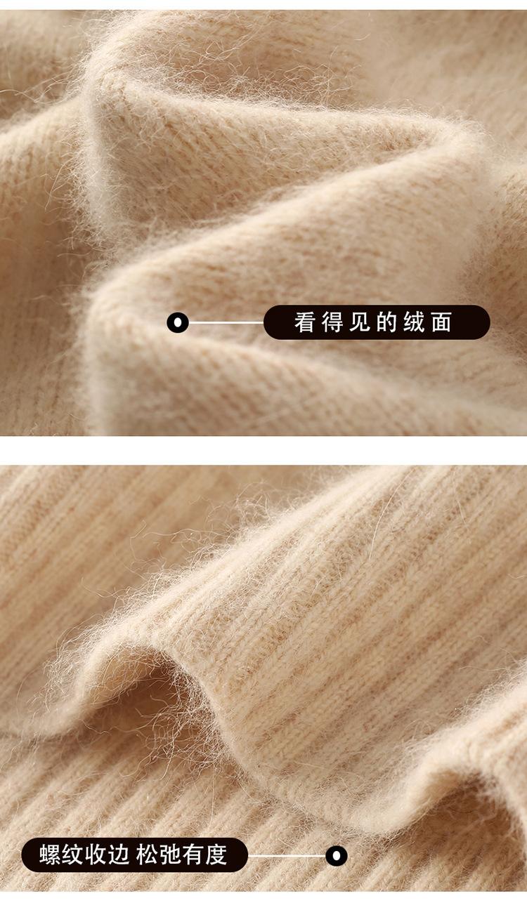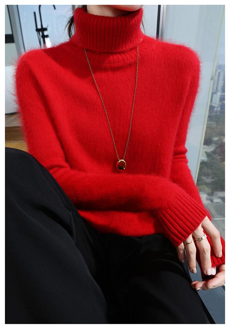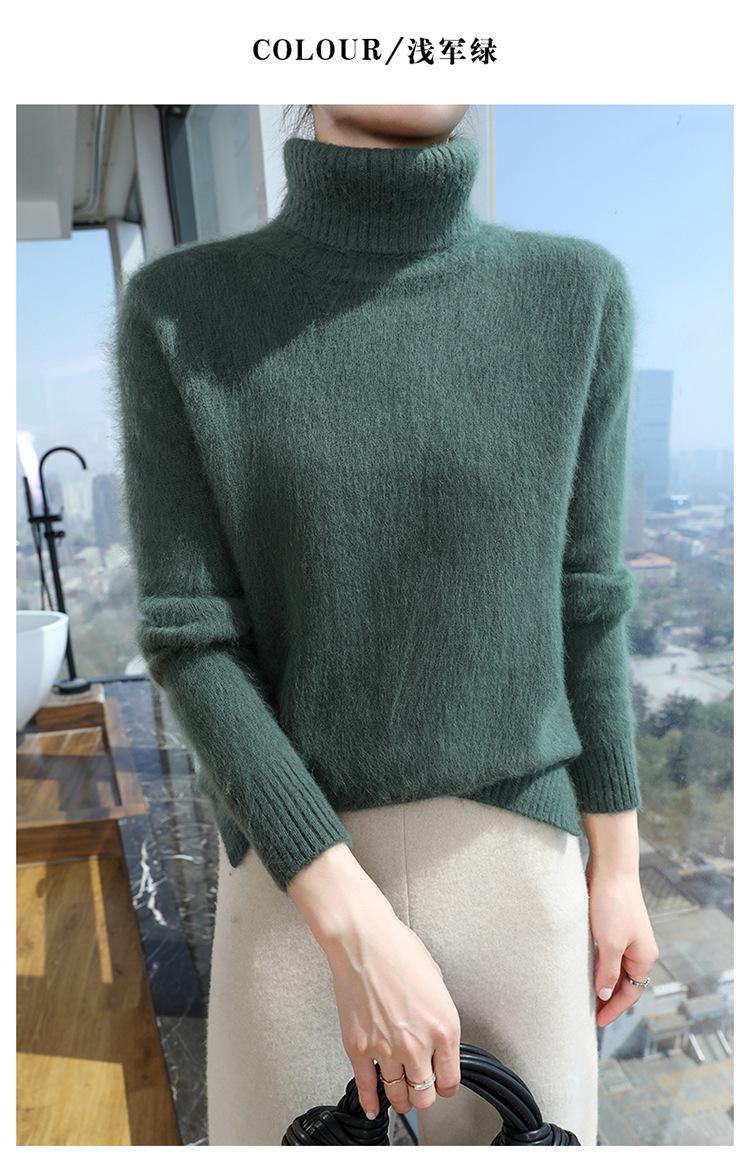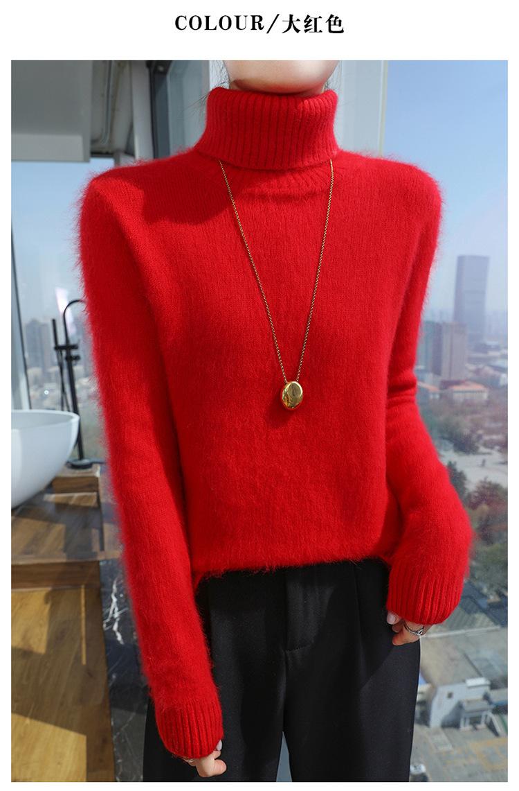 Suéter de Punto de Invierno para Mujer de Visón Suelto de Cuello Alto Grueso Corto de Color Sólido Simple de Lana Cálido