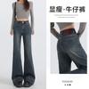 Vaqueros micro acampanados estilo retro americano para mujer, primavera de 2024, nuevos pantalones anchos rectos de cintura alta y talla grande.