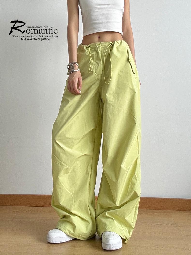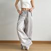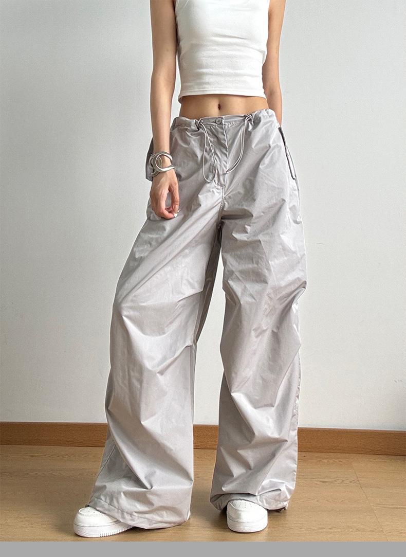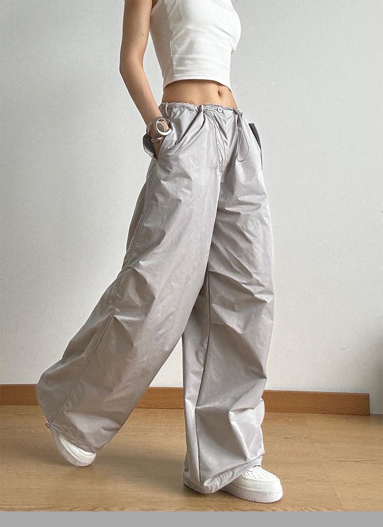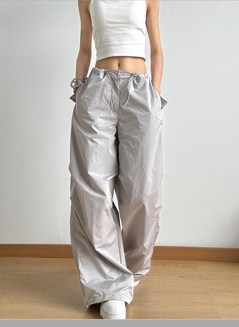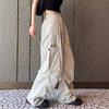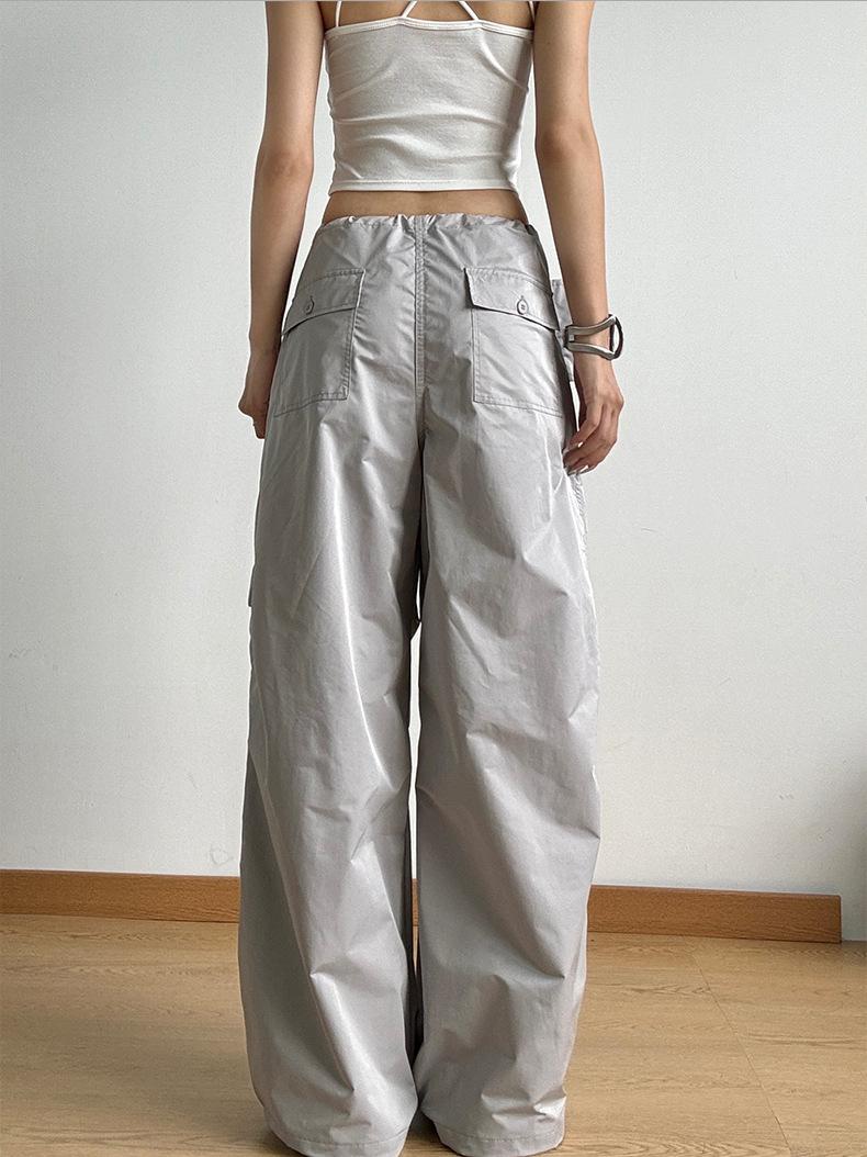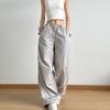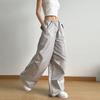 Pantalones Cargo Paracaídas Grises para Mujer Verano Delgados 2024 Nuevos Deportivos Americanos Rectos de Secado Rápido Sueltos de Pierna Ancha