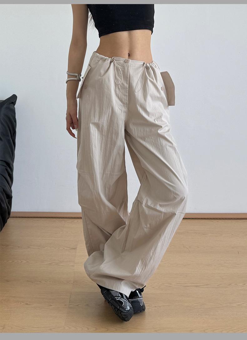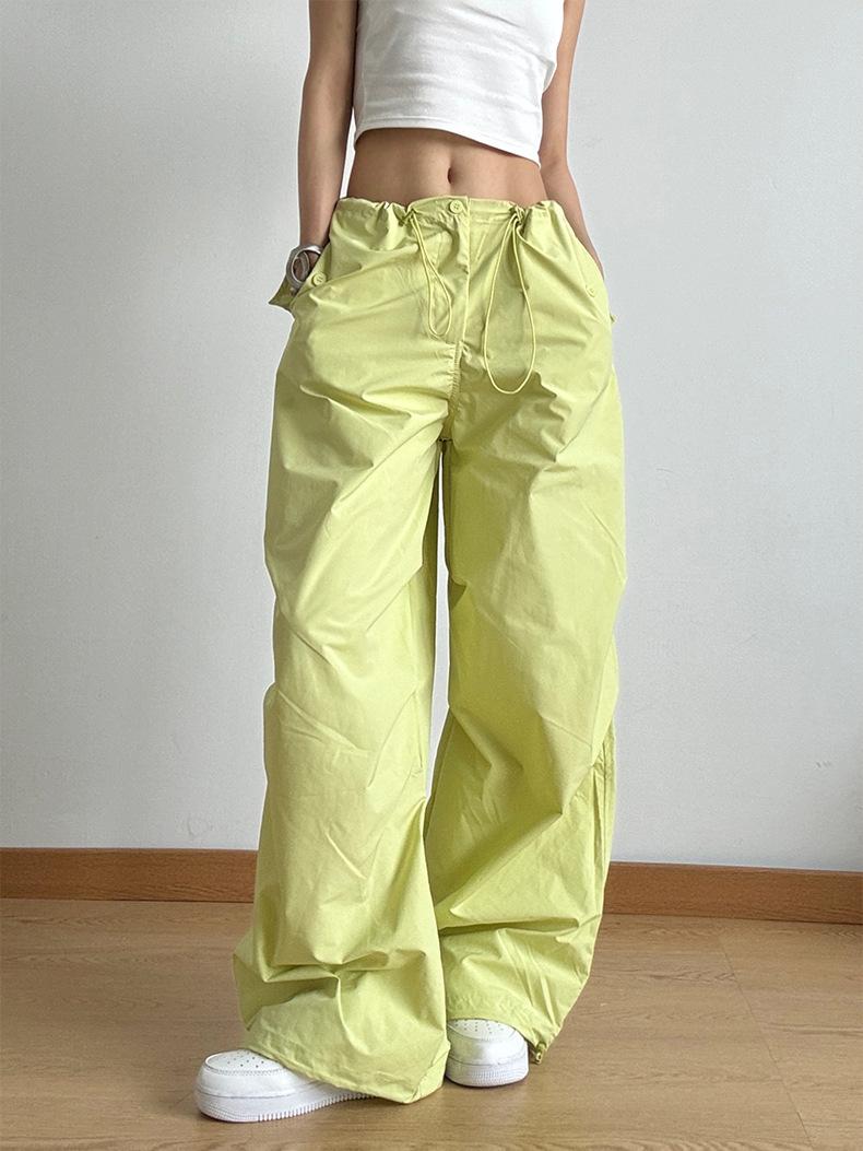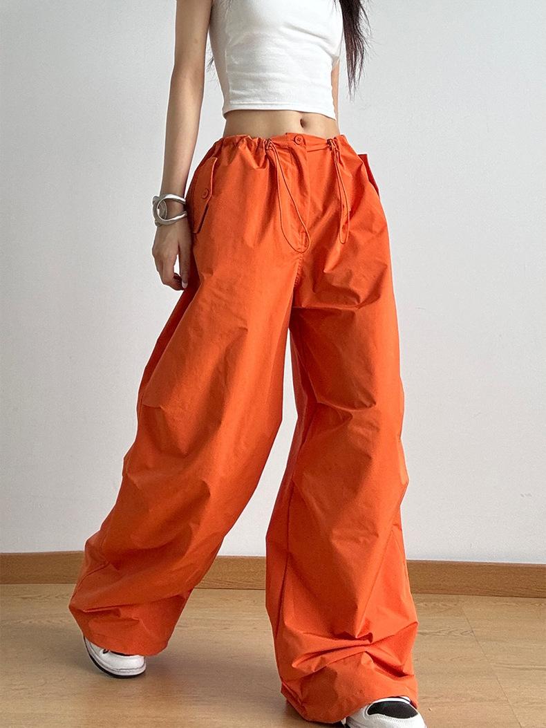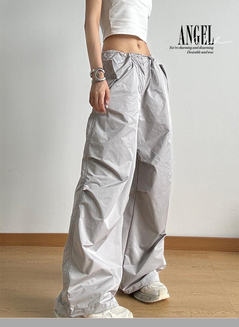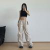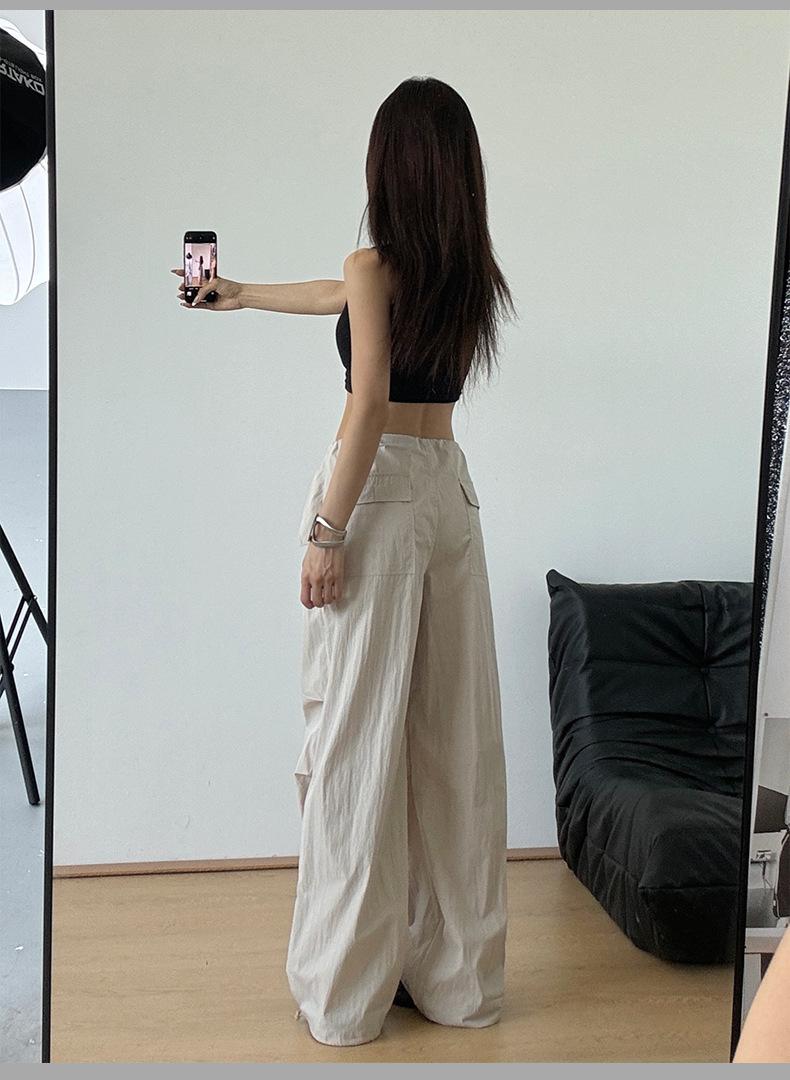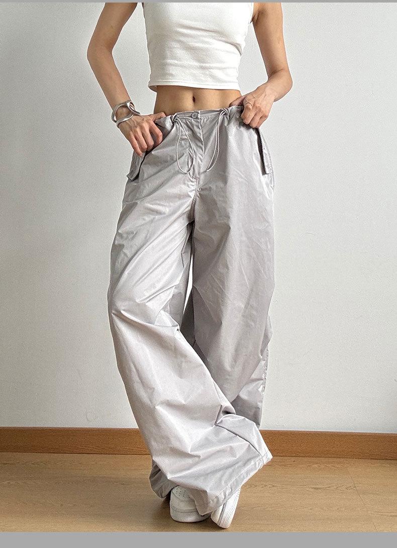 Pantalones Cargo Paracaídas Grises para Mujer Verano Delgados 2024 Nuevos Deportivos Americanos Rectos de Secado Rápido Sueltos de Pierna Ancha
