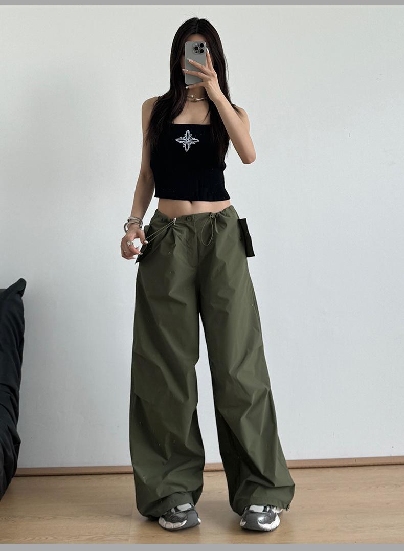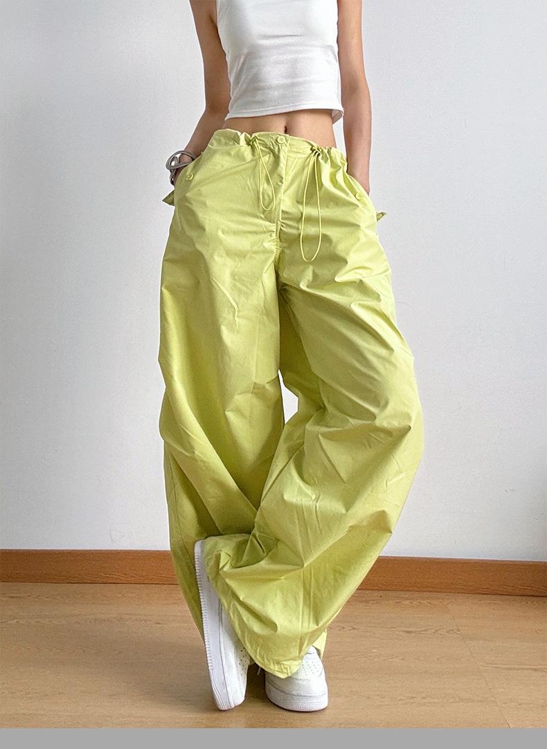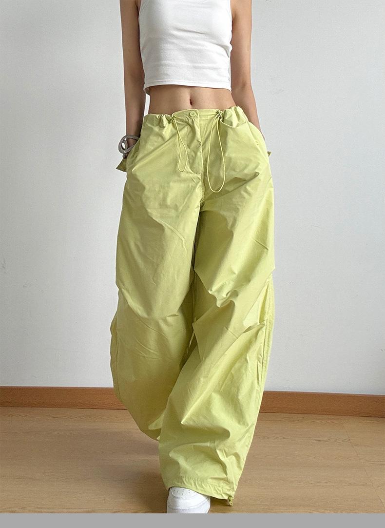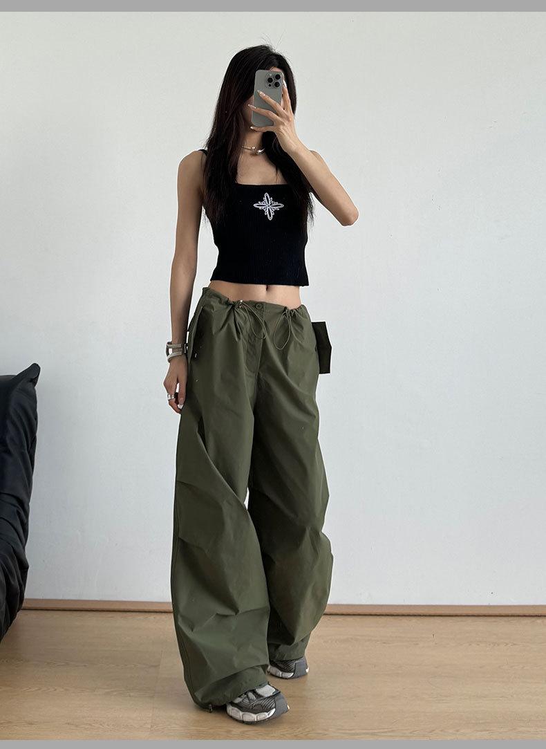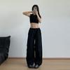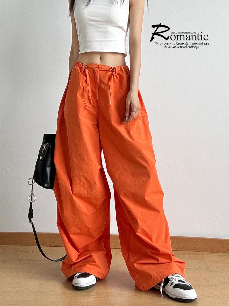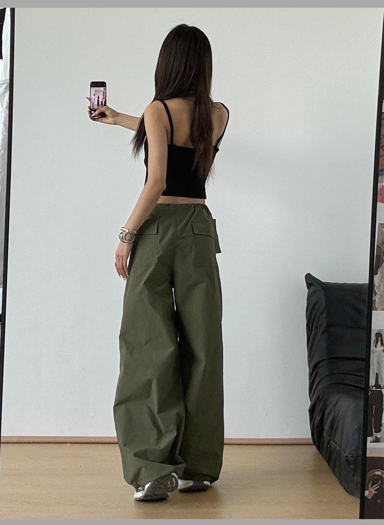 Pantalones Cargo Paracaídas Grises para Mujer Verano Delgados 2024 Nuevos Deportivos Americanos Rectos de Secado Rápido Sueltos de Pierna Ancha