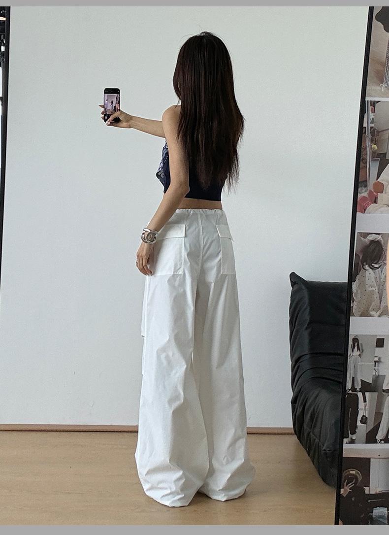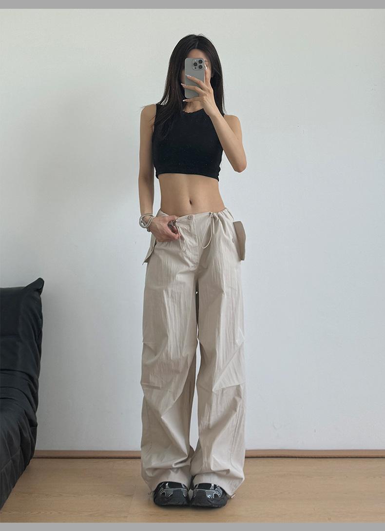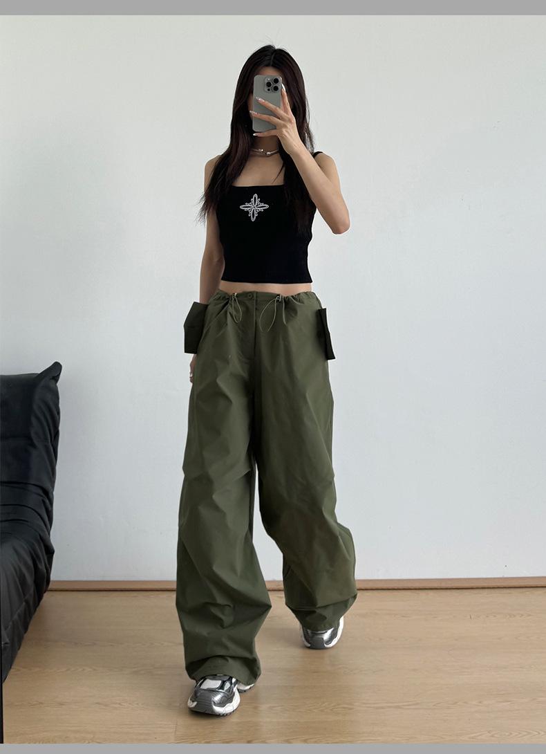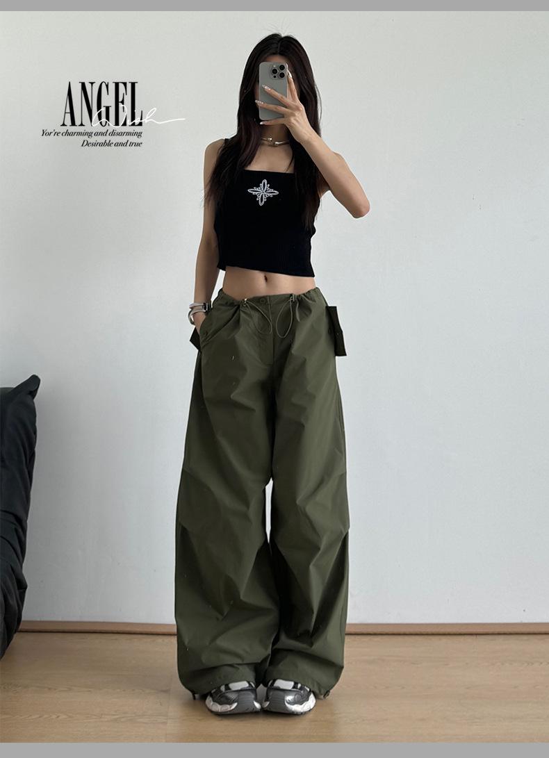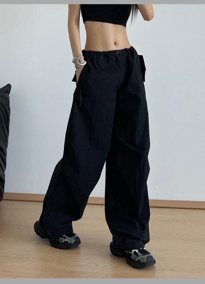 Pantalones Cargo Paracaídas Grises para Mujer Verano Delgados 2024 Nuevos Deportivos Americanos Rectos de Secado Rápido Sueltos de Pierna Ancha
