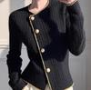 Chaqueta tipo cárdigan con botones sencillos y cuello redondo de estilo coreano para mujer, otoño e invierno 2024, elegante y antiedad.