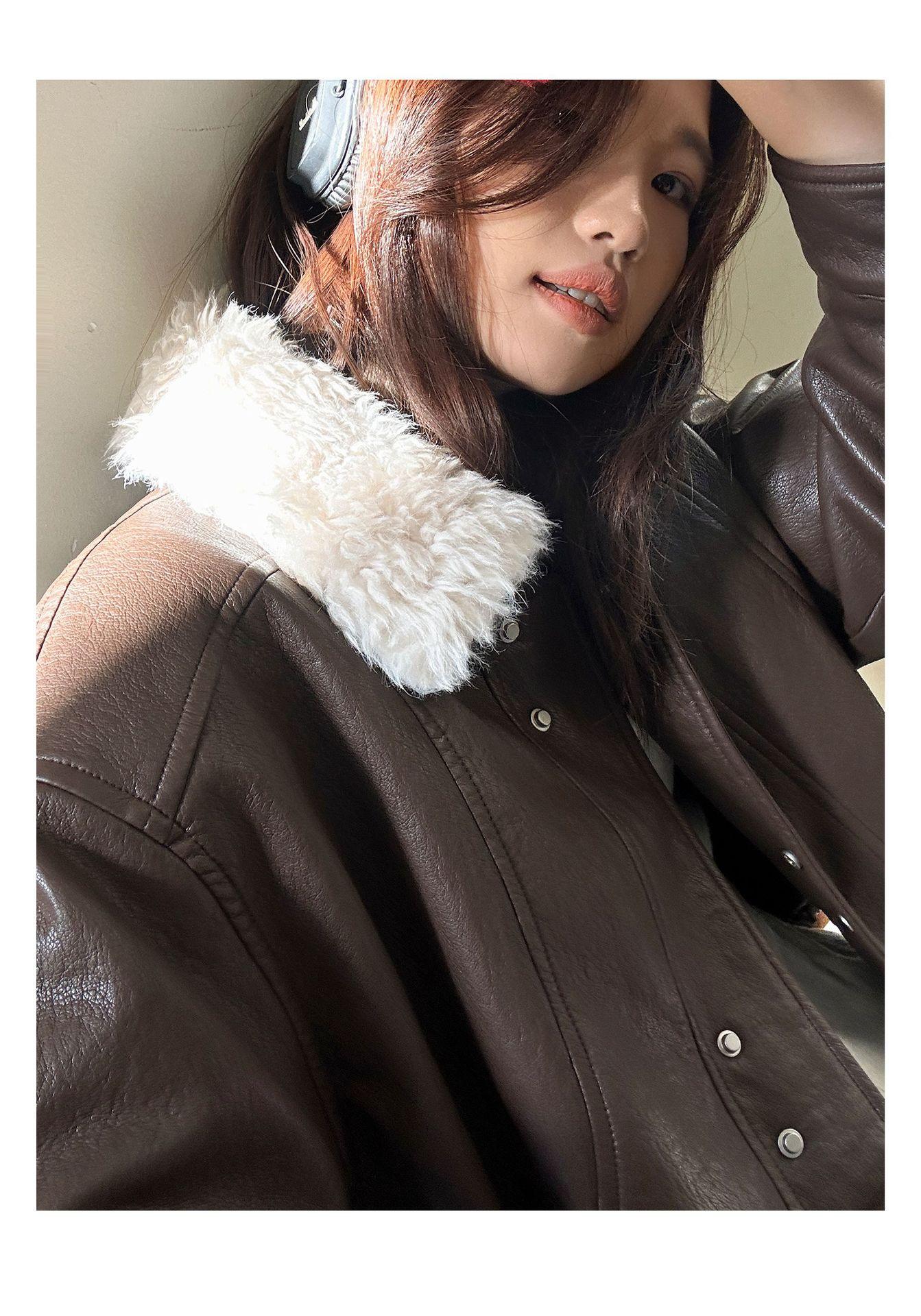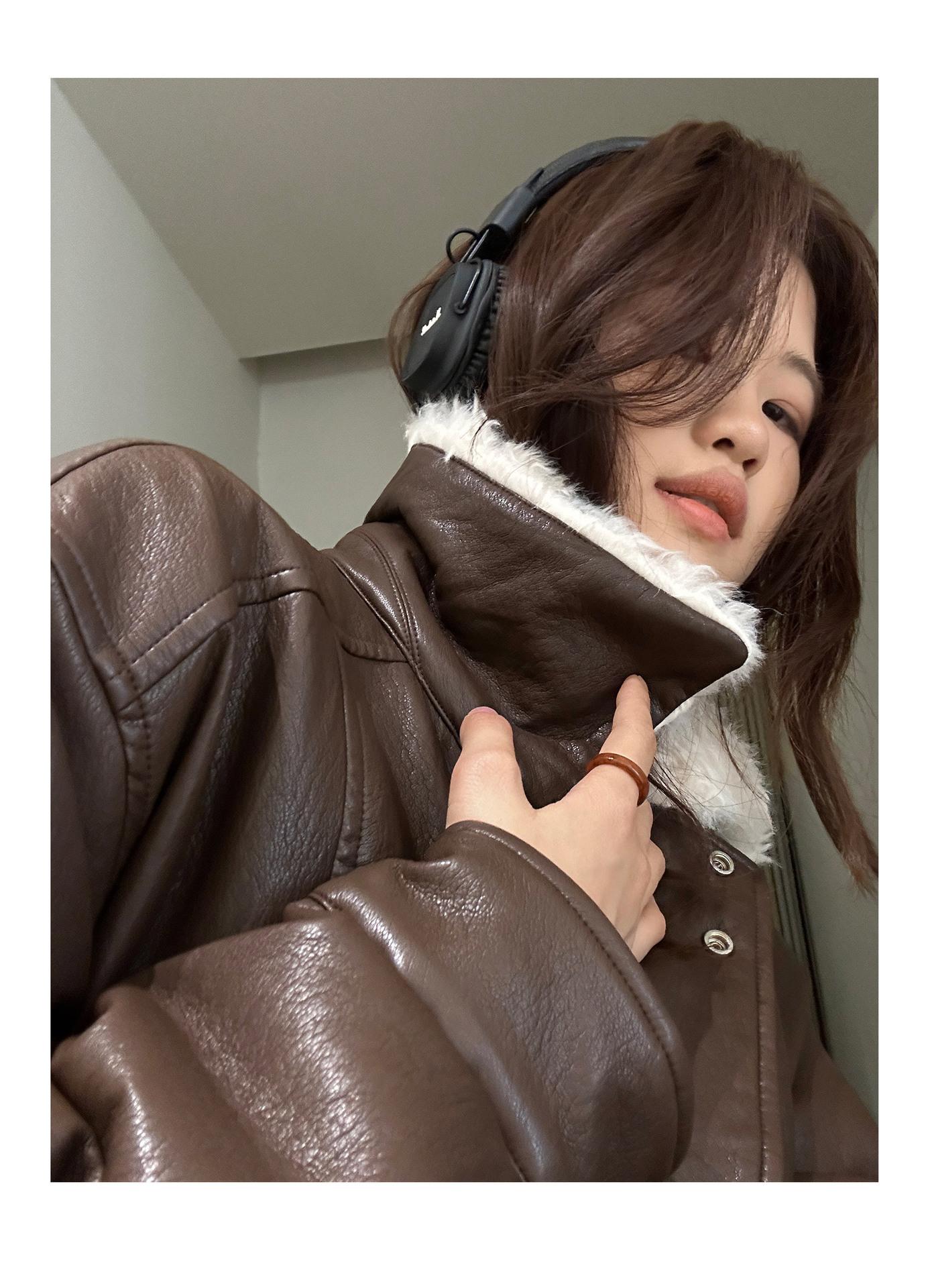 Abrigo de piel de solapa retro de alta gama para mujer, nuevo abrigo corto de felpa holgado y a juego para invierno.