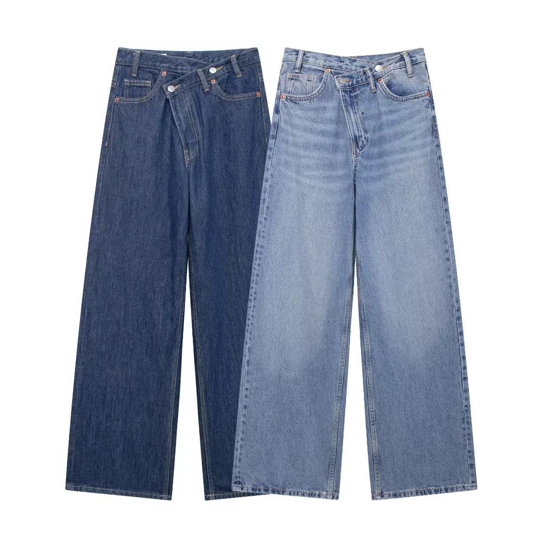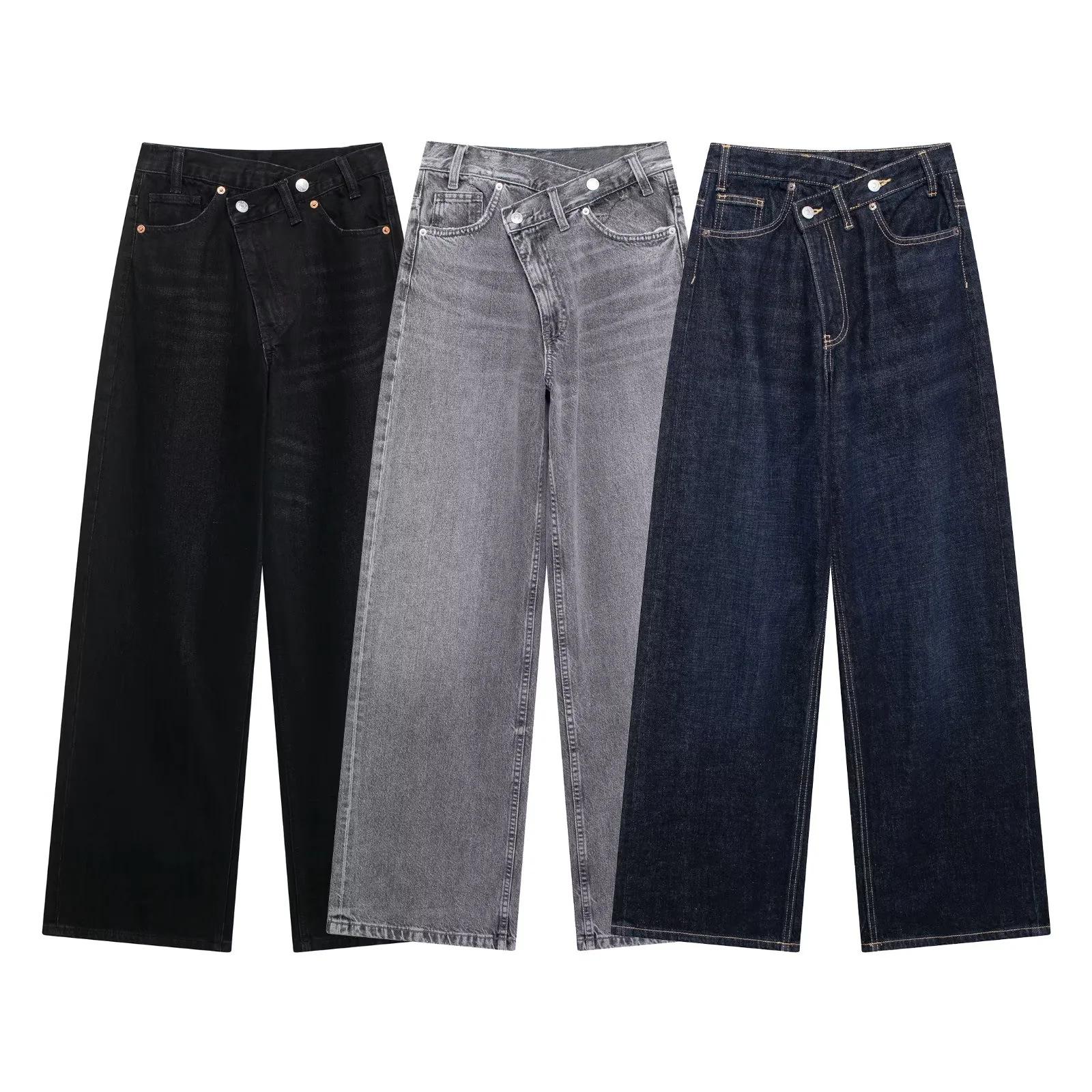 Ropa Europea y Americana Transfronteriza Aliexpress Popular Moda Casual Versátil para Mujer Pantalones de Doble Botonadura de Pierna Ancha