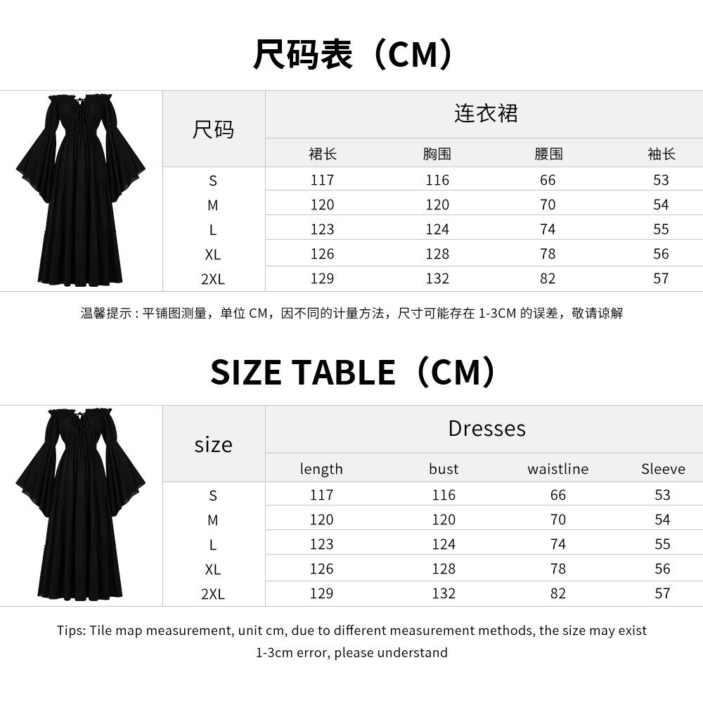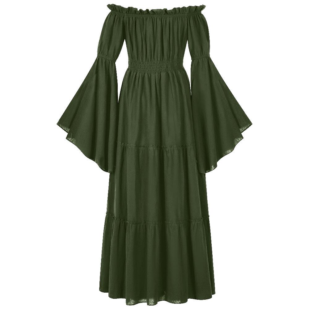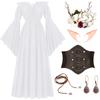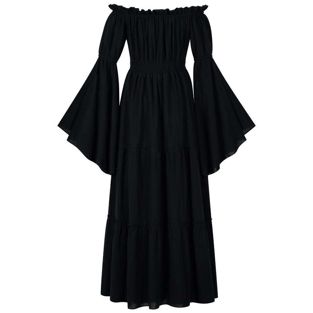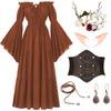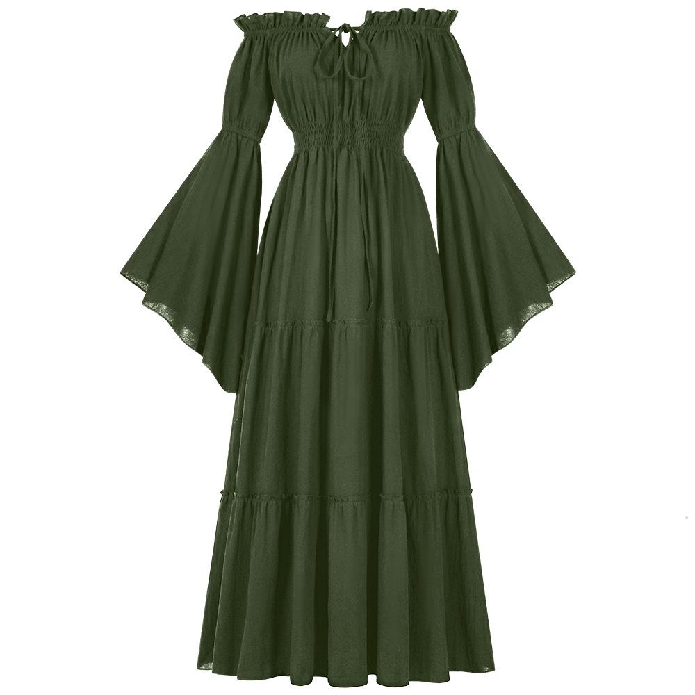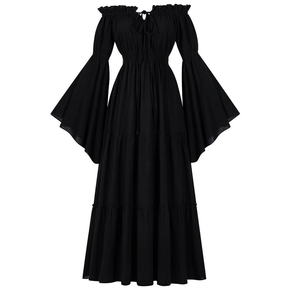 Vestido de Mujer Medieval Retro de Corte de Halloween con Encaje de Cordones en la Cintura y Manga Trompeta Vestido de Hombro Victoria