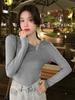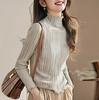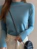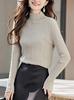 Camisa básica de manga larga con cuello de oreja para mujer, primavera, otoño e invierno, 2025, con un top de punto de cuello medio alto, ajustado, elegante y a la moda.