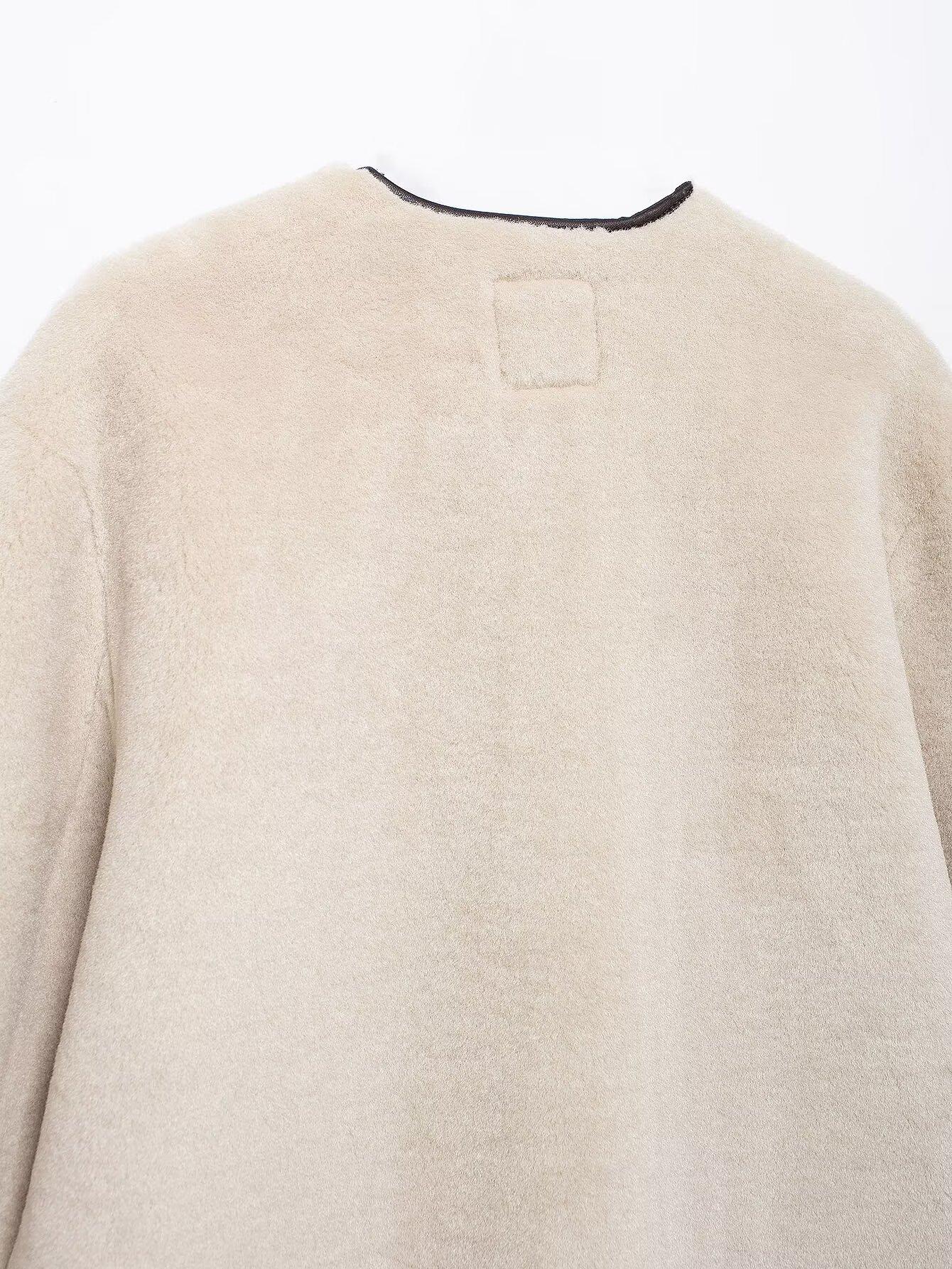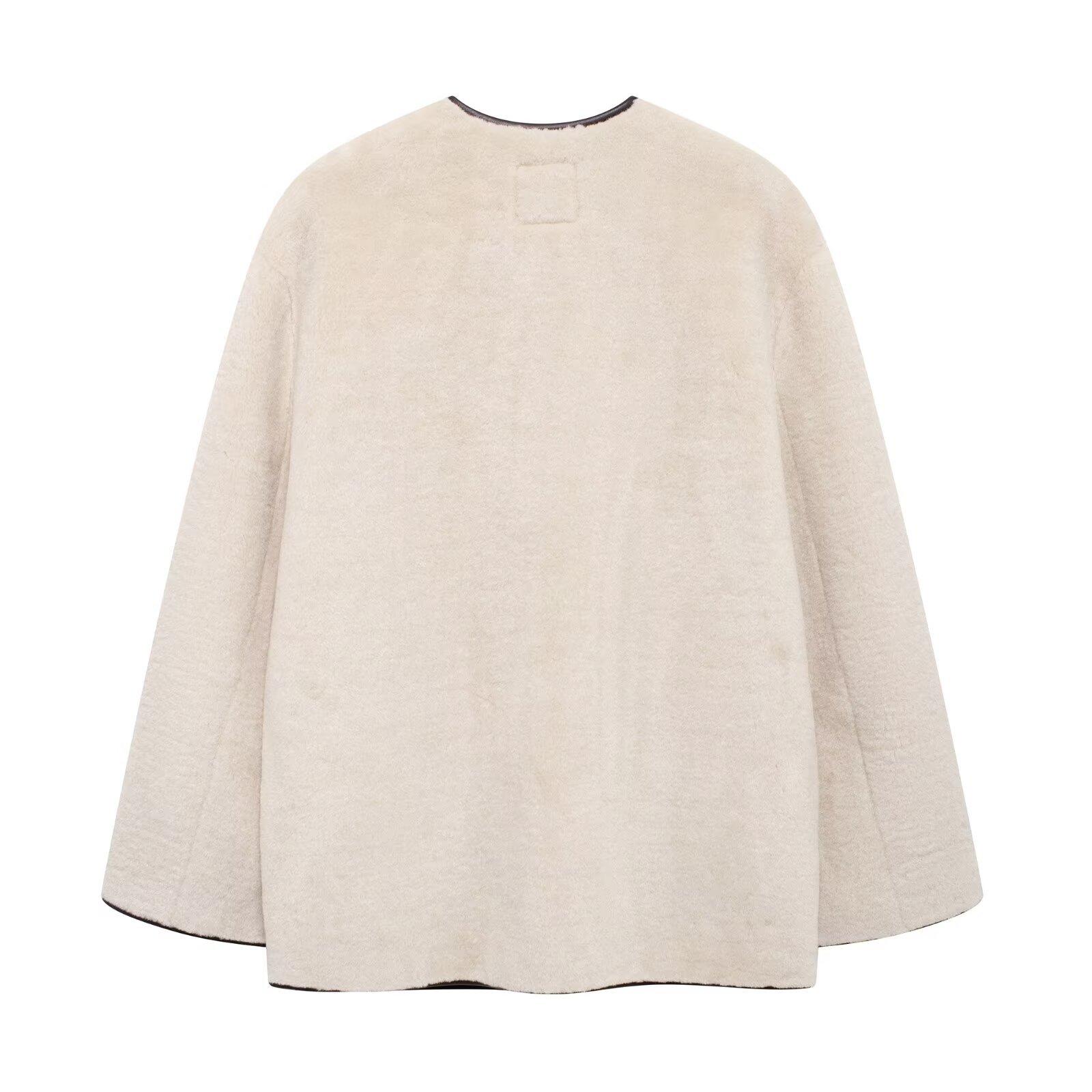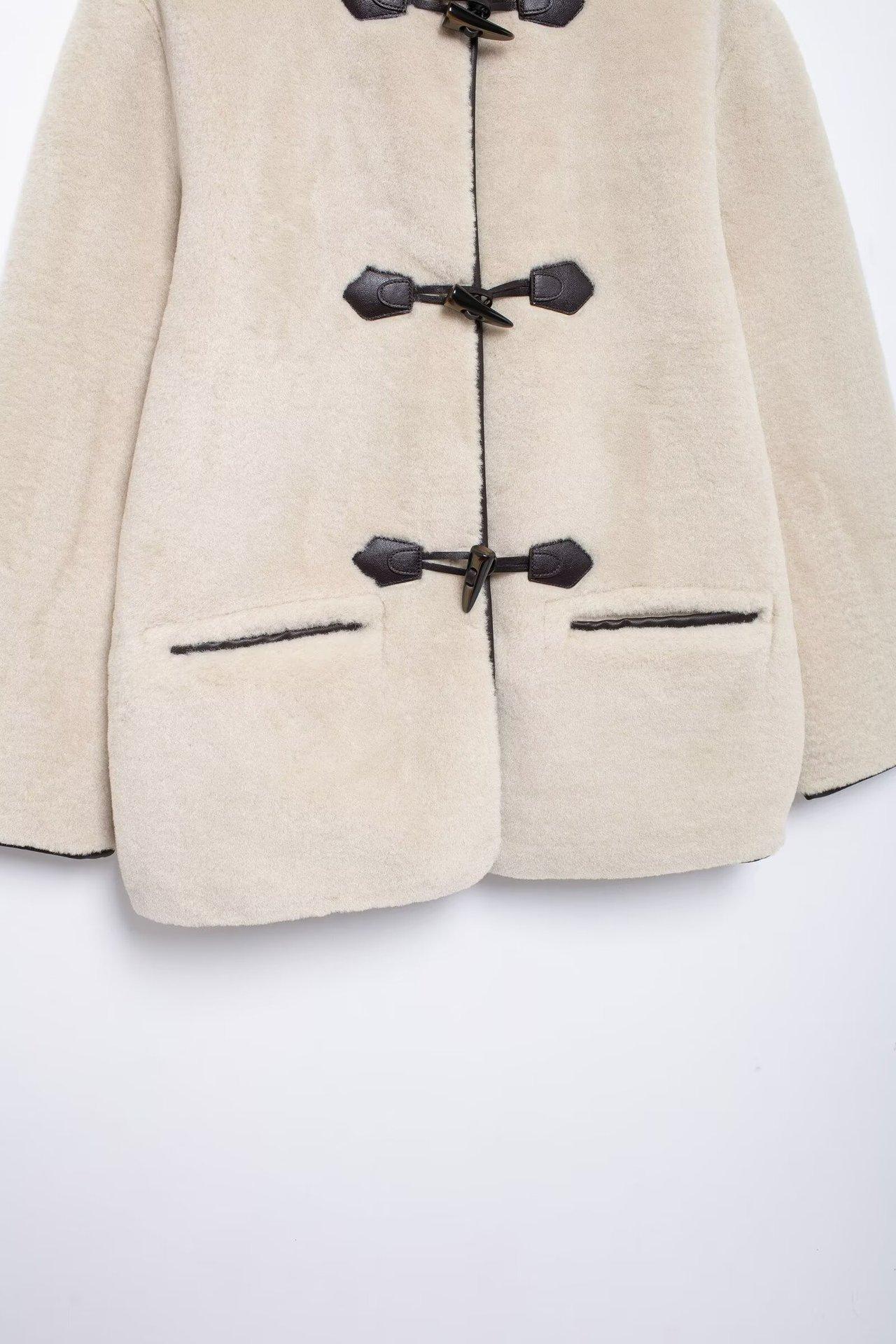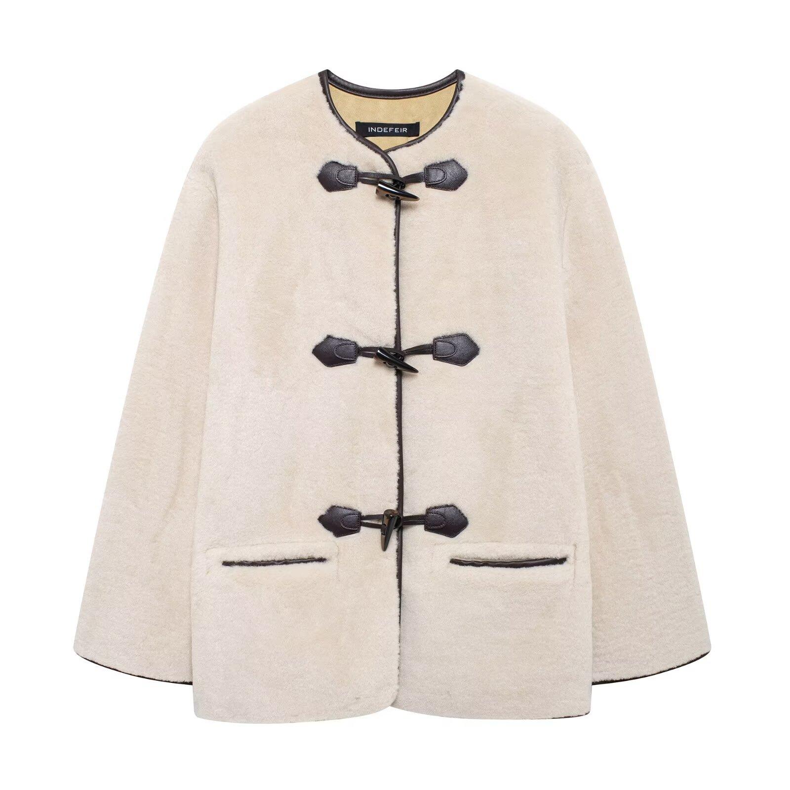 Abrigo con efecto de piel y hebilla de nudo de moda transfronteriza de otoño de estilo europeo y americano 2024, ropa de mujer de comercio exterior de Amazon