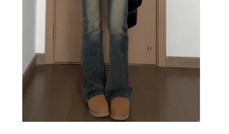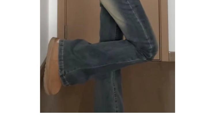 Talla grande Jeans Retro Microacampanados para Mujer Otoño Nuevo chica gordita Cintura Alta Elásticos Adelgazantes Combinan con todo Pantalones de Herradura para Barrer el Piso