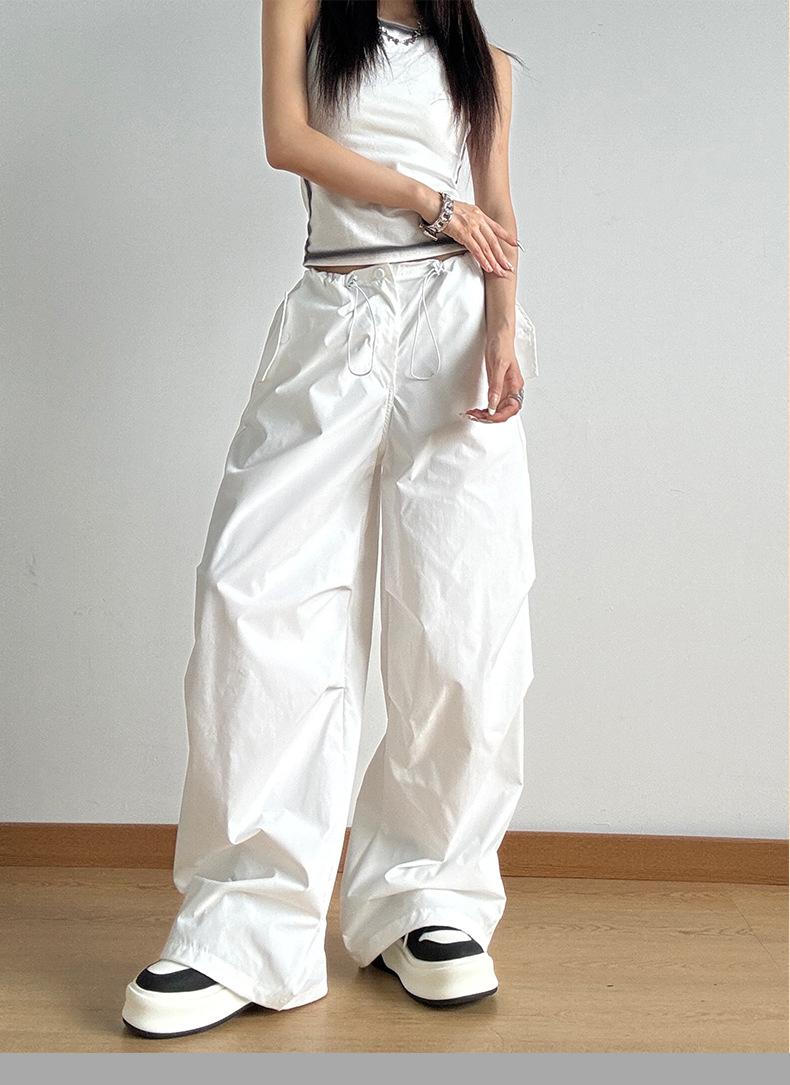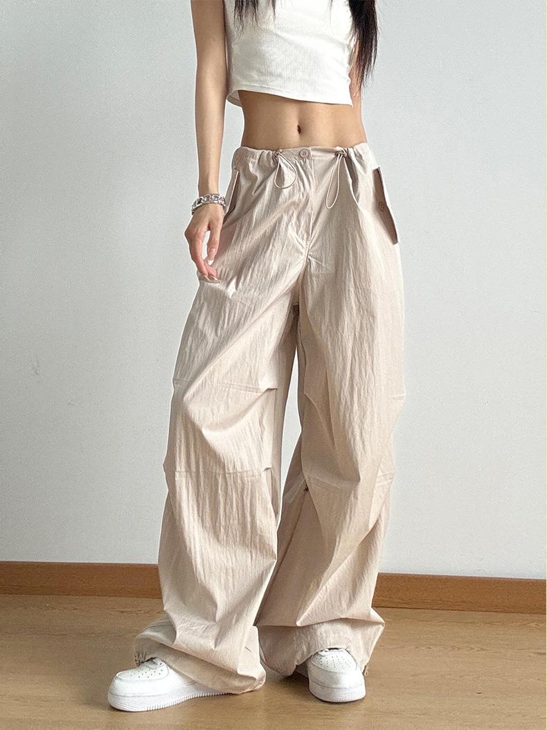 Pantalones casuales de aspecto ajustado, pantalones de verano, pantalones holgados de pierna ancha para mujer, monos de calle de primavera y otoño 2024, pantalones de moda de cintura alta
