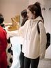 Sudadera pequeña con capucha estilo coreano, gruesa, forrada de vellón, de algodón, para mujer, nueva de otoño e invierno 2024, top holgado casual tipo jersey