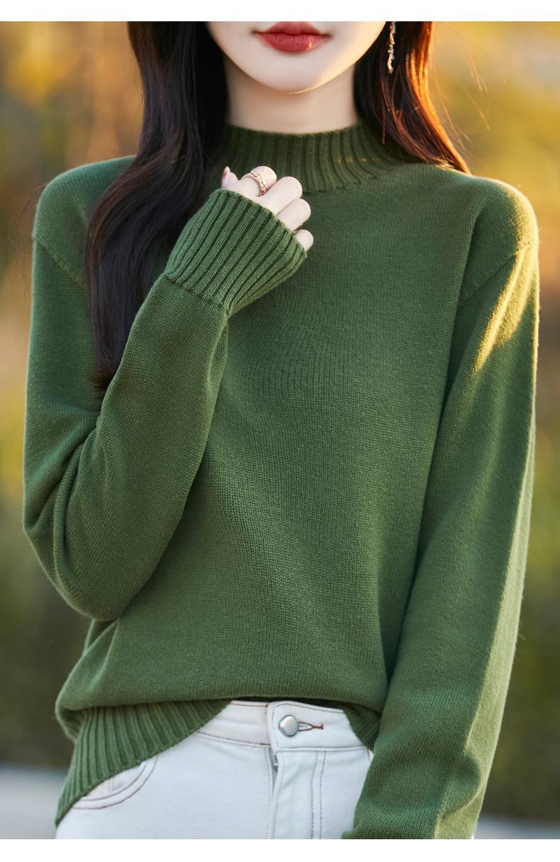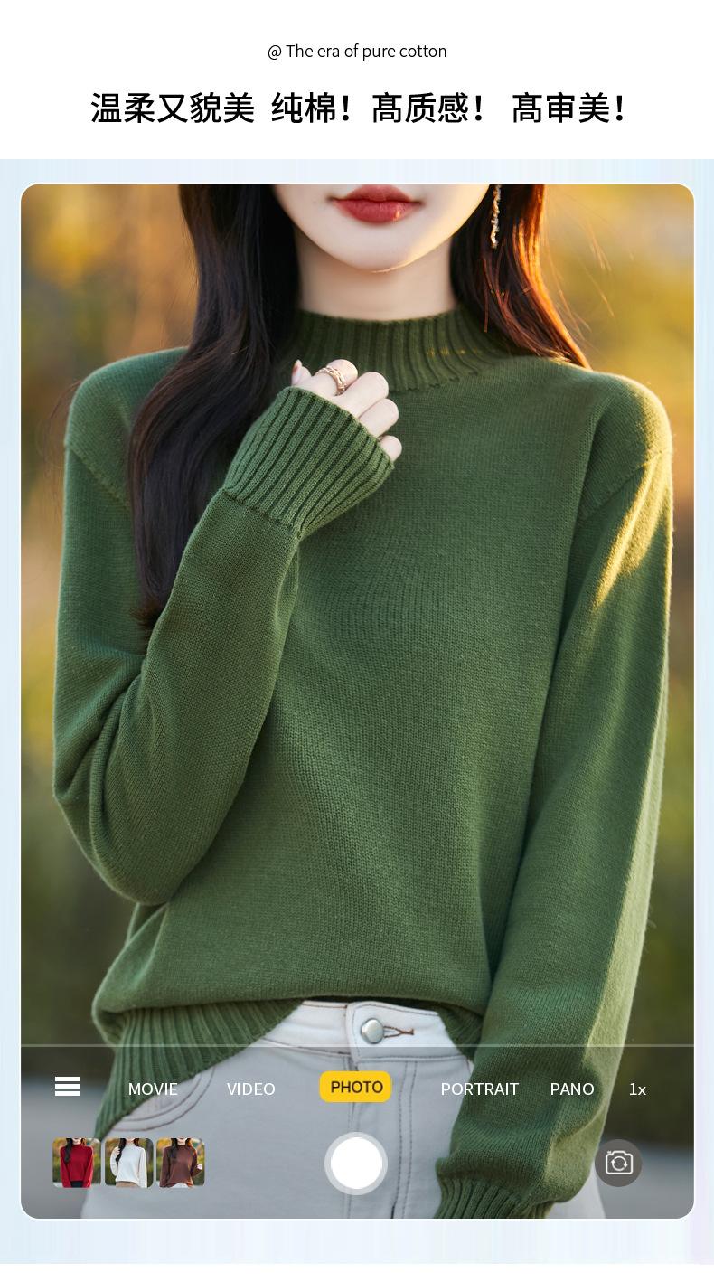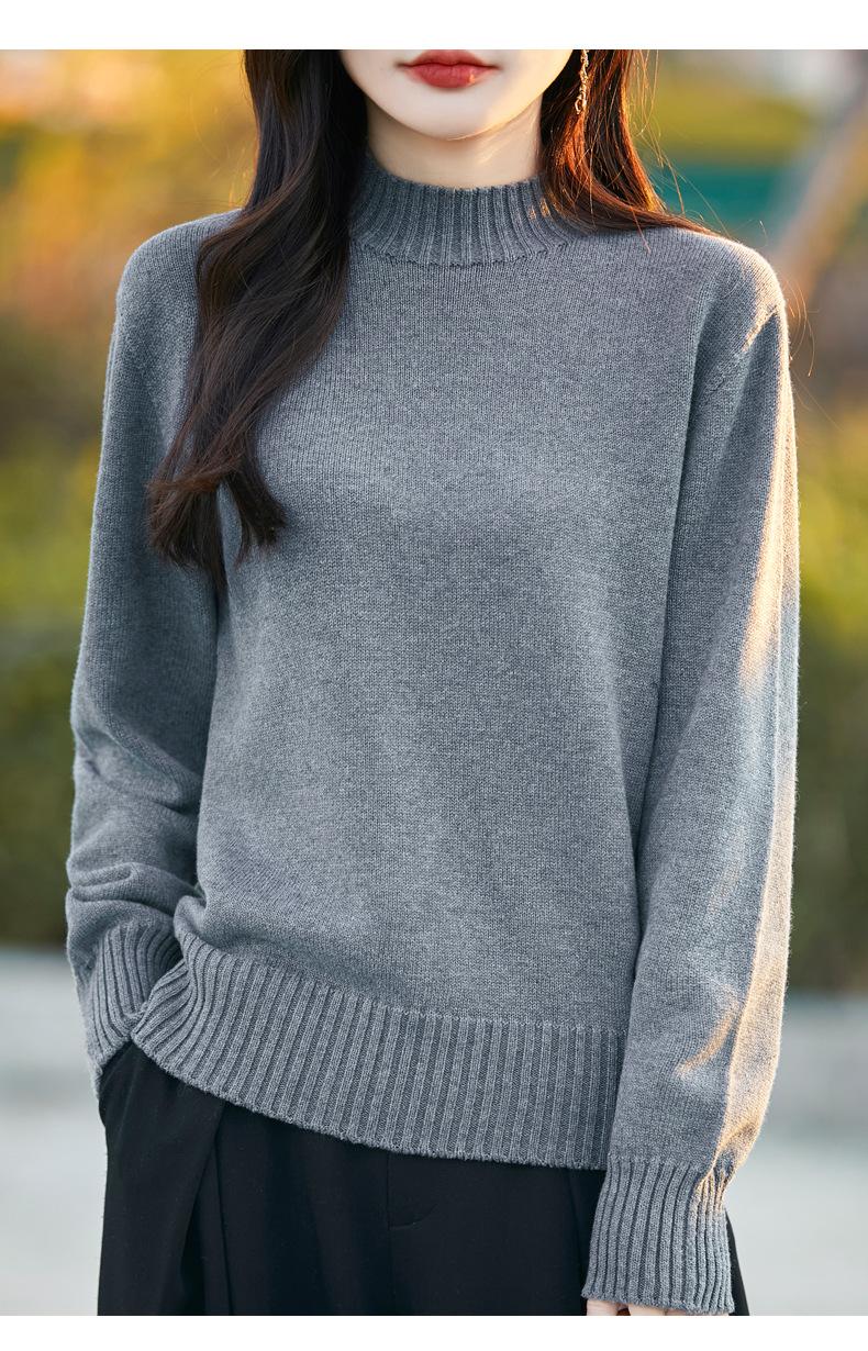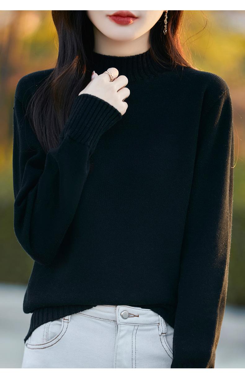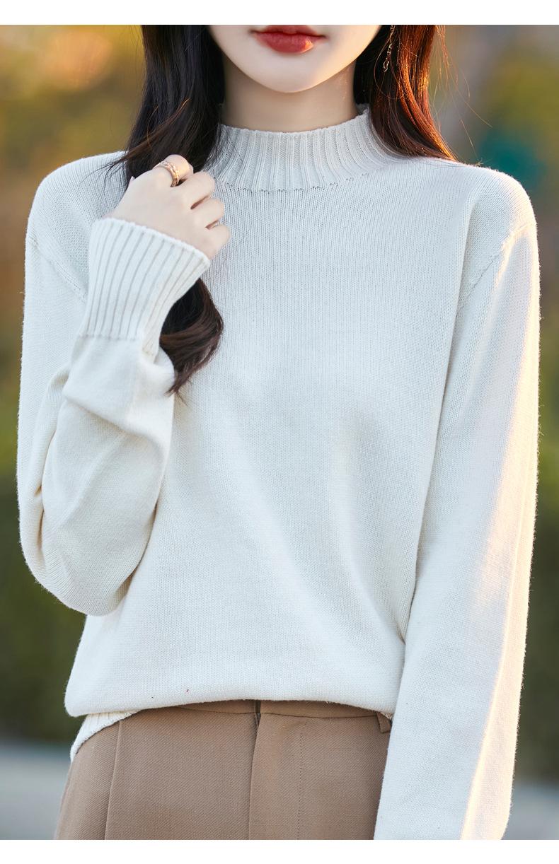 Ropa de Primera Línea Suéter Grueso para Mujer 2024 Otoño e Invierno Nuevo Suelto Combinable Algodón Cuello Medio Alto Camiseta Básica de Punto