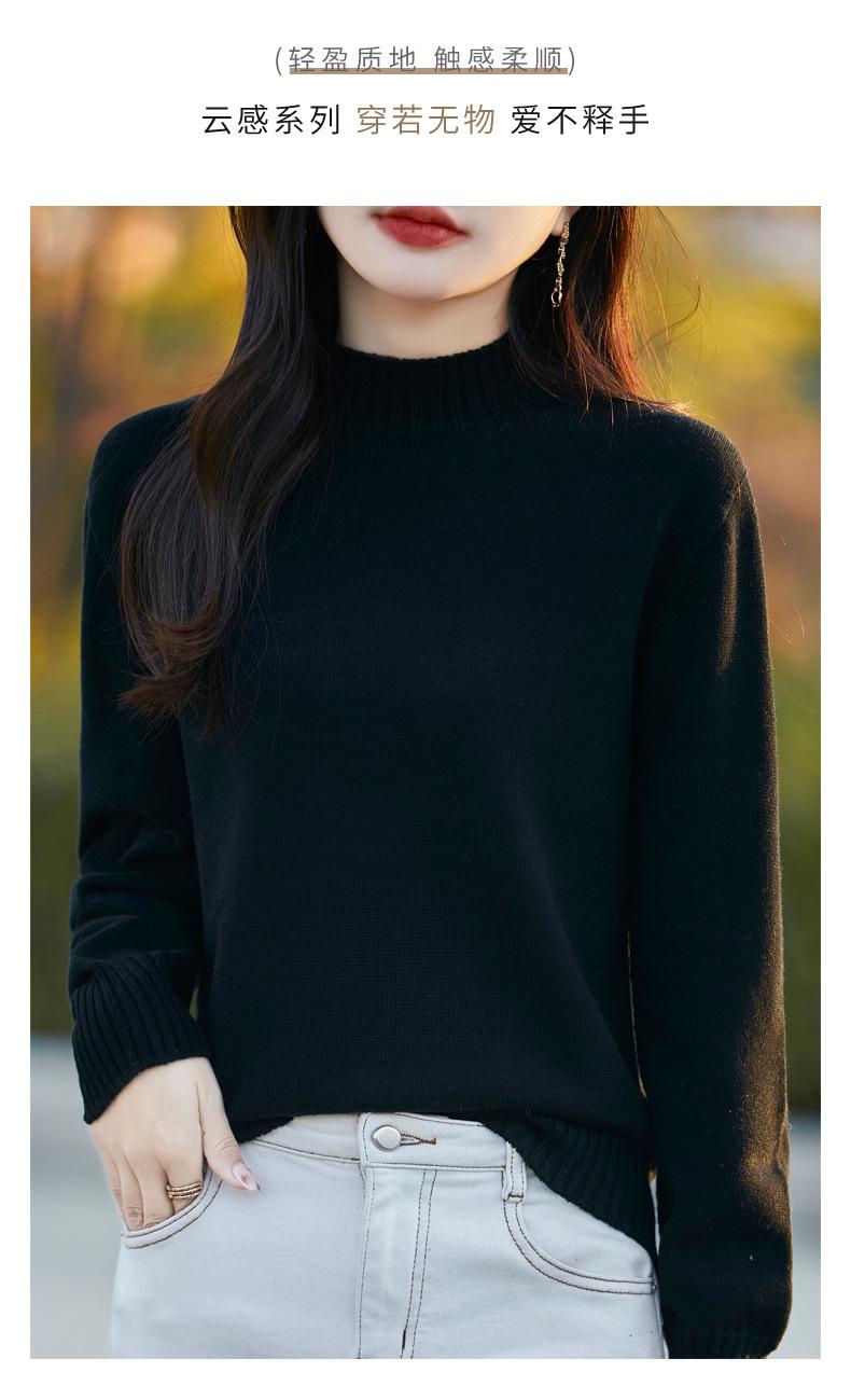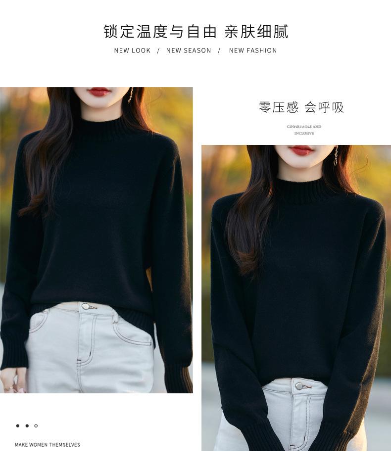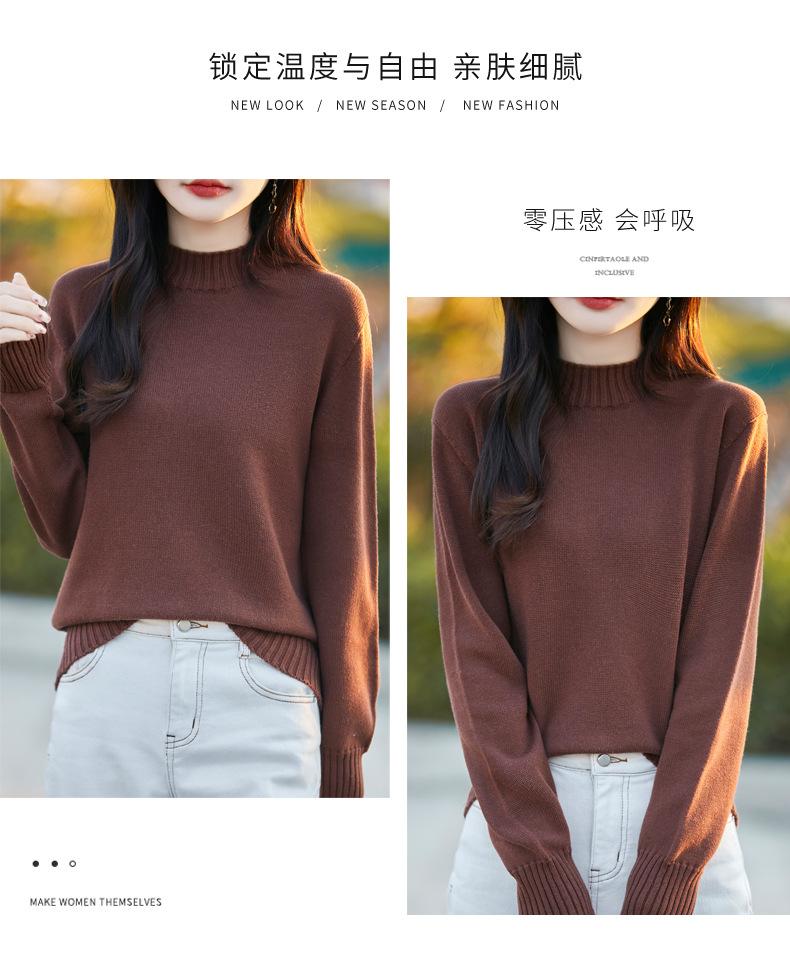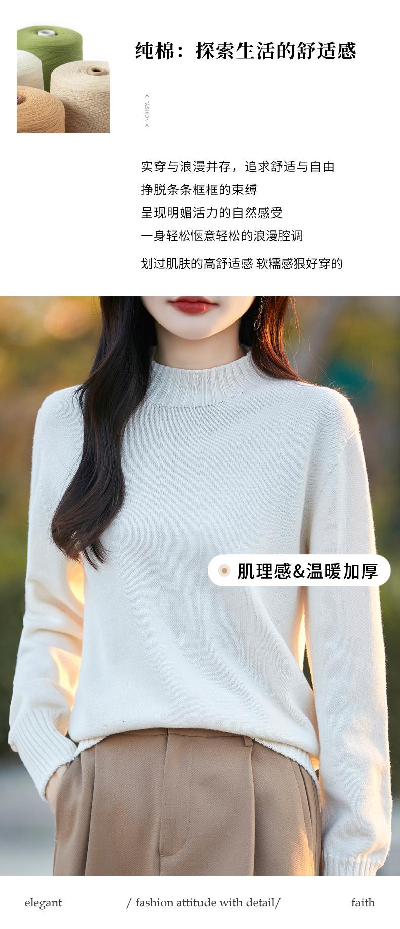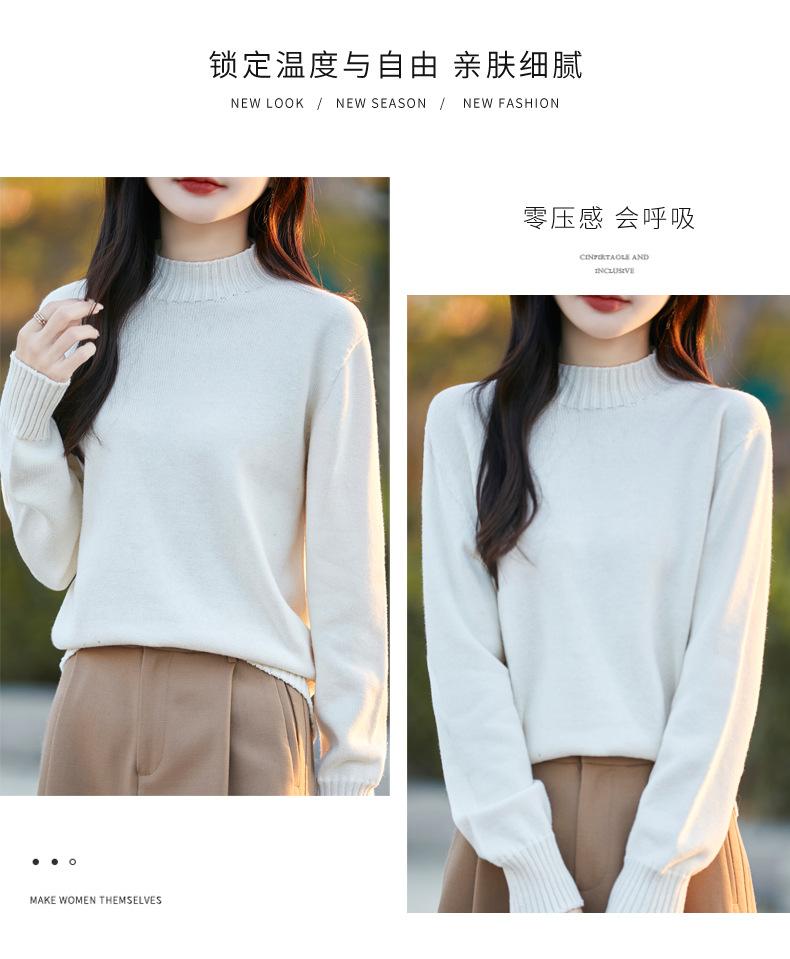 Ropa de Primera Línea Suéter Grueso para Mujer 2024 Otoño e Invierno Nuevo Suelto Combinable Algodón Cuello Medio Alto Camiseta Básica de Punto