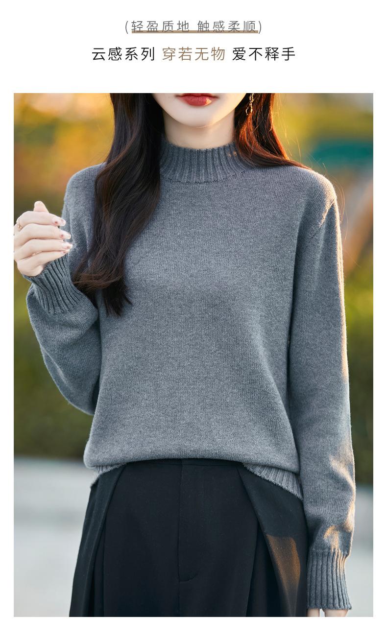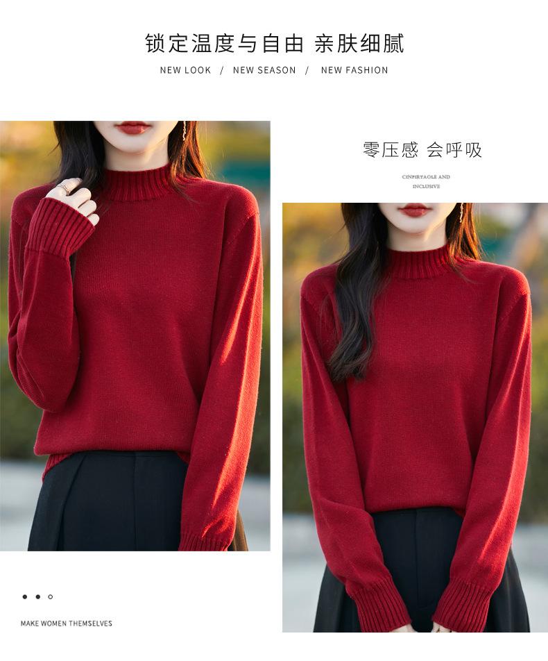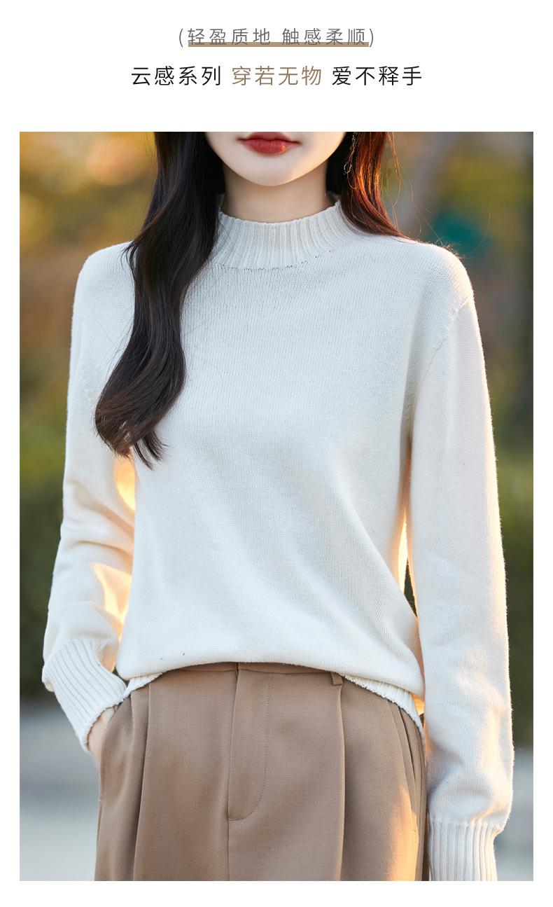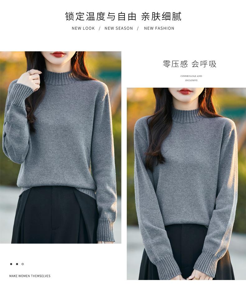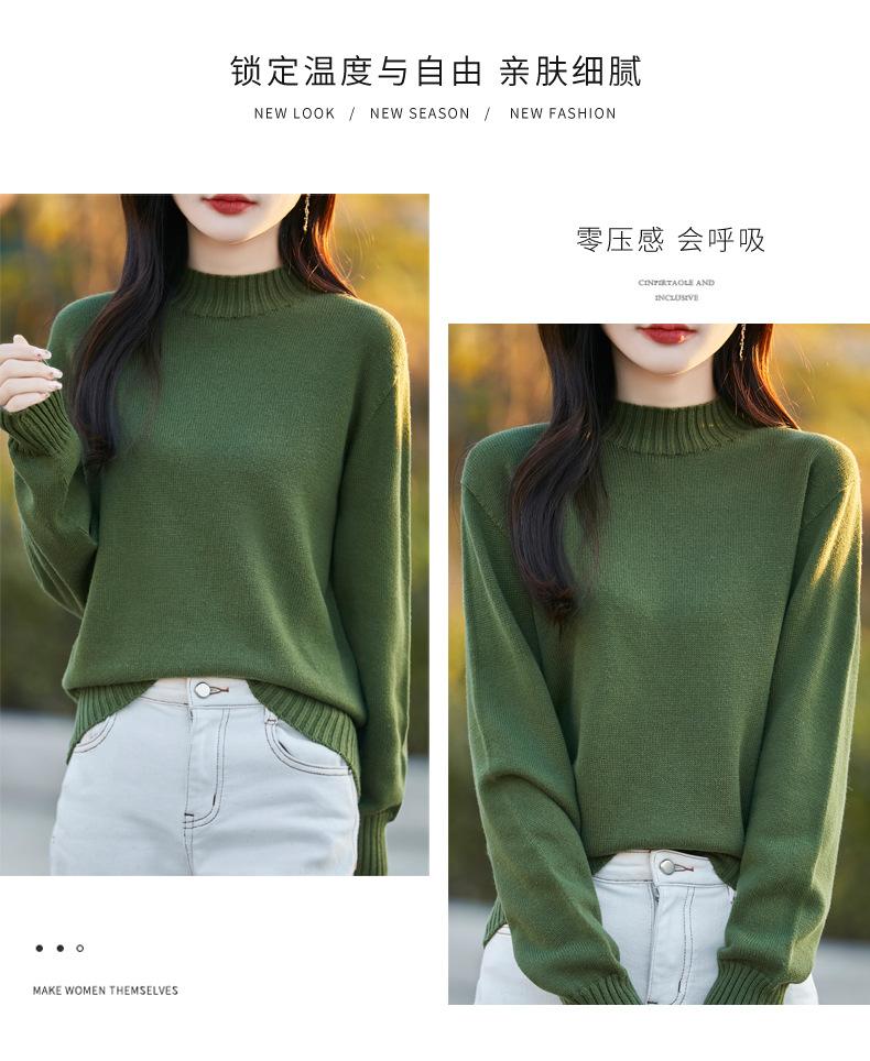Ropa de Primera Línea Suéter Grueso para Mujer 2024 Otoño e Invierno Nuevo Suelto Combinable Algodón Cuello Medio Alto Camiseta Básica de Punto