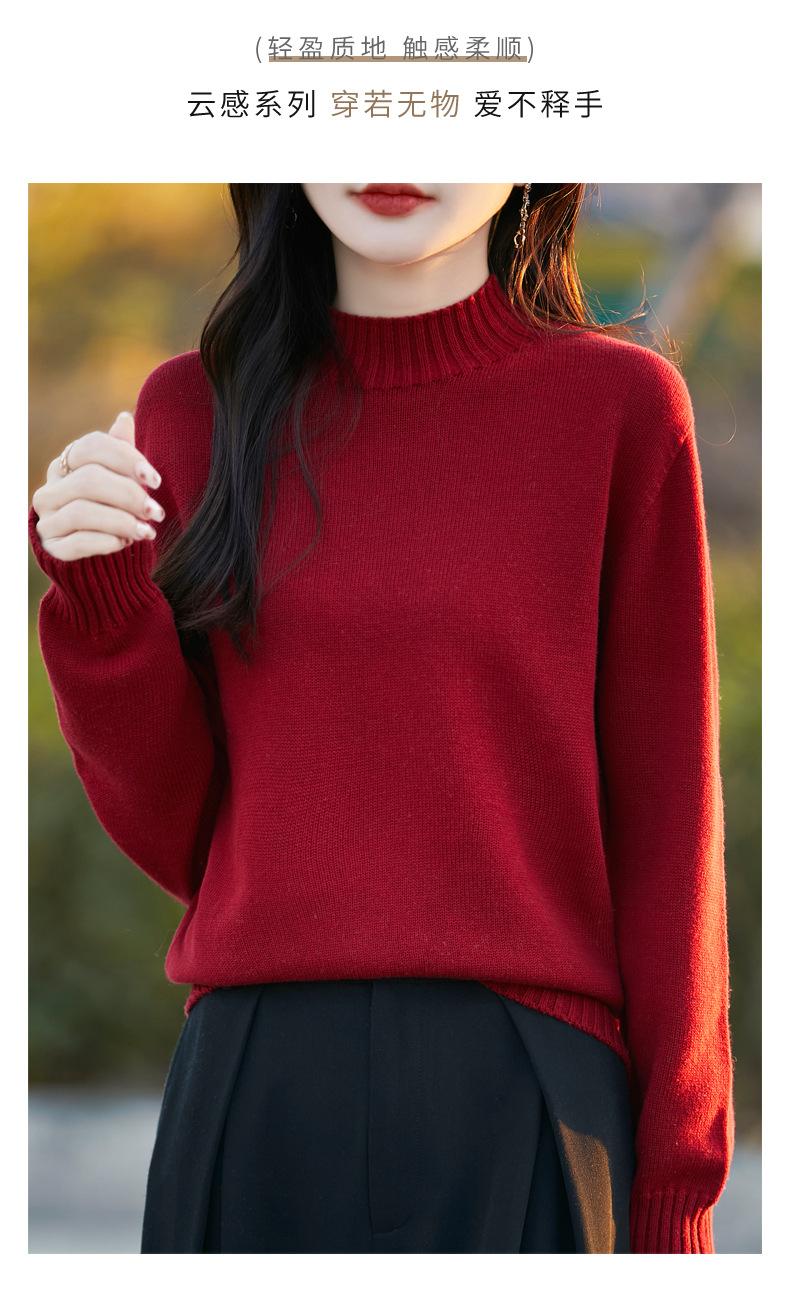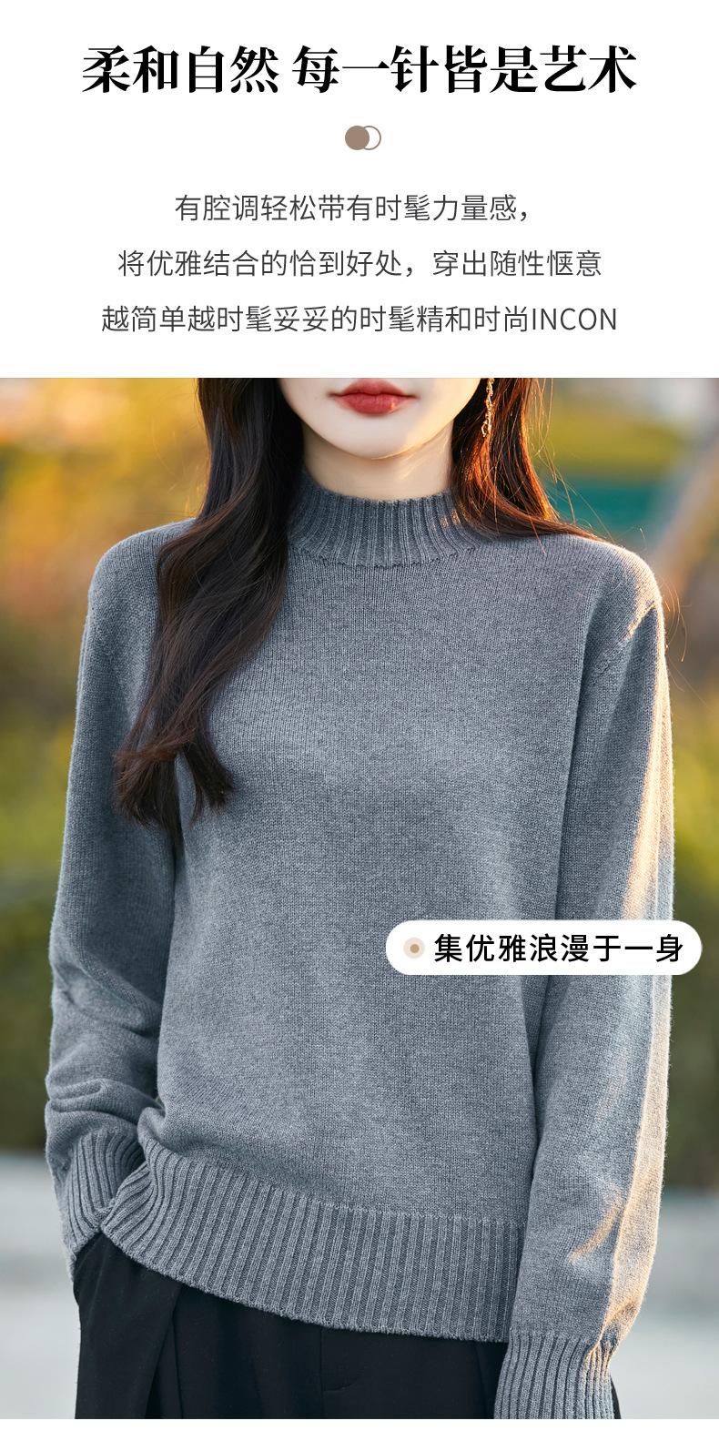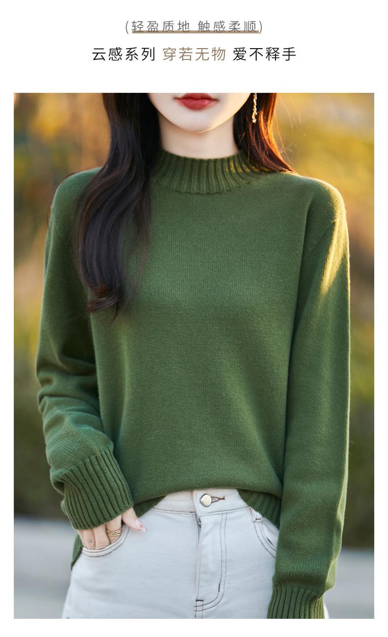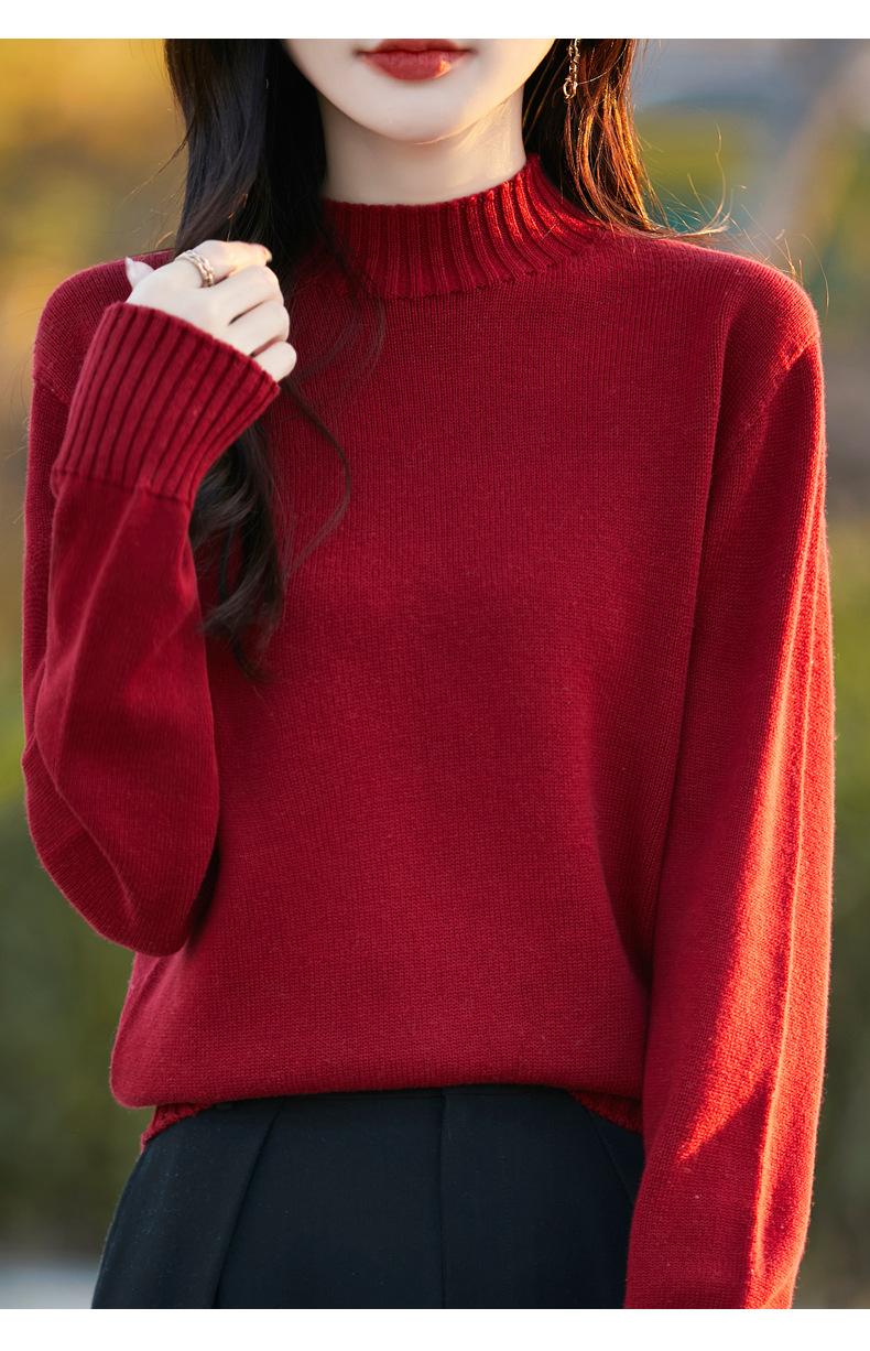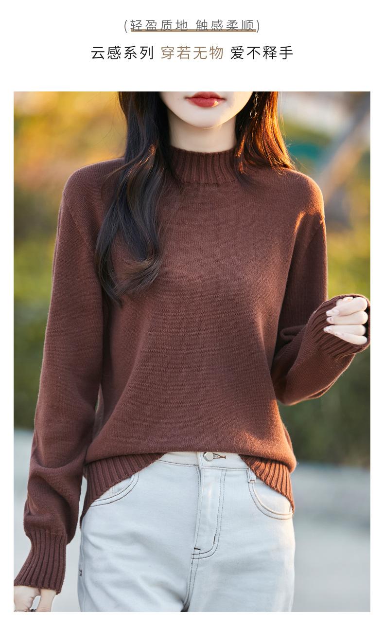 Ropa de Primera Línea Suéter Grueso para Mujer 2024 Otoño e Invierno Nuevo Suelto Combinable Algodón Cuello Medio Alto Camiseta Básica de Punto