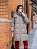 Chaqueta de plumón de ganso con temperamento para mujer, invierno 2024, nueva chaqueta de plumón Pinghu de tela larga y alta, nueva chaqueta de plumón de ganso estándar nacional 90 para mujer.