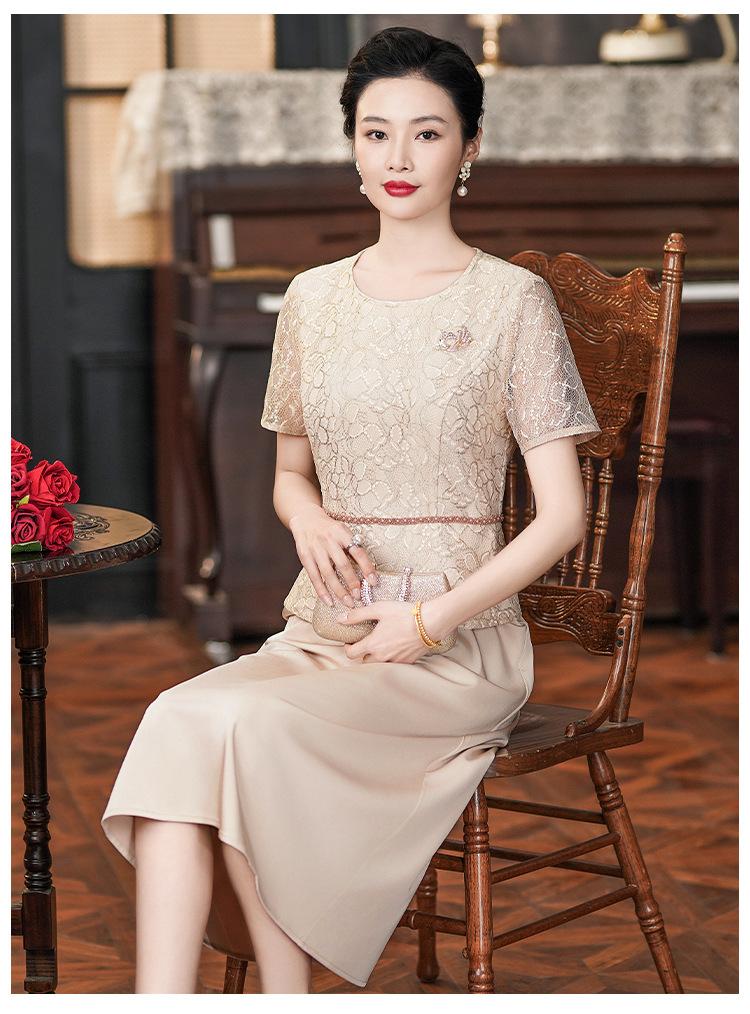 Vestido elegante de encaje de dos piezas para madre de la novia, color albaricoque, nuevo verano 2024