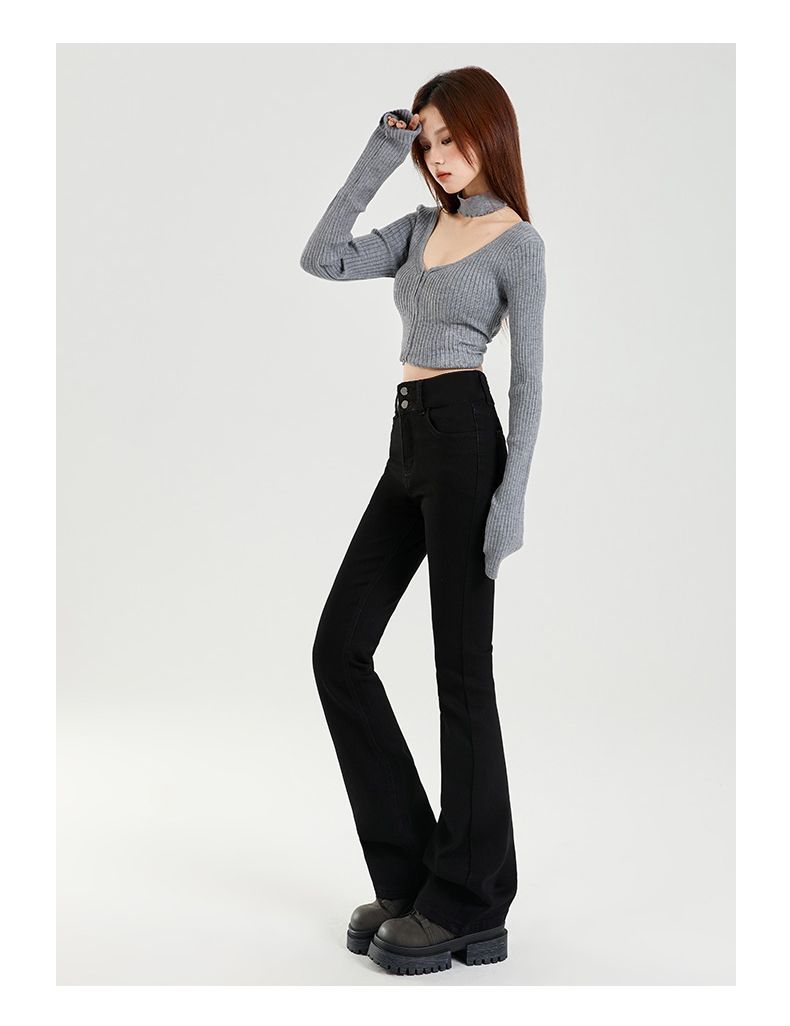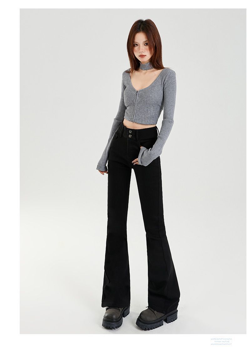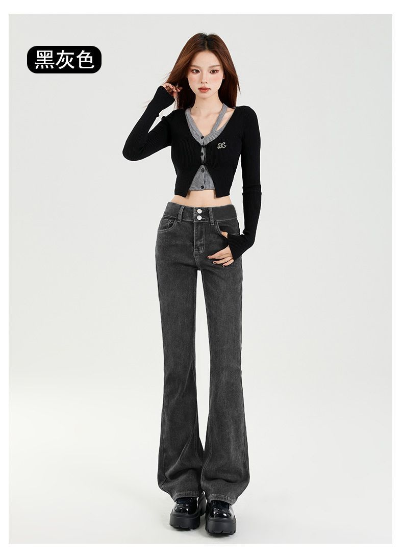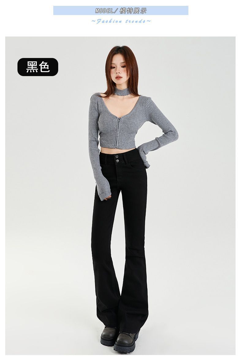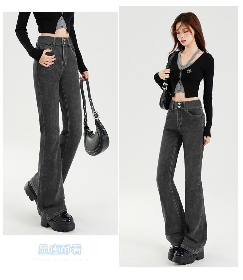 Pantalones vaqueros retro Micro La de estilo americano para mujer, novedad de otoño e invierno de 2024, pantalones acampanados elásticos de cintura alta y combinables.
