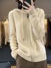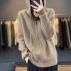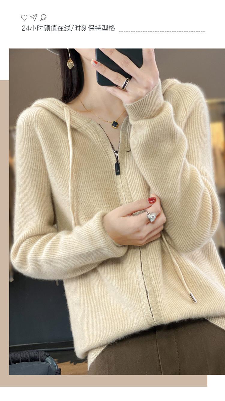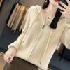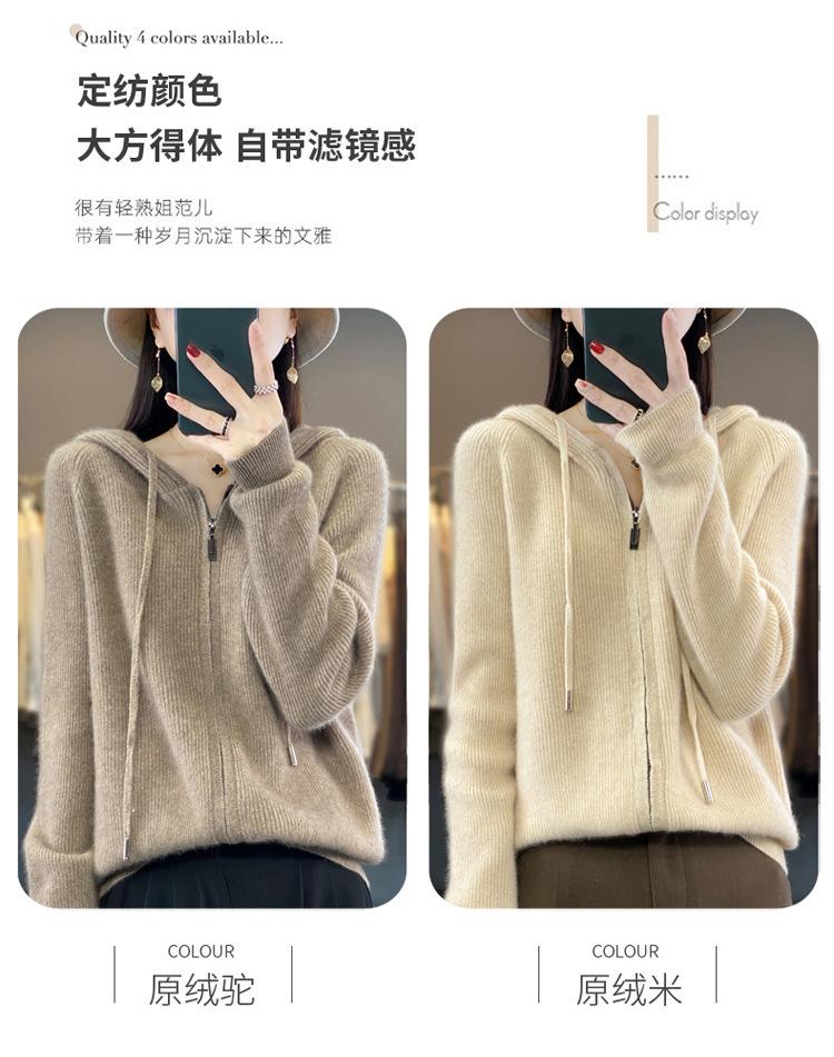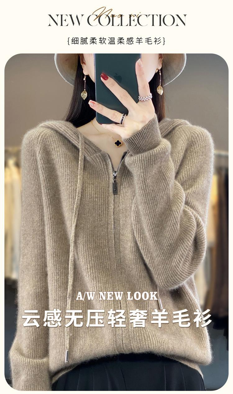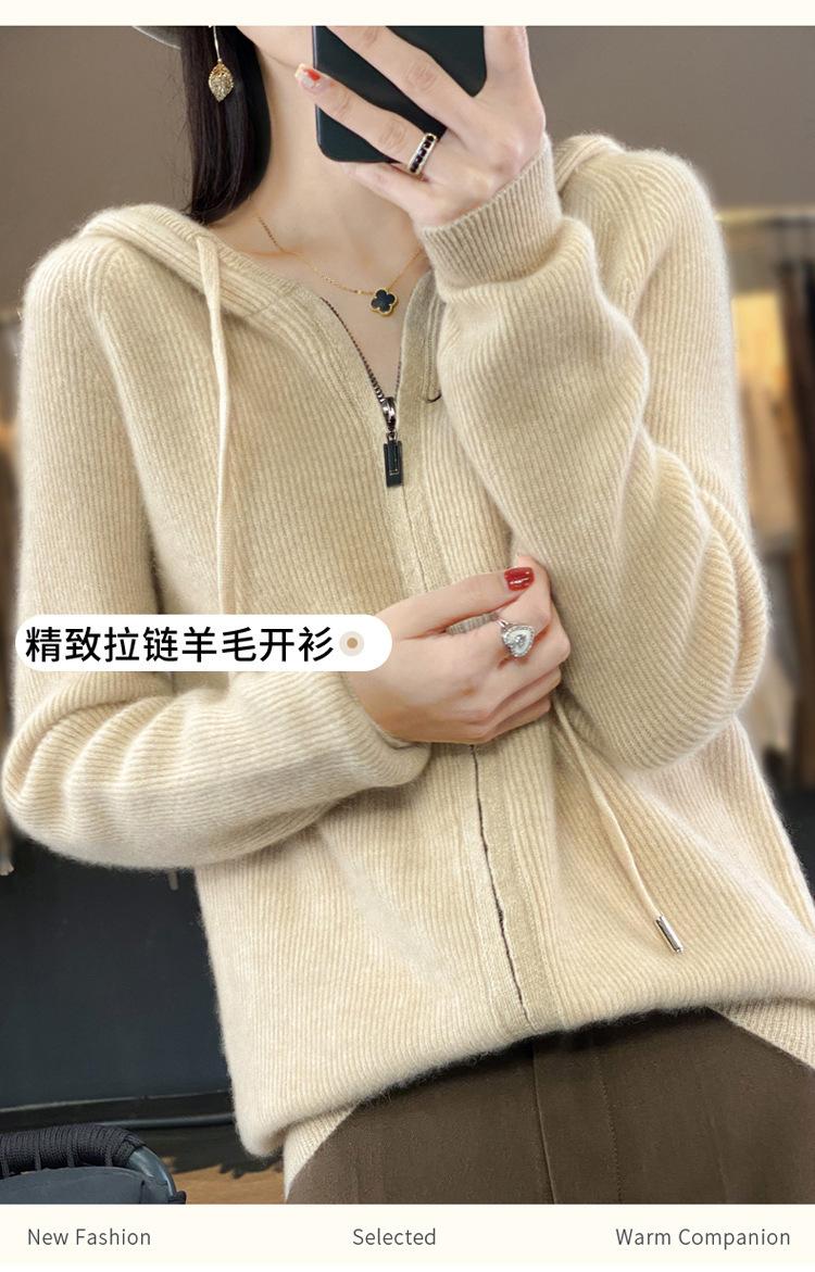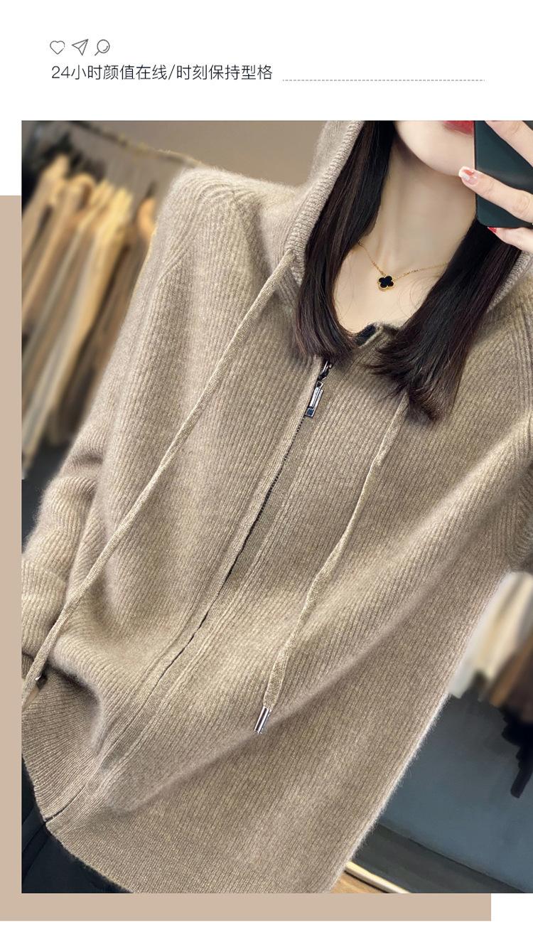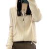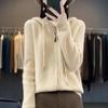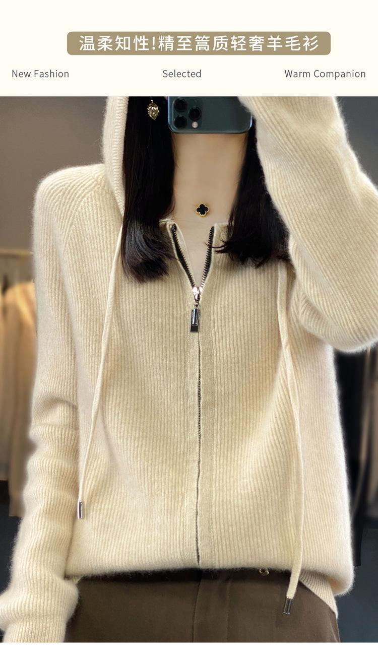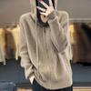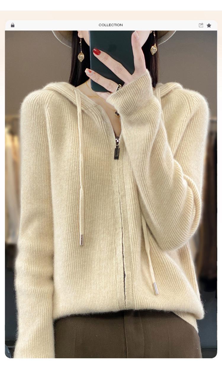 Cárdigan de lana nueva para otoño e invierno, suéter de punto con base de lana 100% pura para mujer, suéter de lana con capucha antiedad y cordón ajustable.