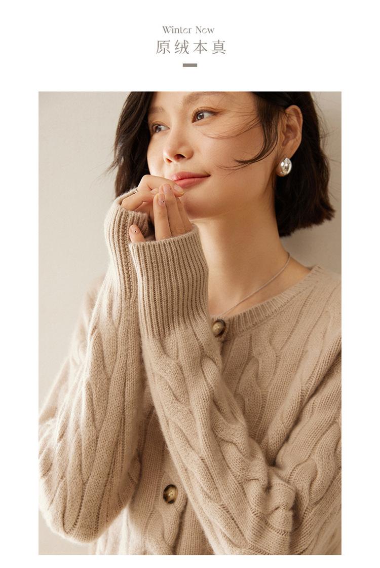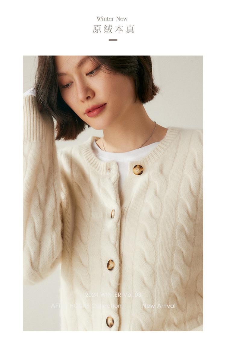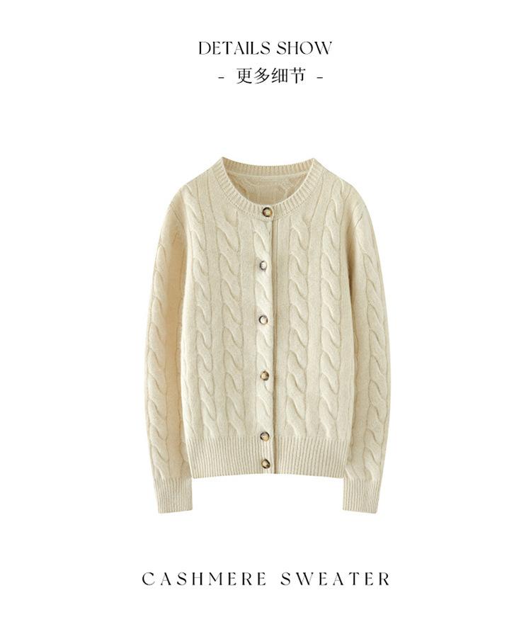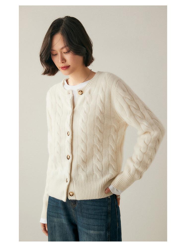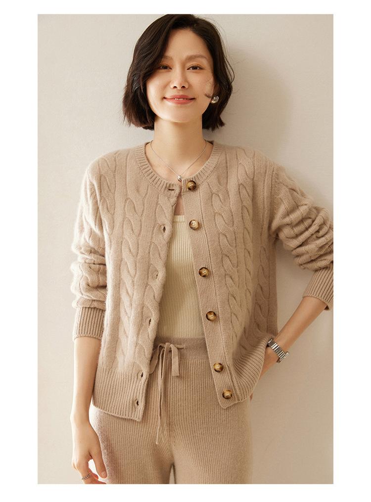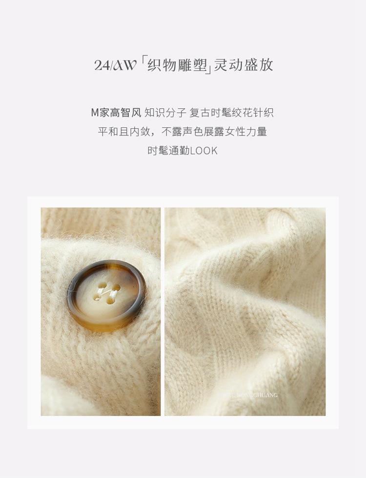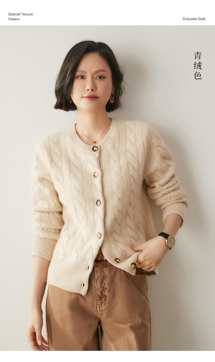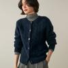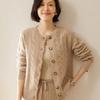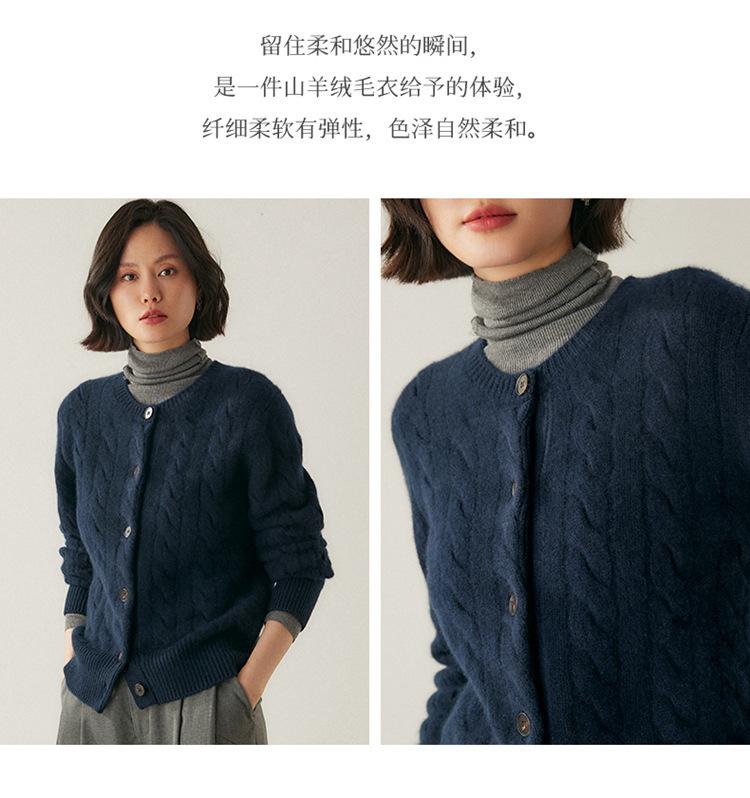 Cárdigan de cachemira de punto informal con giro vintage para otoño e invierno de 2024, abrigo de suéter grueso sencillo de tres hilos para mujer