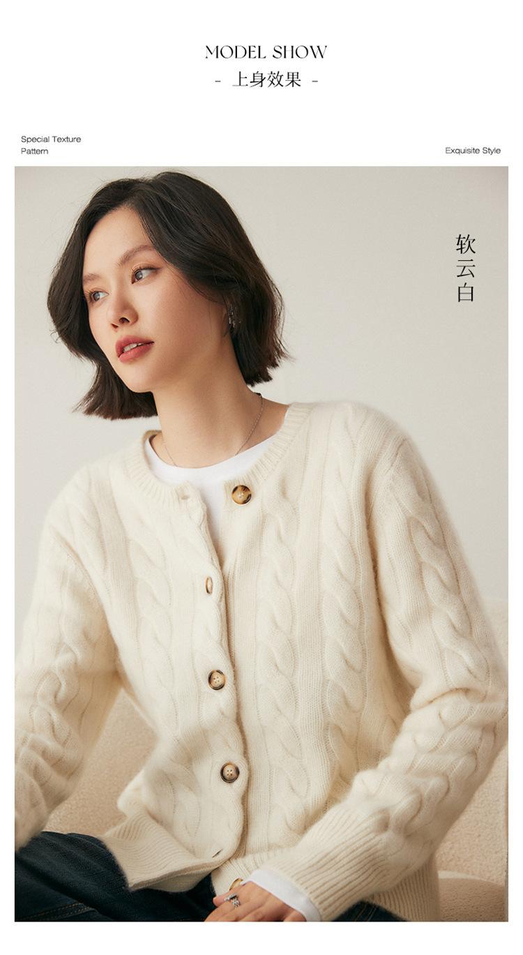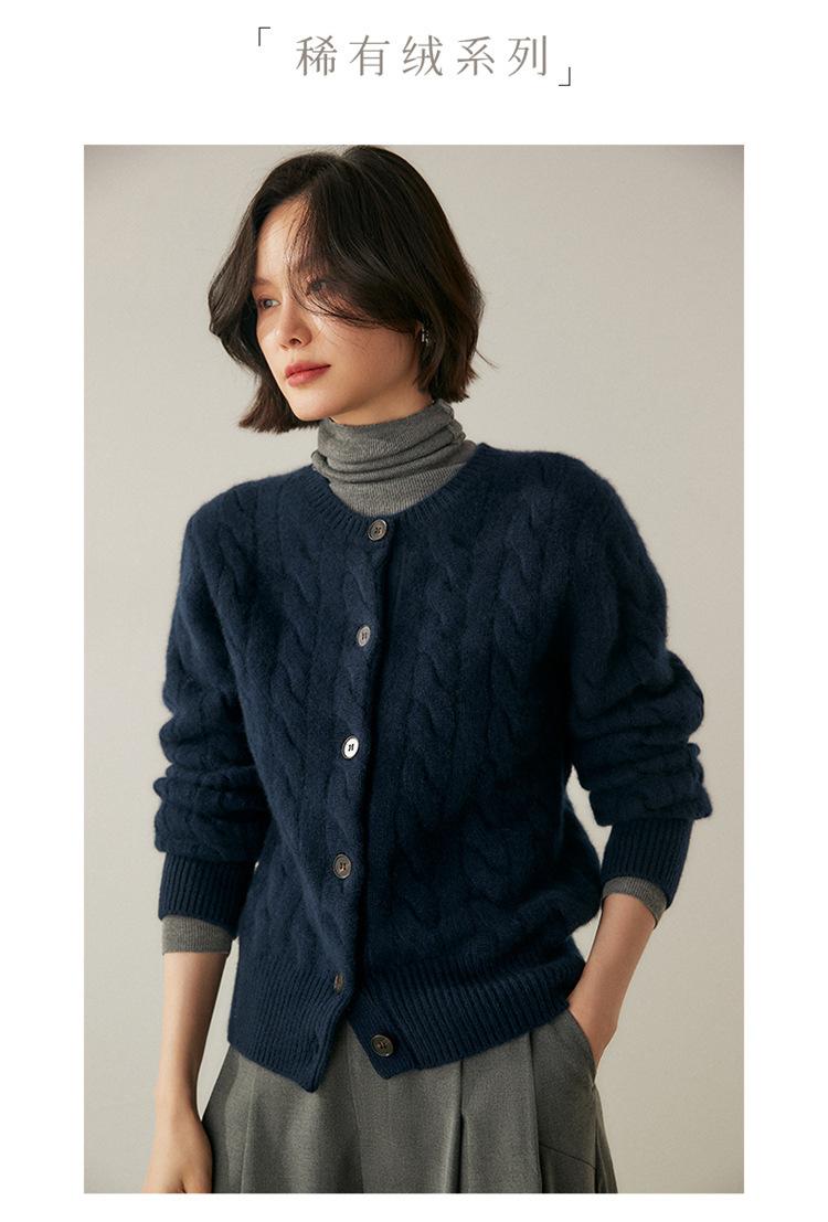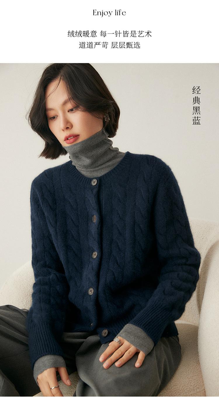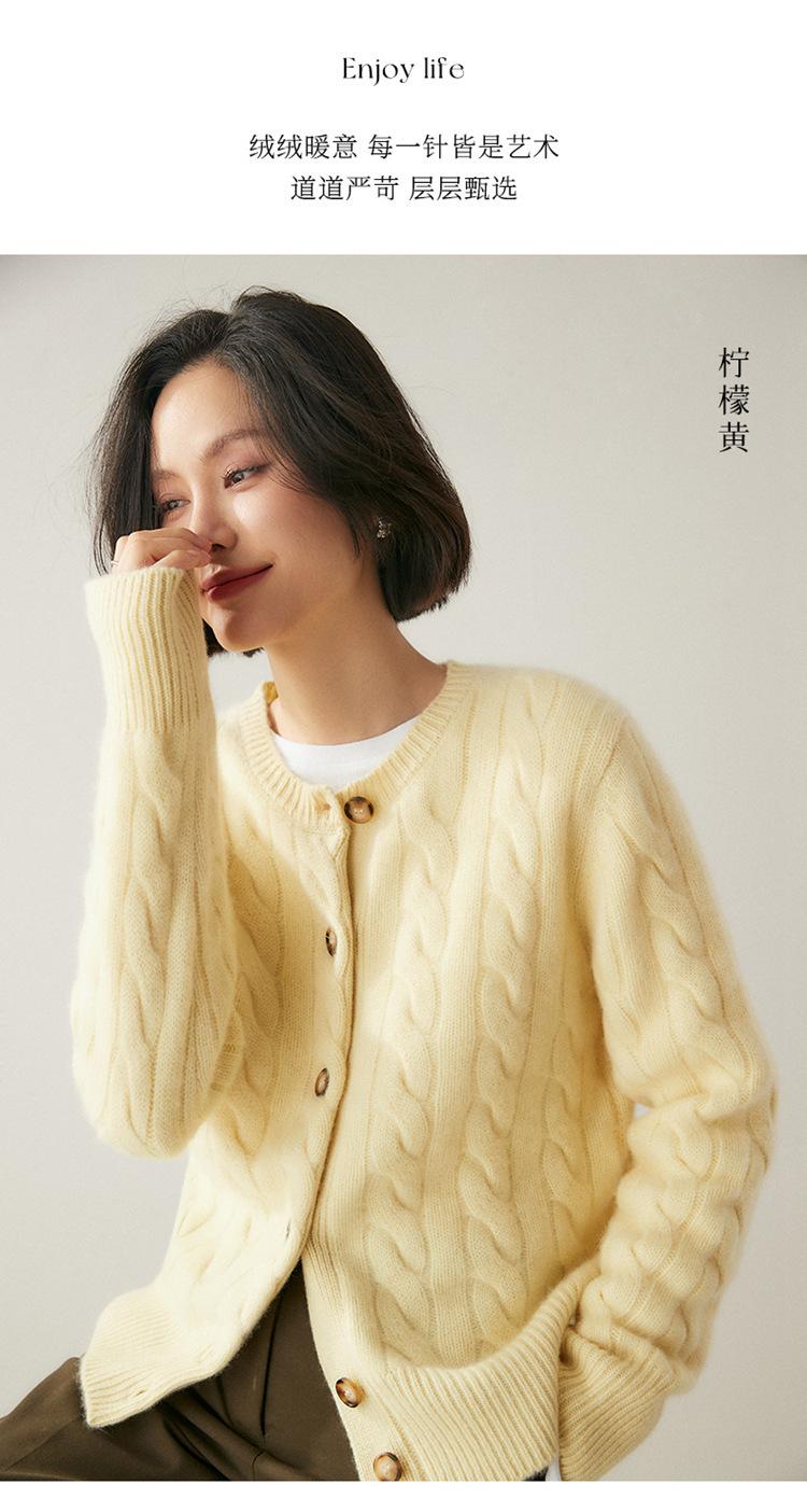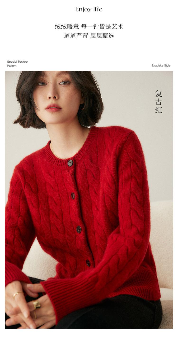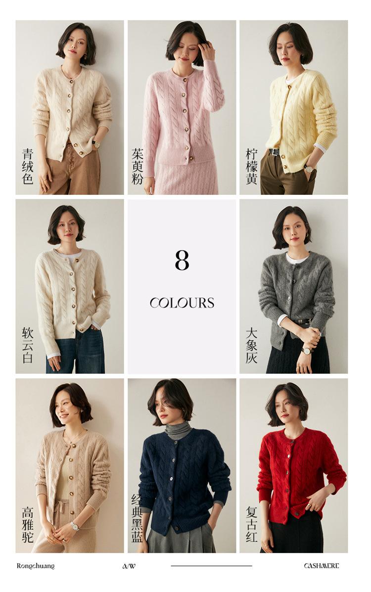 Cárdigan de cachemira de punto informal con giro vintage para otoño e invierno de 2024, abrigo de suéter grueso sencillo de tres hilos para mujer