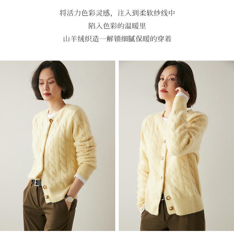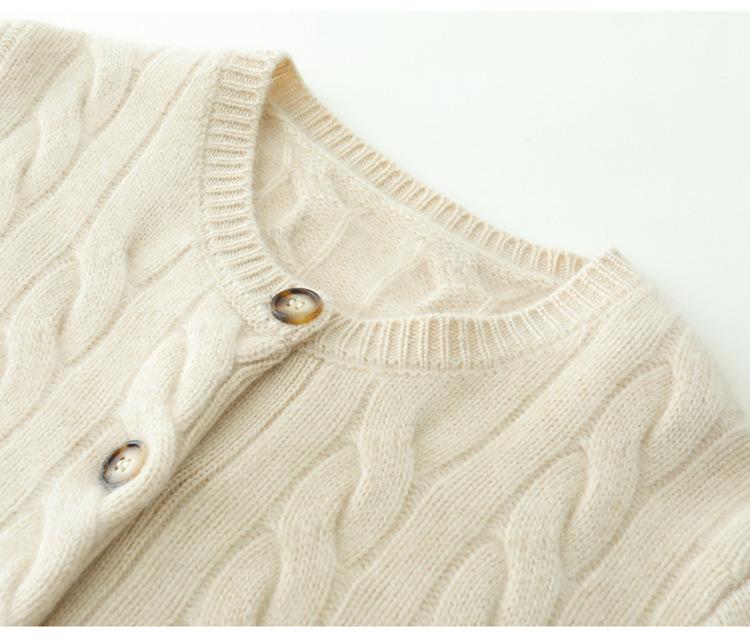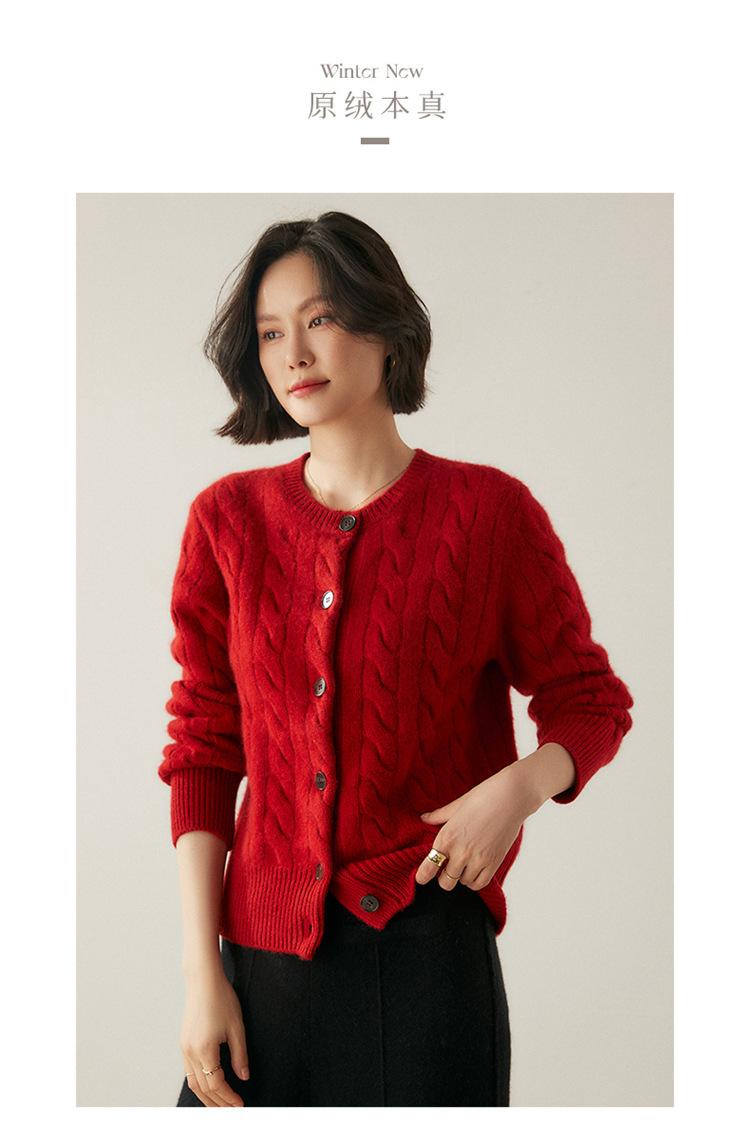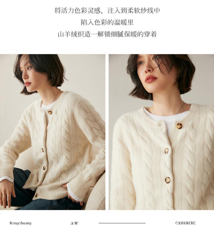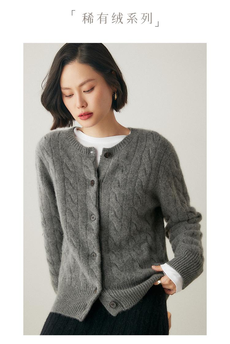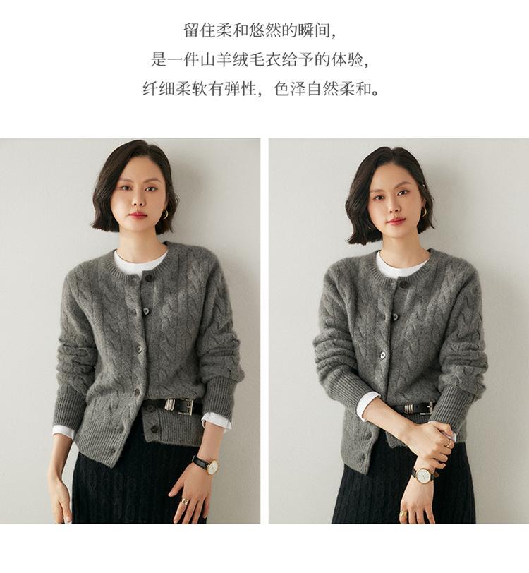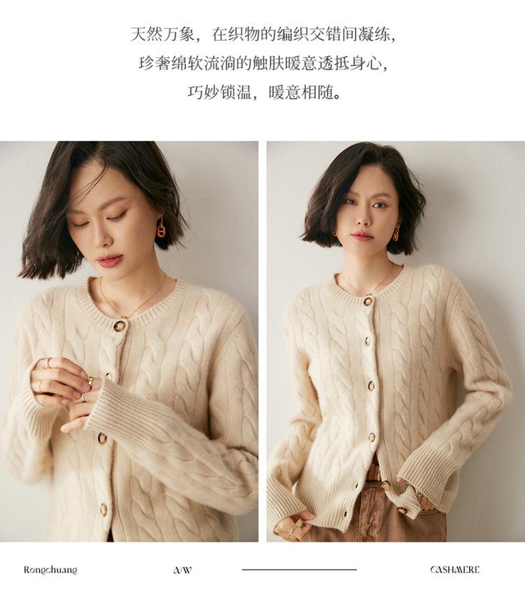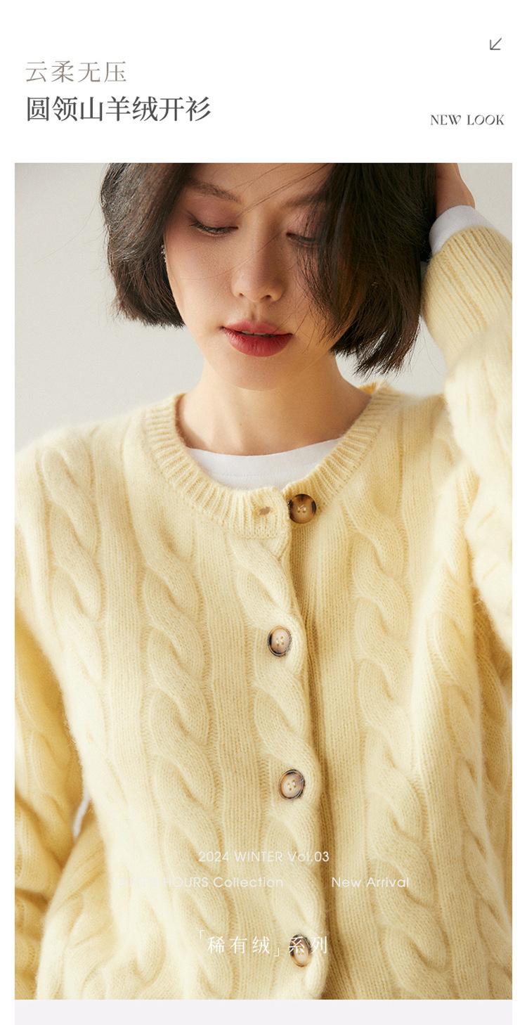 Cárdigan de cachemira de punto informal con giro vintage para otoño e invierno de 2024, abrigo de suéter grueso sencillo de tres hilos para mujer