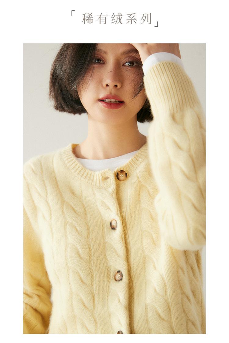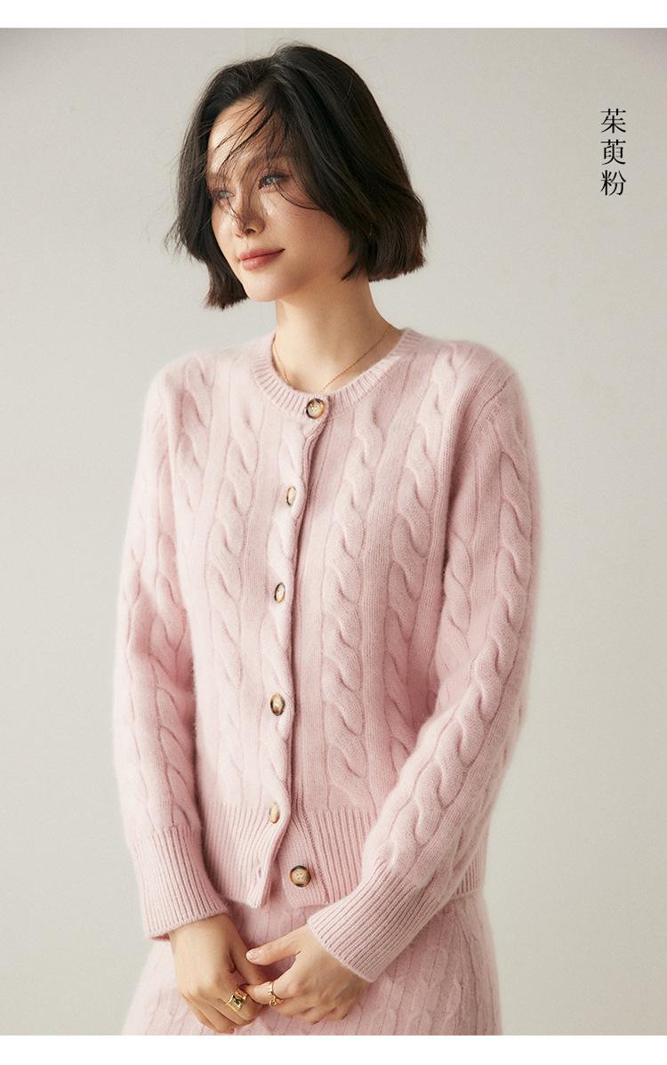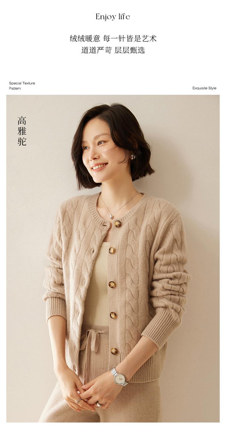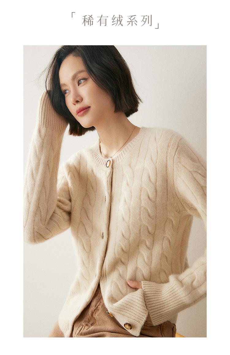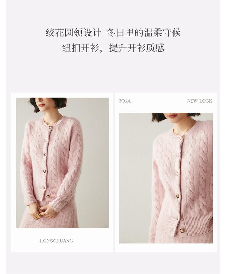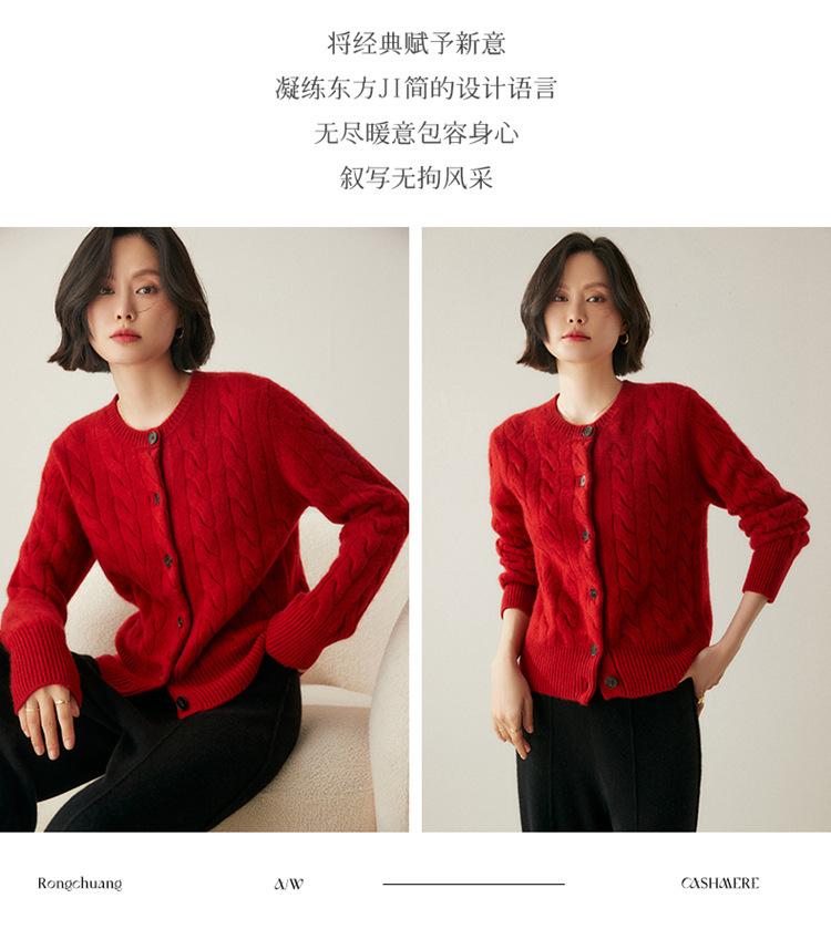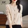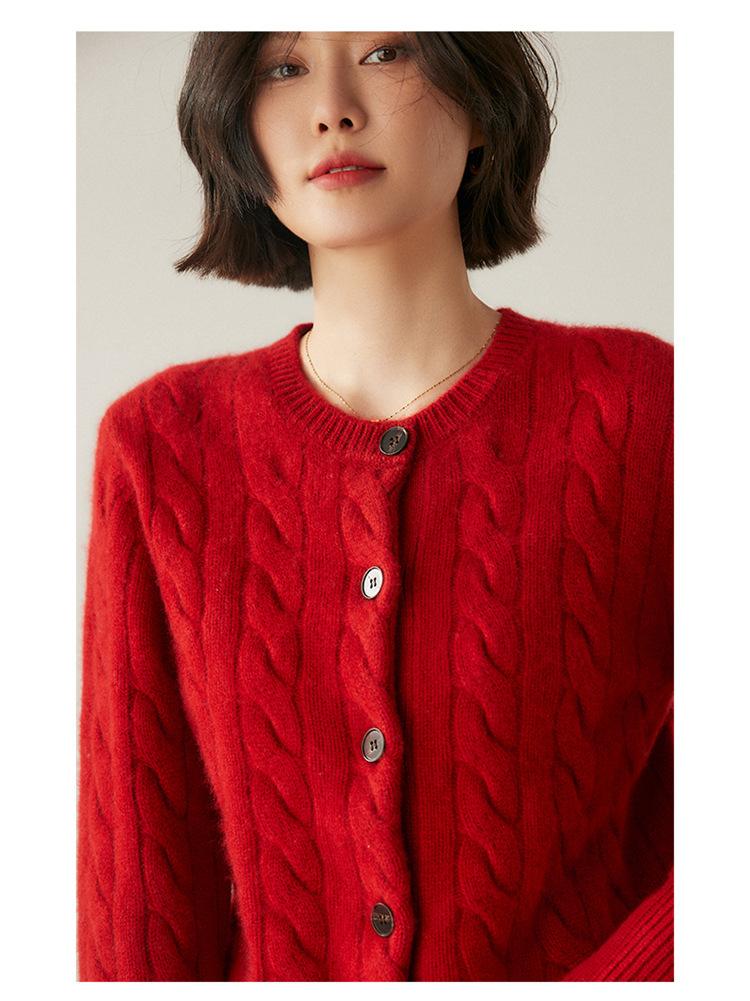Cárdigan de cachemira de punto informal con giro vintage para otoño e invierno de 2024, abrigo de suéter grueso sencillo de tres hilos para mujer