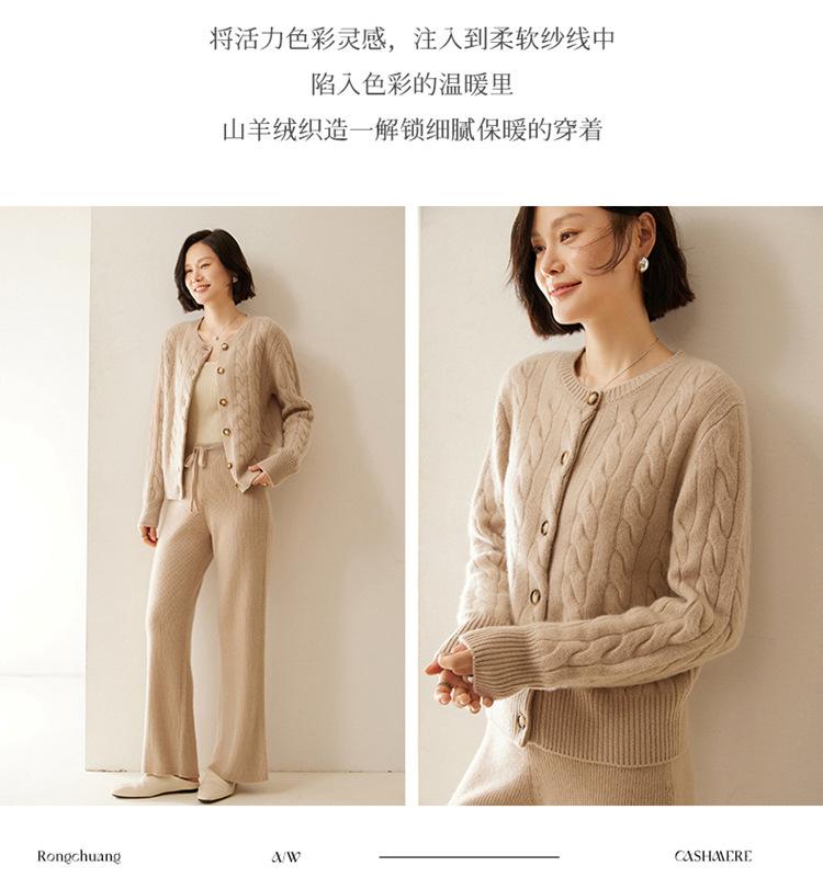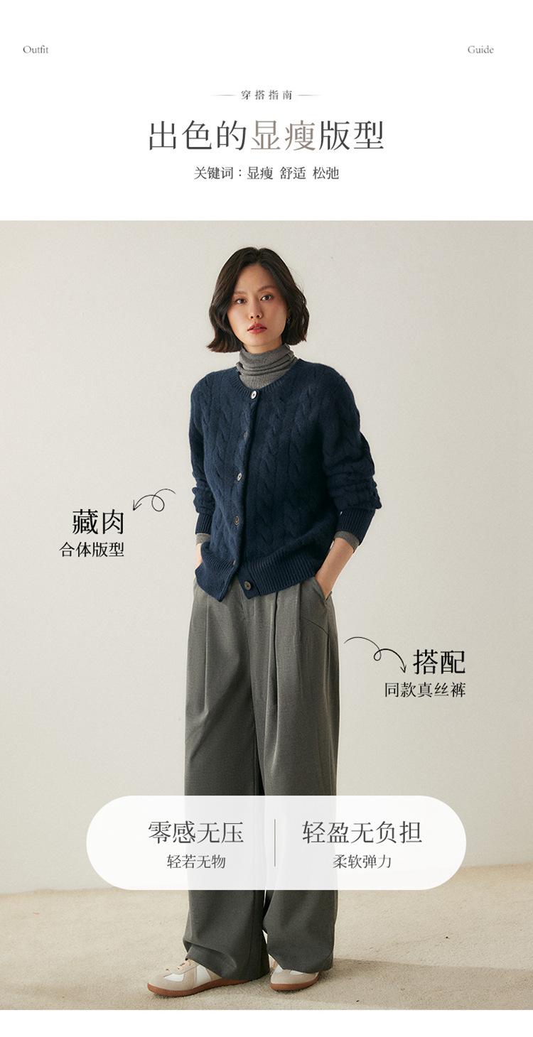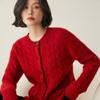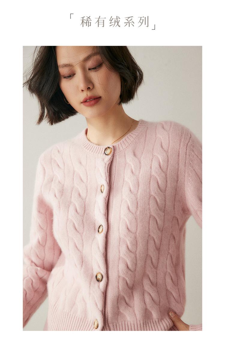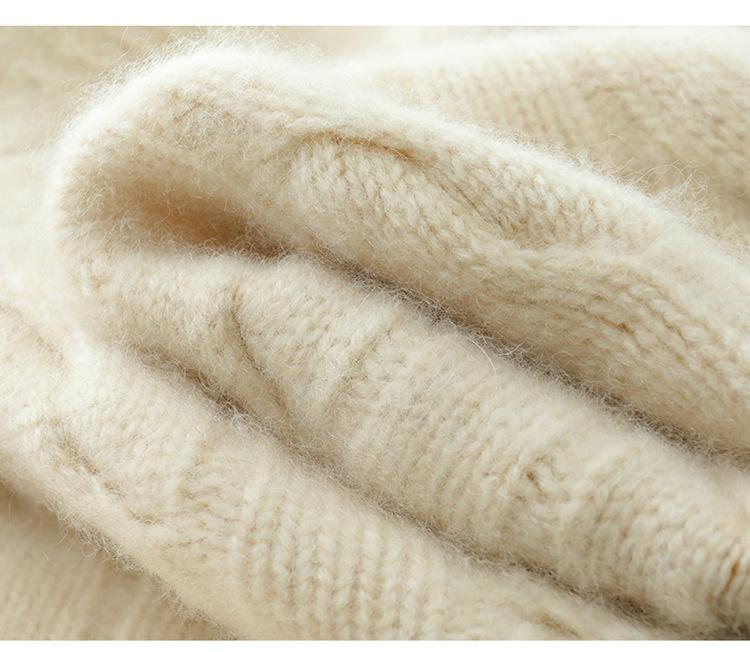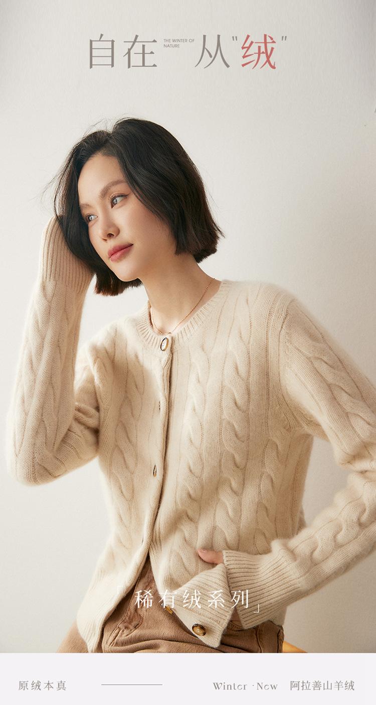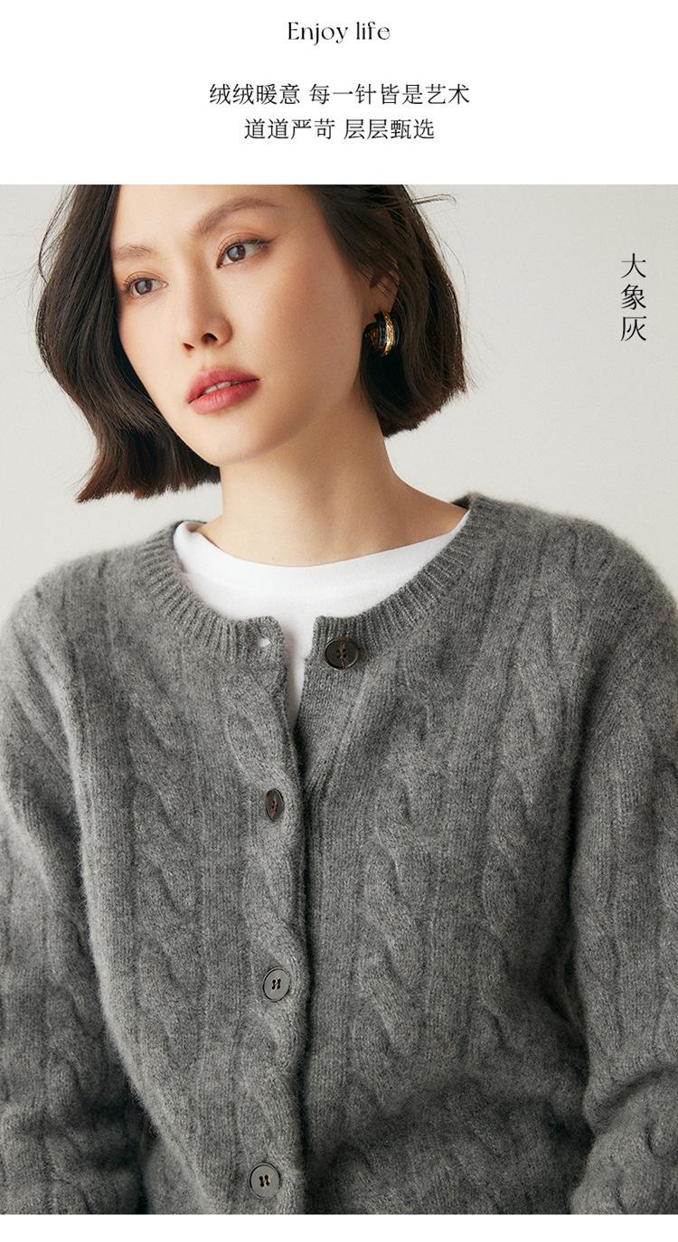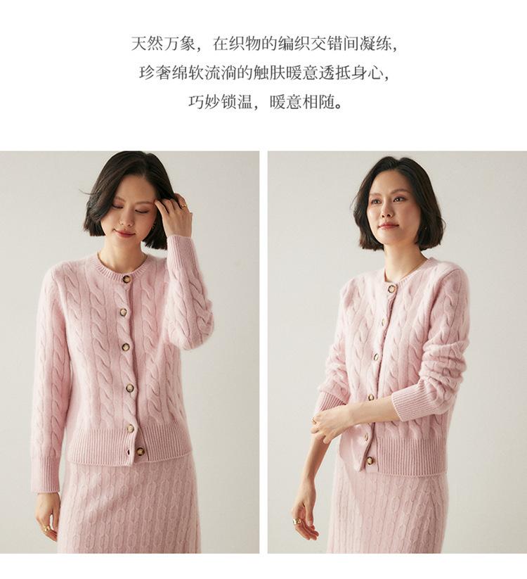 Cárdigan de cachemira de punto informal con giro vintage para otoño e invierno de 2024, abrigo de suéter grueso sencillo de tres hilos para mujer