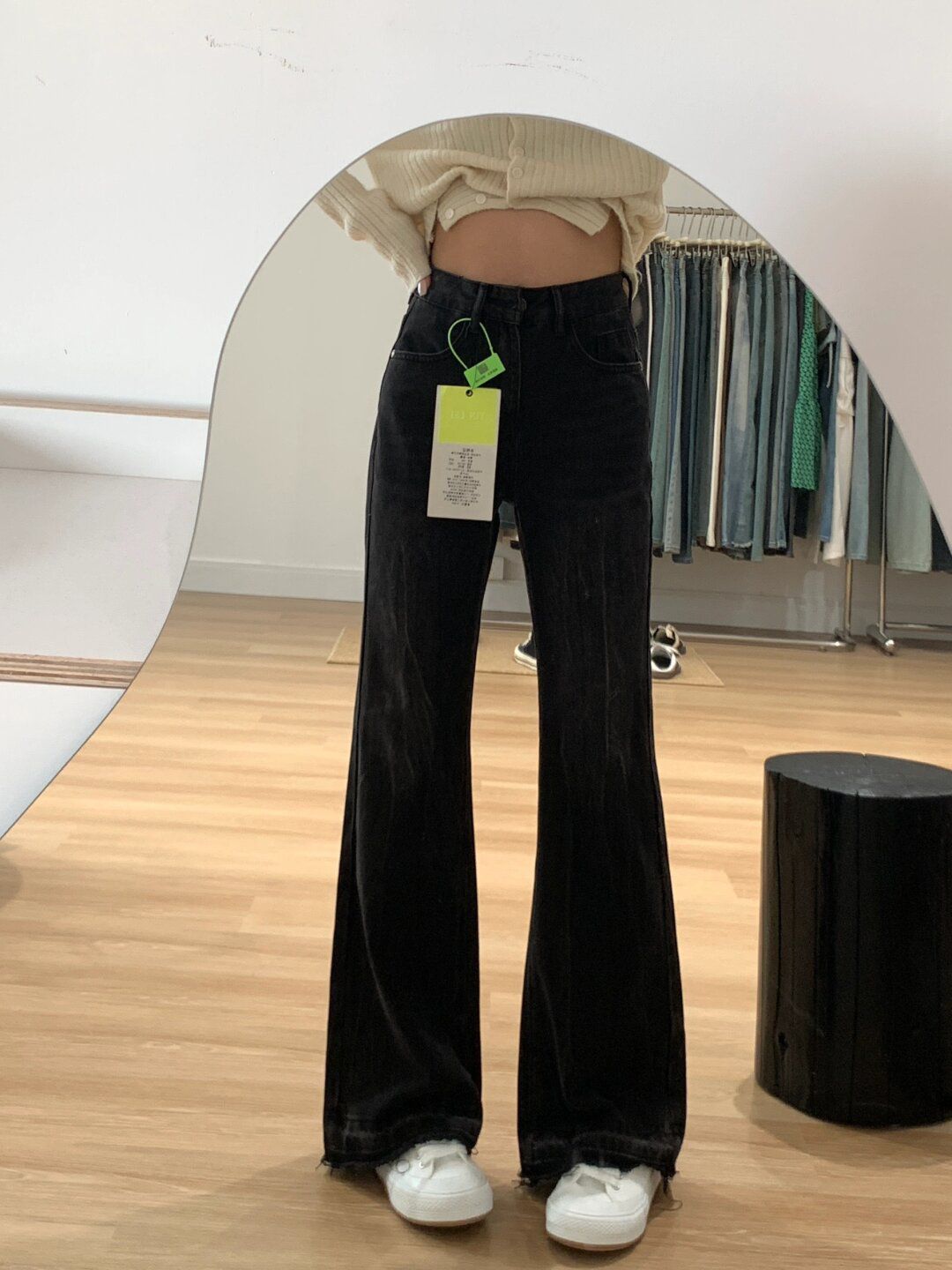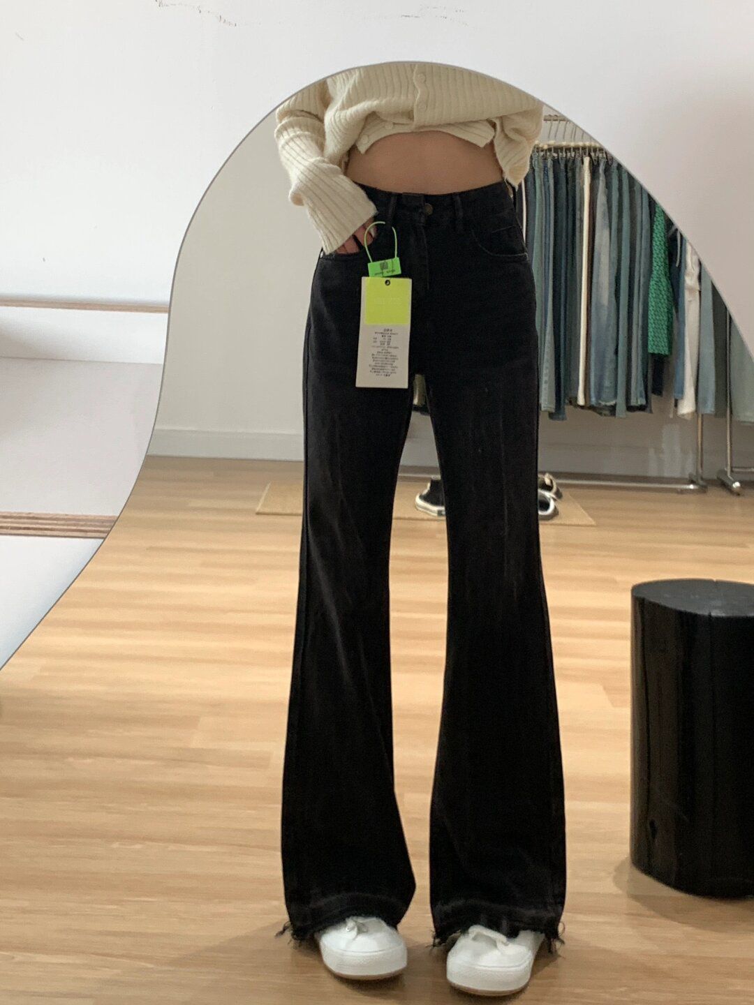 Pantalones vaqueros Micro-La negros y grises para mujer, otoño e invierno, tallas grandes, para chica gordita, cintura alta, adelgazantes, con forma de herradura y sin piernas.