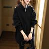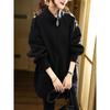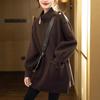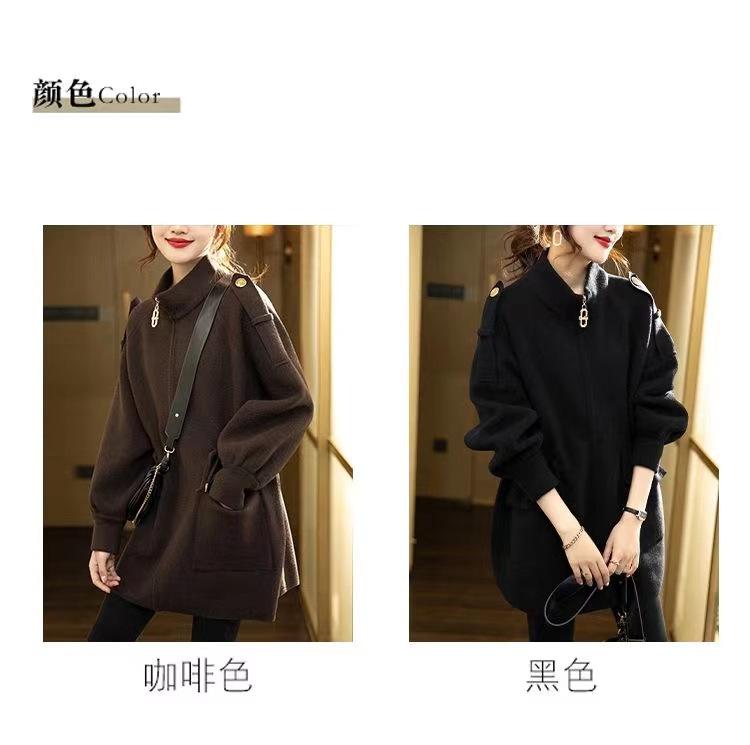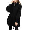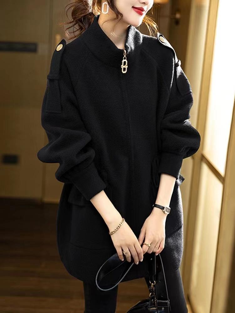 2025 Nuevo Abrigo de Lana de Invierno para Mujer Moda Femenina Color Puro Talla Grande Holgado con Cordón Cuello Alto Negro Abrigo para Mujer Otoño e Invierno