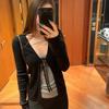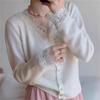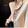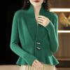 Cárdigan de punto rojo con cuello en V y volantes franceses para mujer, otoño e invierno, Pure Desire, elegante, ajustado, de manga larga, con costuras