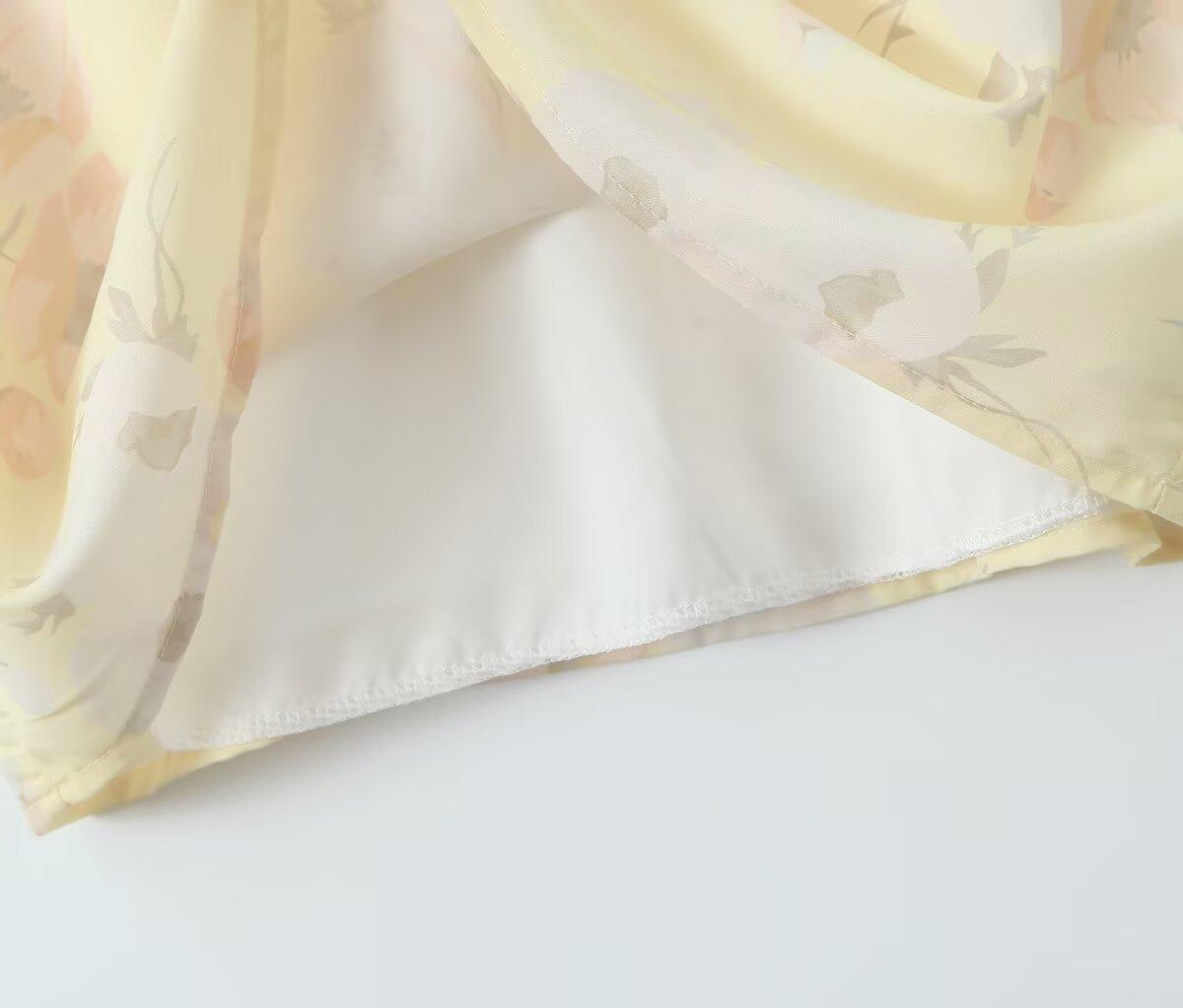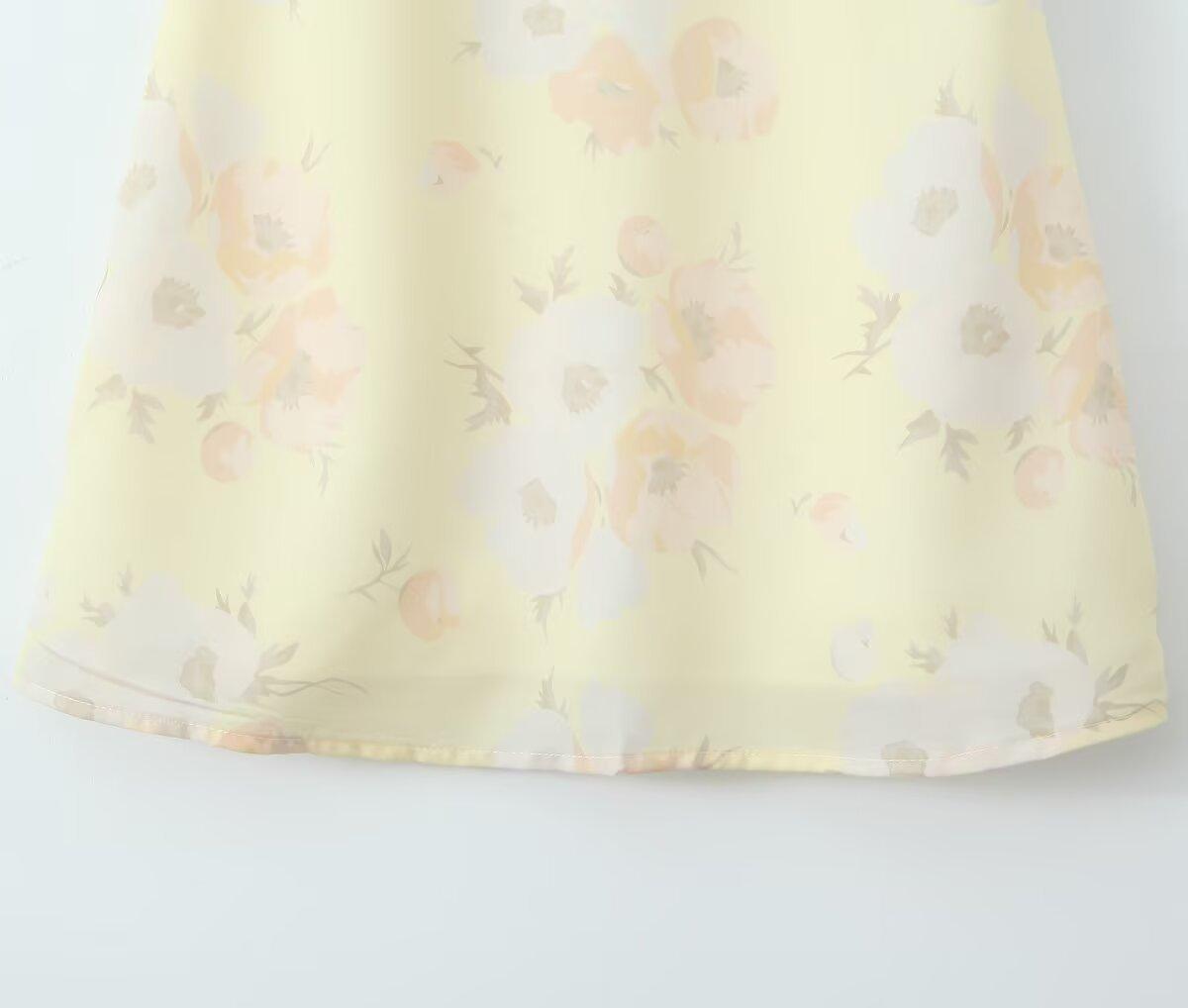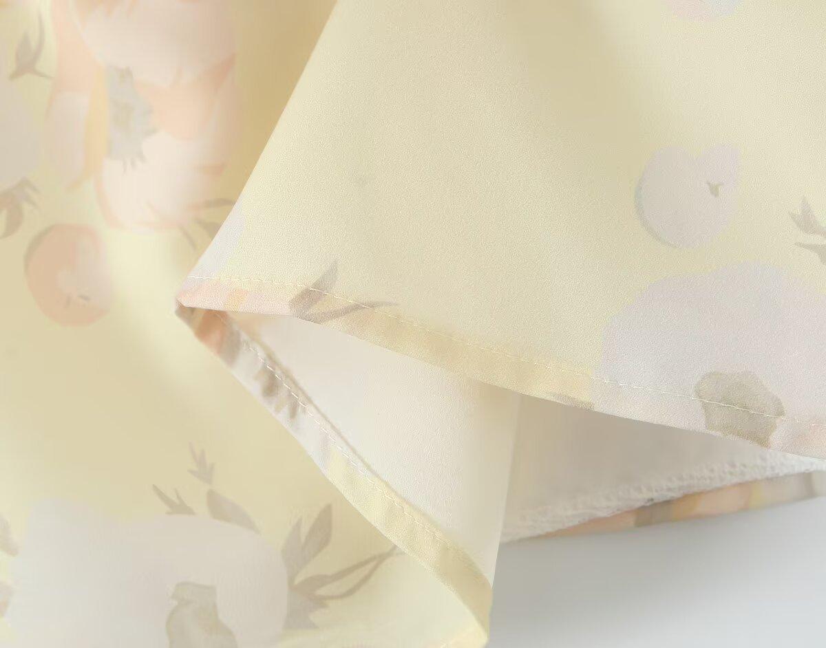 1322-24 Vestido de invierno nuevo francés para niña, dulce, informal, amarillo, fresco, para vacaciones, estampado de flores