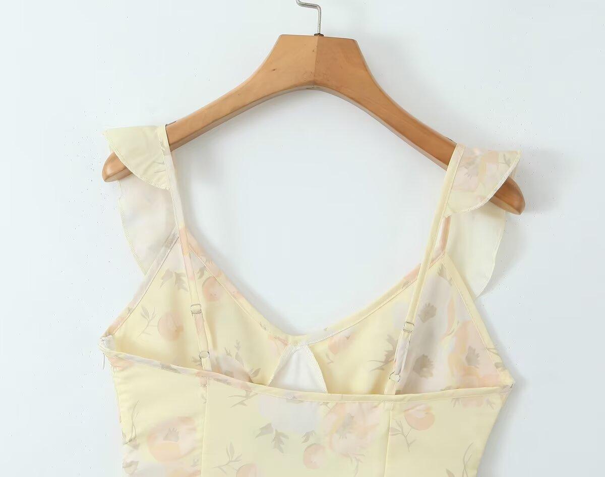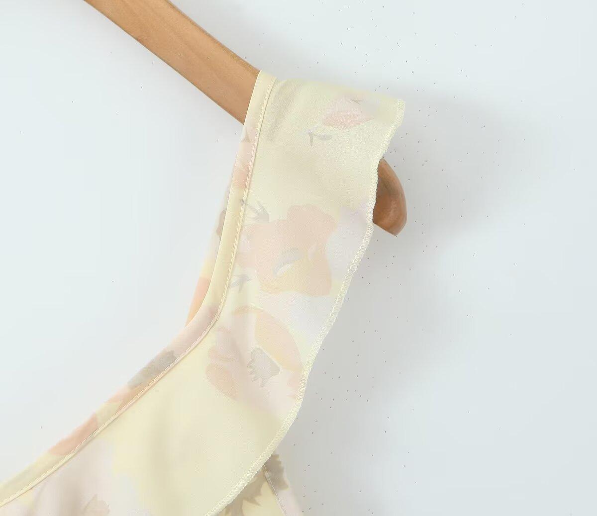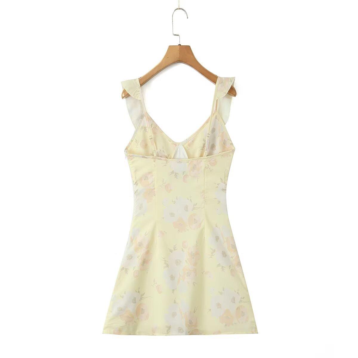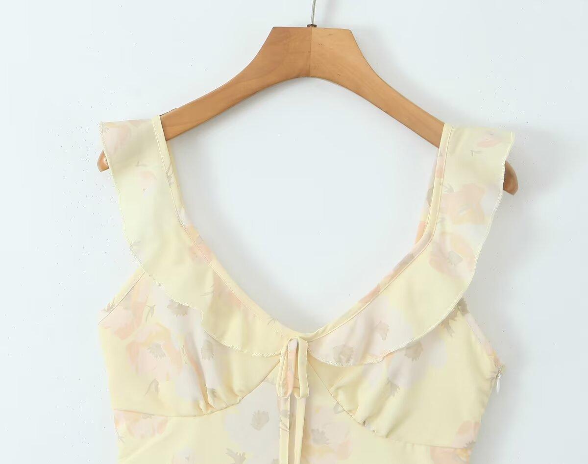 1322-24 Vestido de invierno nuevo francés para niña, dulce, informal, amarillo, fresco, para vacaciones, estampado de flores