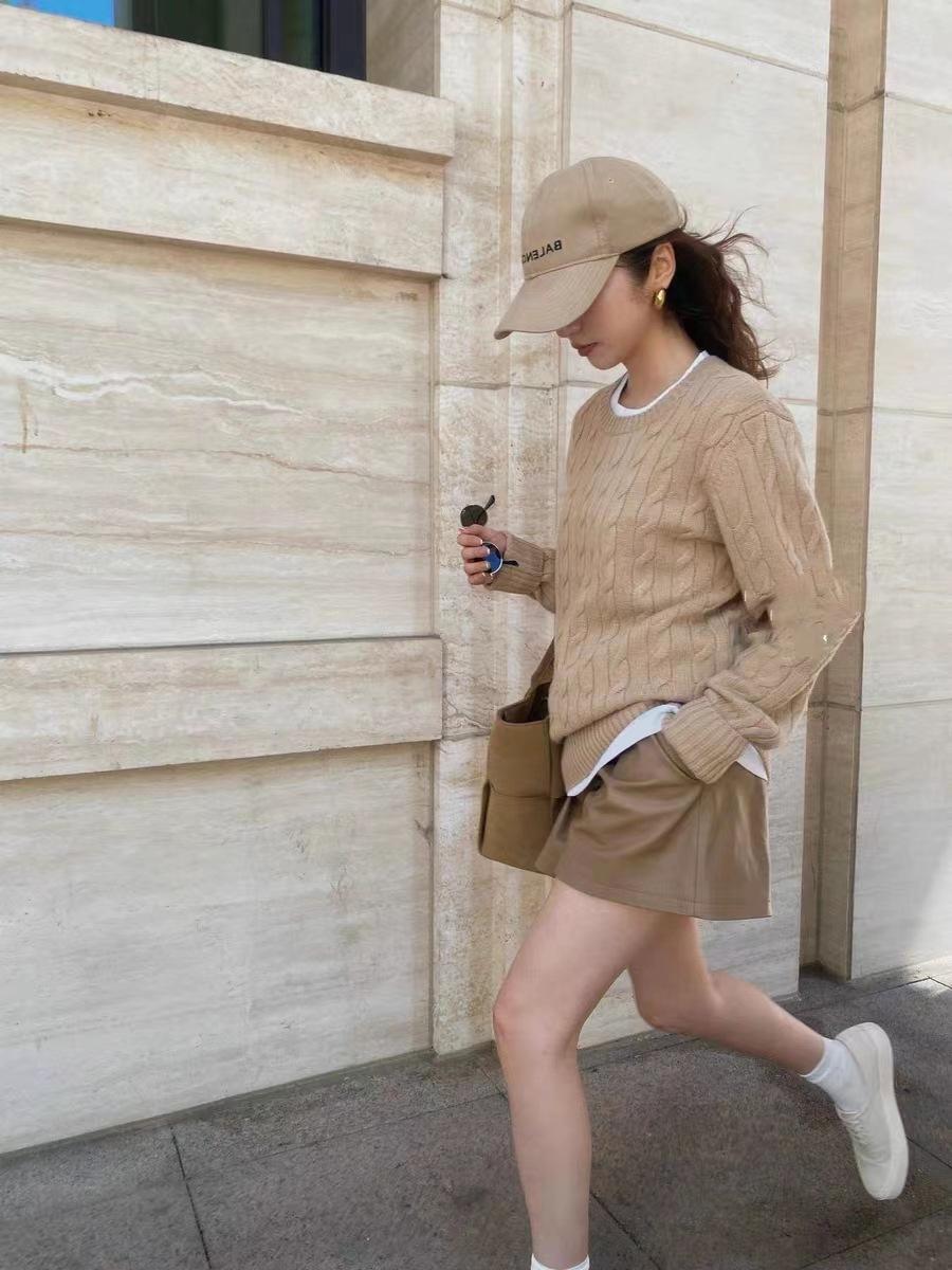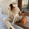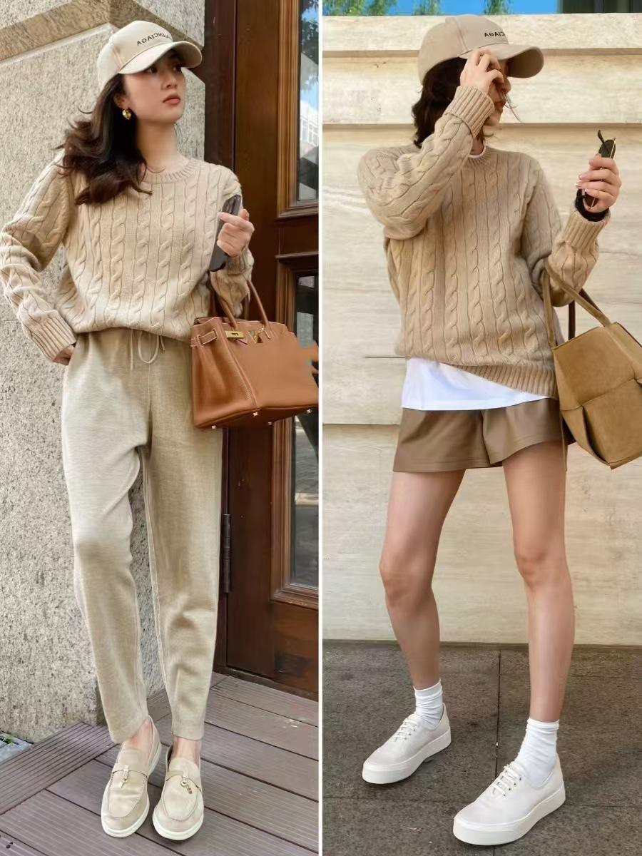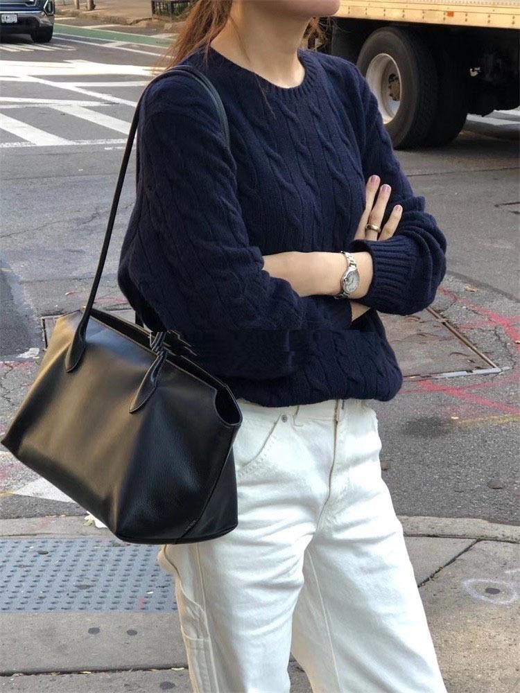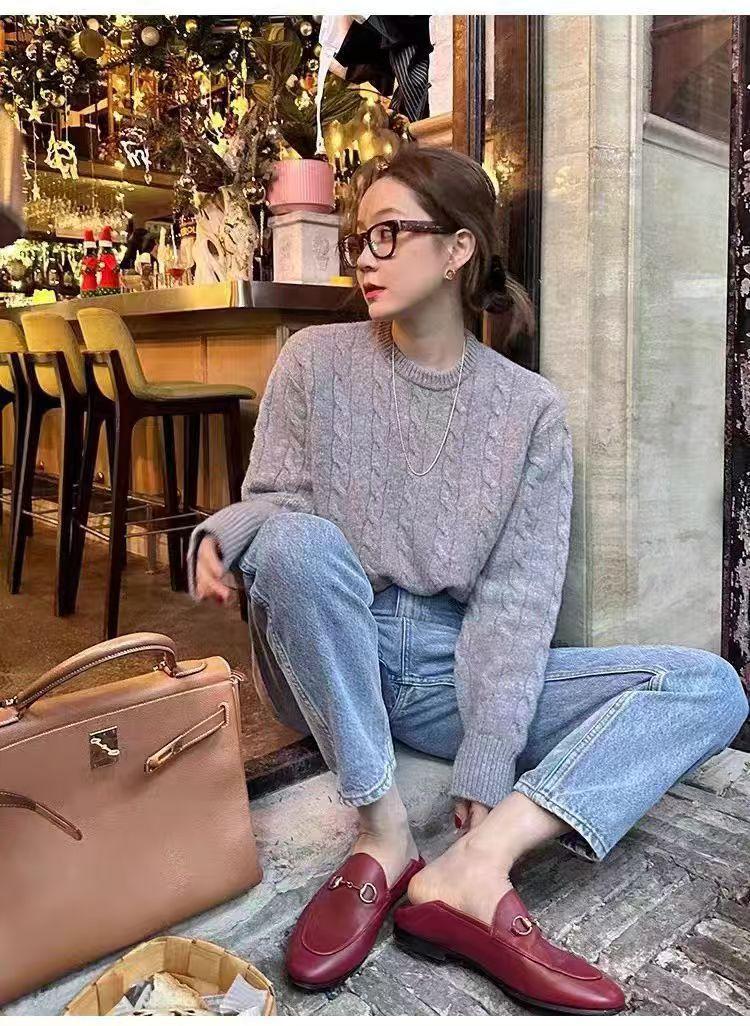 Suéter de punto de lana pura gruesa con cuello redondo y color sólido para mujer, camisa adelgazante holgada, otoño e invierno, nuevo