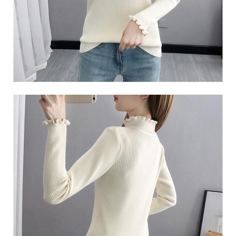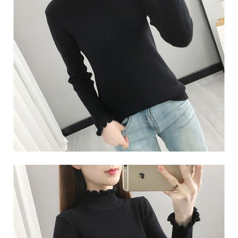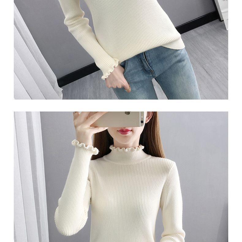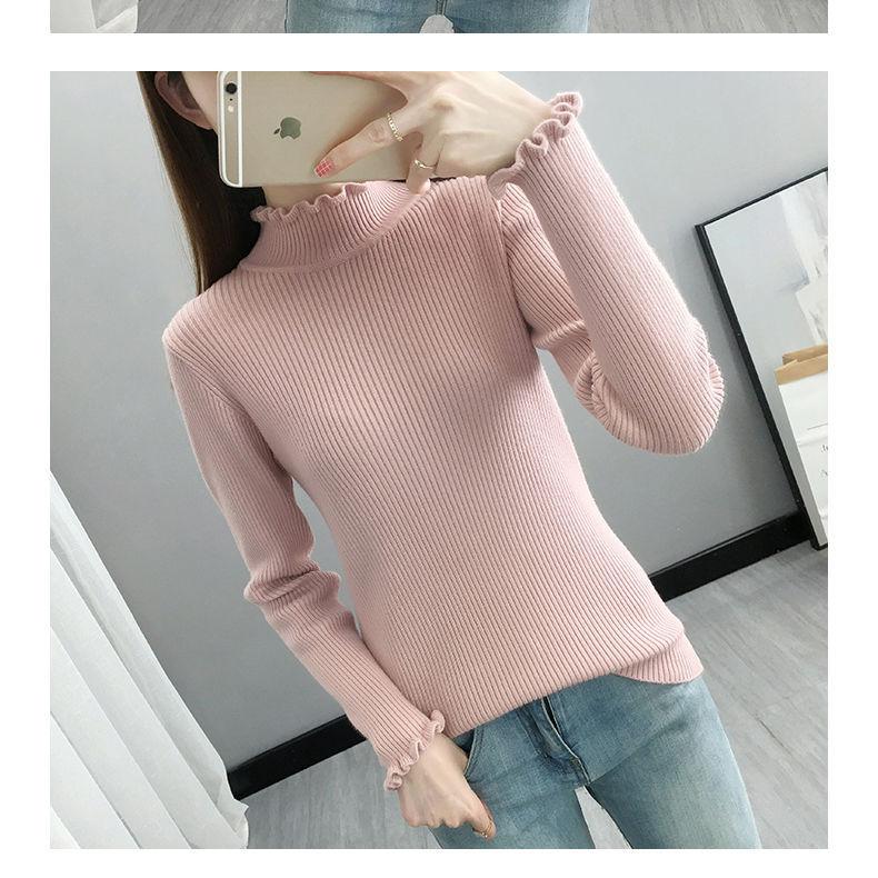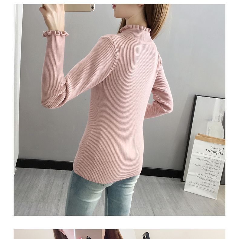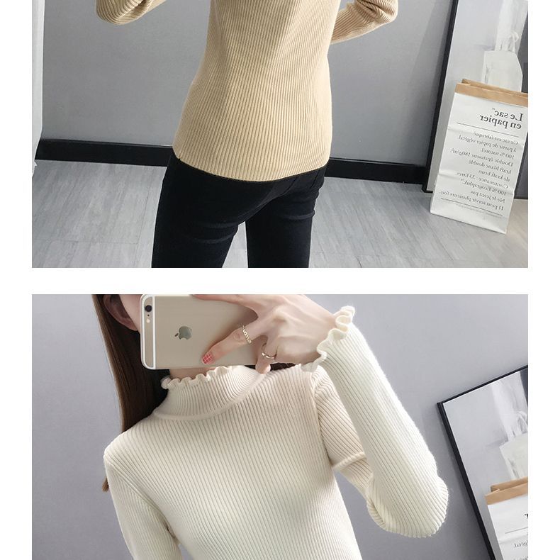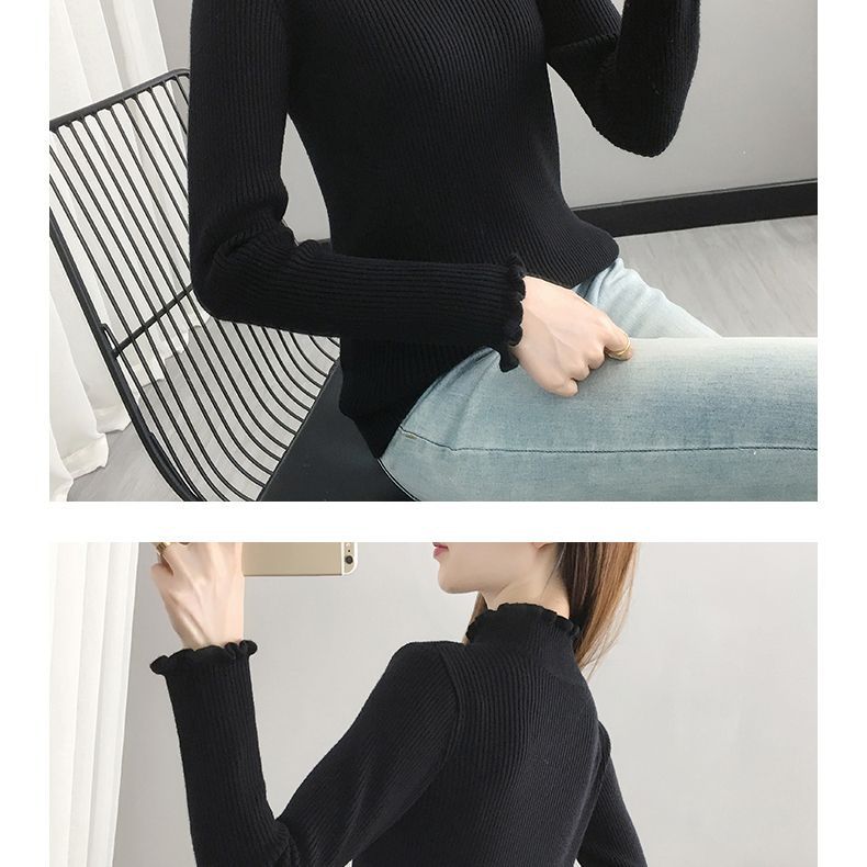 Suéter de cuello alto medio para mujer, camisa base de punto estilo occidental, informal, ajustado, de manga larga, para otoño e invierno