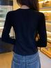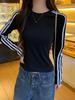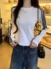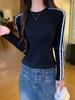 Camiseta de manga larga de algodón puro a rayas blancas, elegante y fresca, para mujer, de primavera y otoño, ajustada, con base interior raglán.