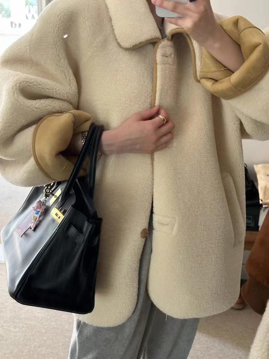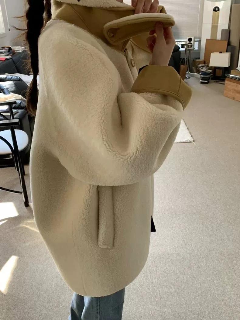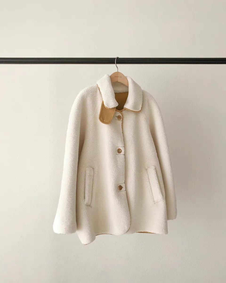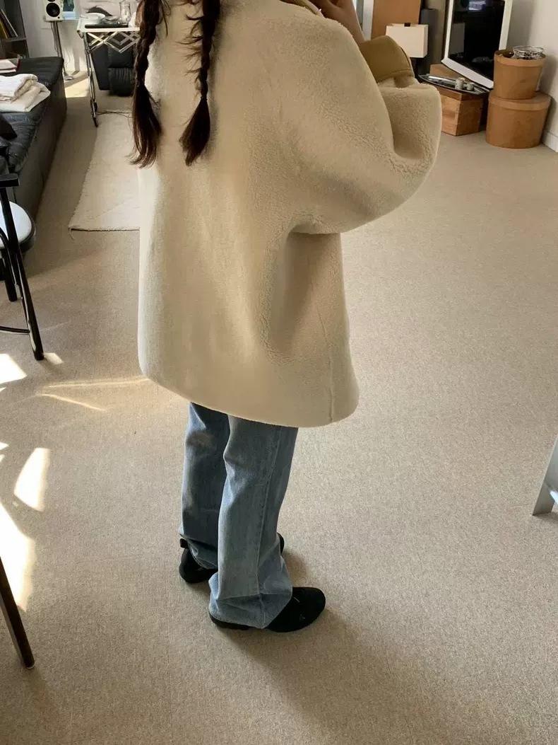 En Stock Invierno 2024 Nuevo Coreano Dongdaemun Ou*Ce Abrigo Elegante de Solapa Reversible Integrado de Piel