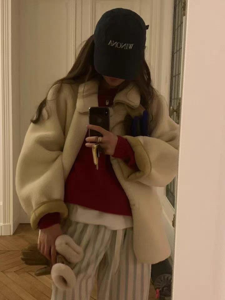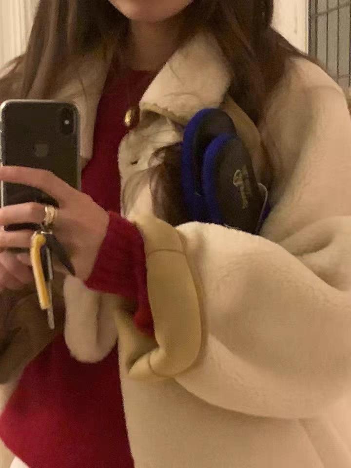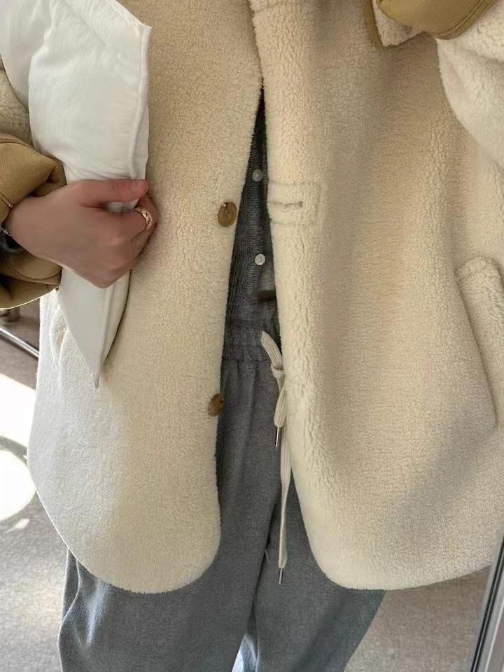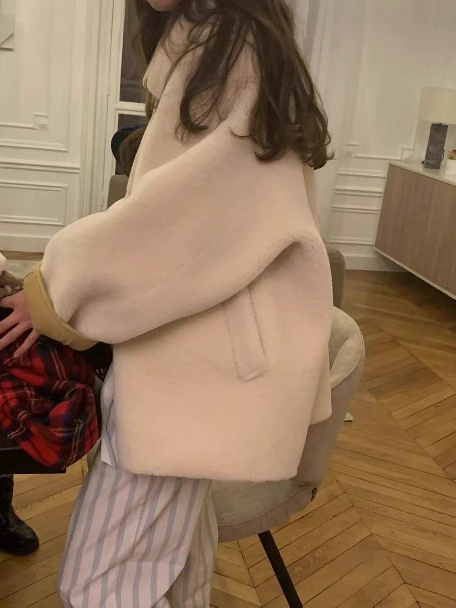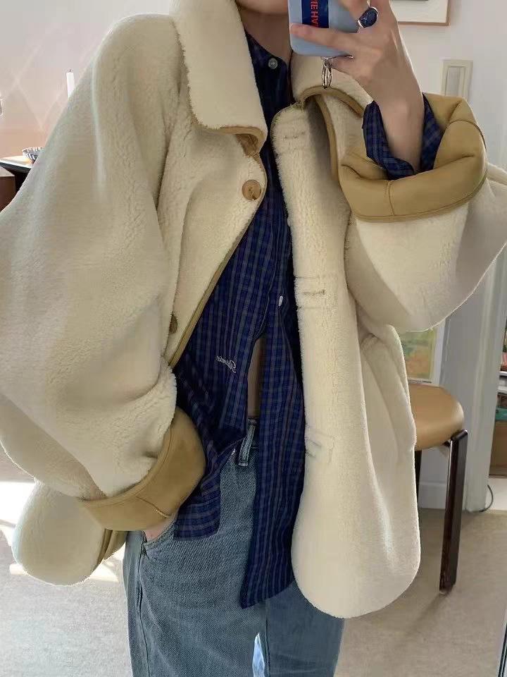 En Stock Invierno 2024 Nuevo Coreano Dongdaemun Ou*Ce Abrigo Elegante de Solapa Reversible Integrado de Piel