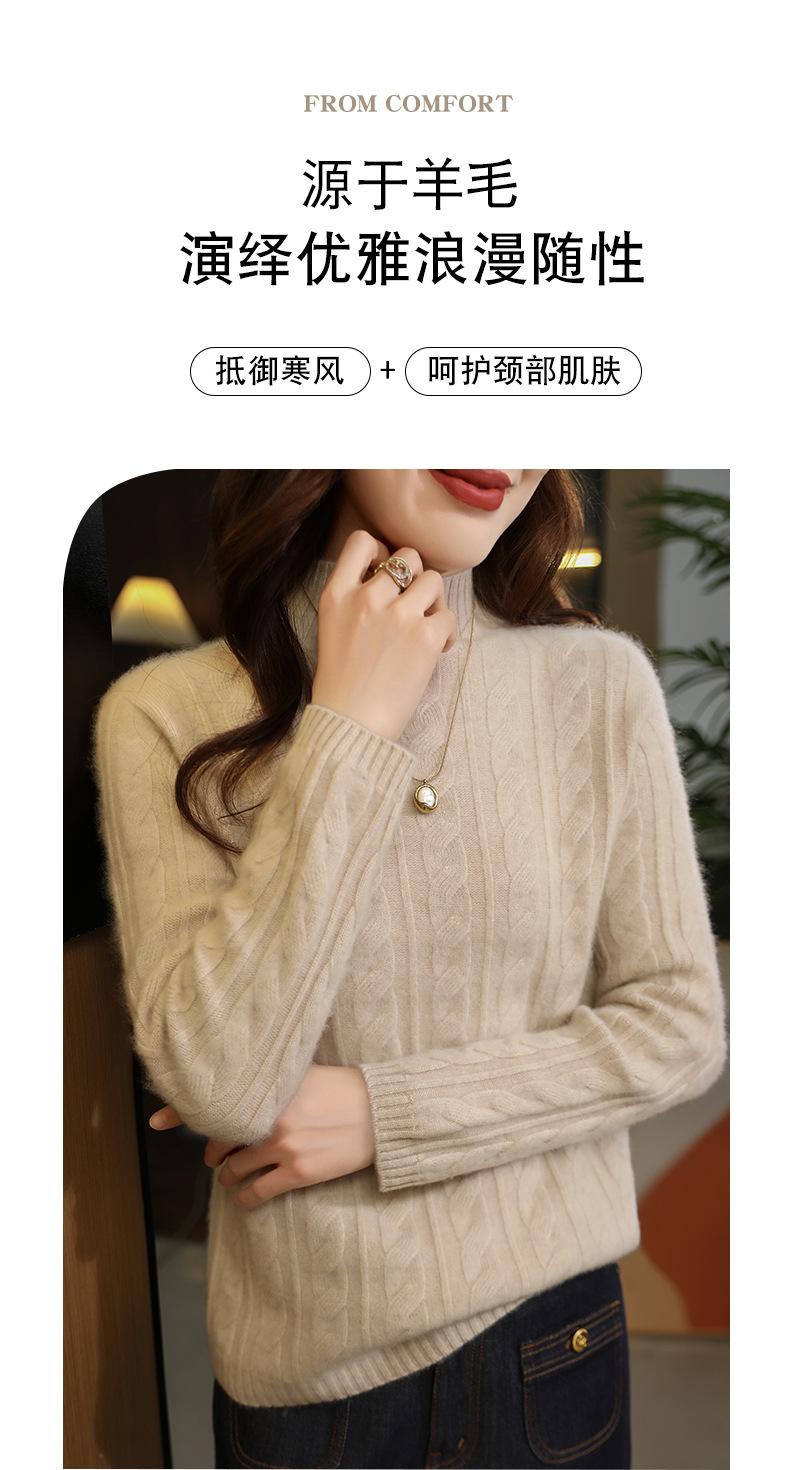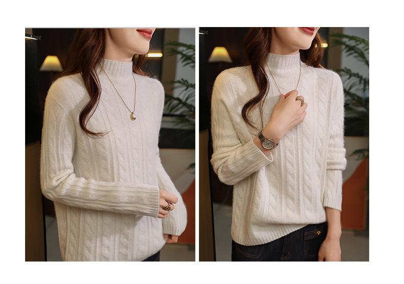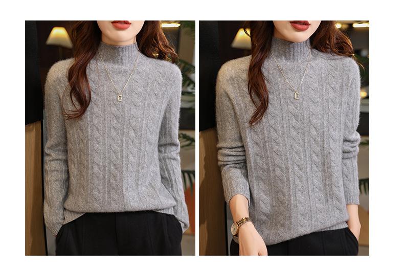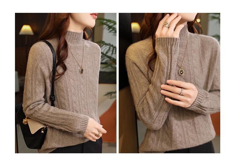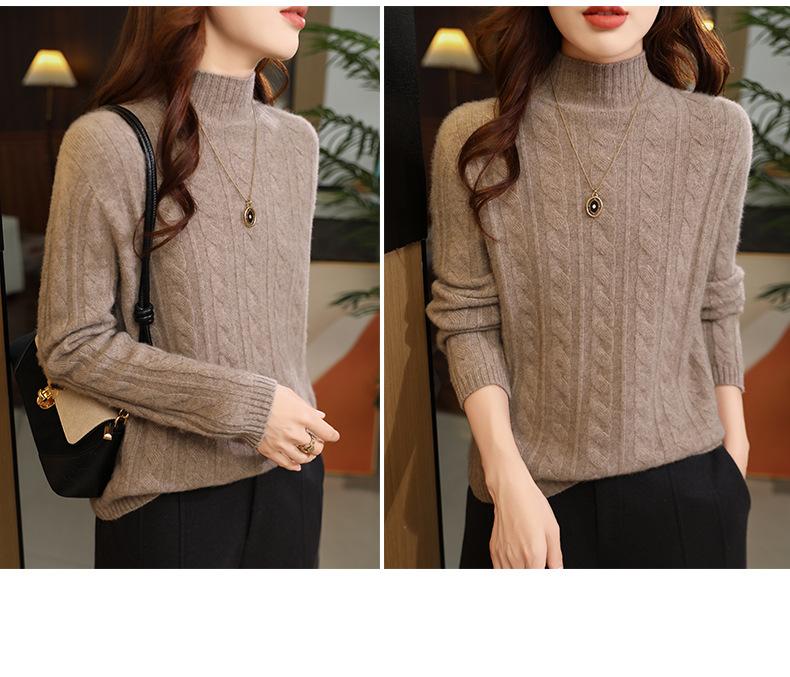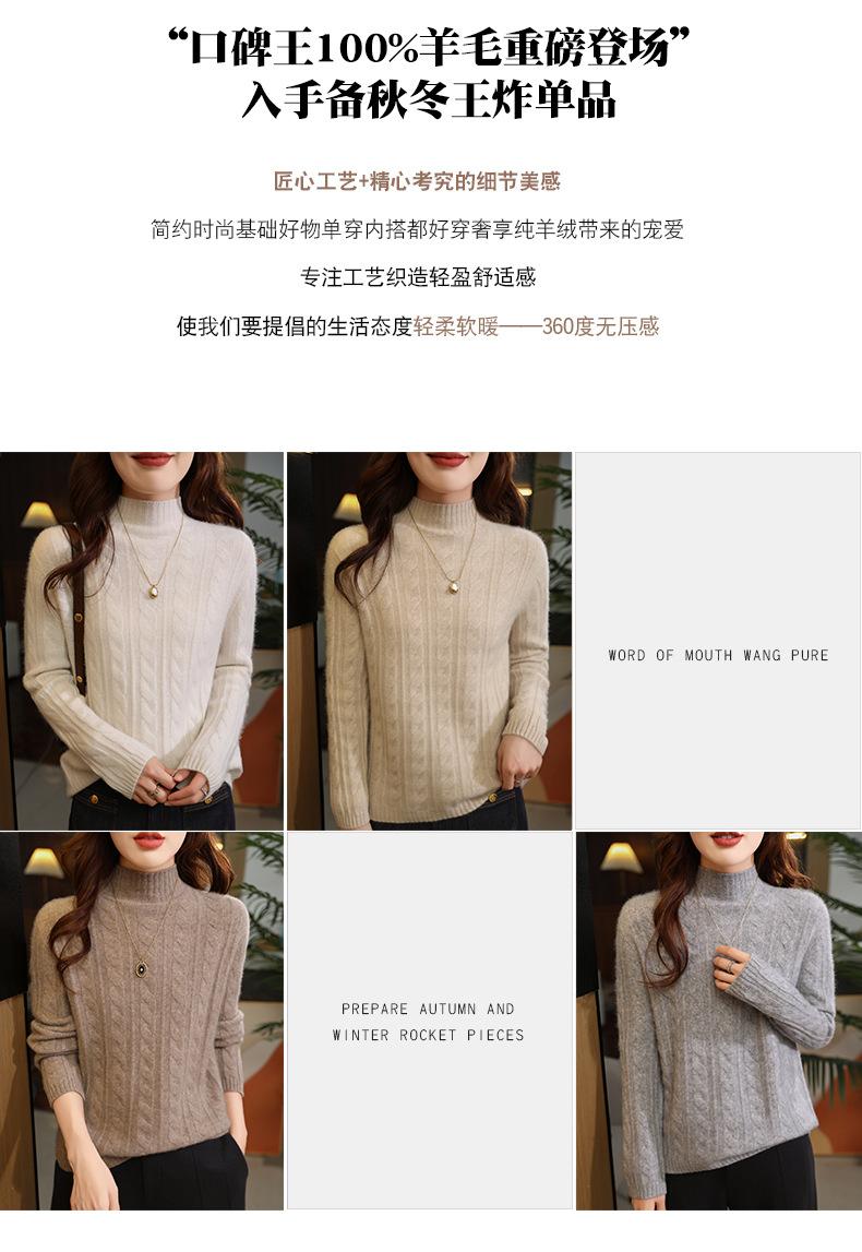 Suéter de Punto Versátil Otoño e Invierno Nuevo Urbano 100% Lana Suéter Grueso para Mujer Ajustado Básico Cuello Alto